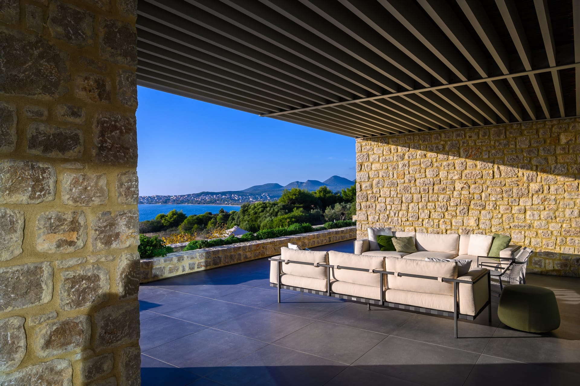 Villa Brucite is a stunning property located in the region of Methoni in the Peloponnese area. Its privileged location offers panoramic views of the Messenian Gulf and the mountainous Peloponnesian landscape.