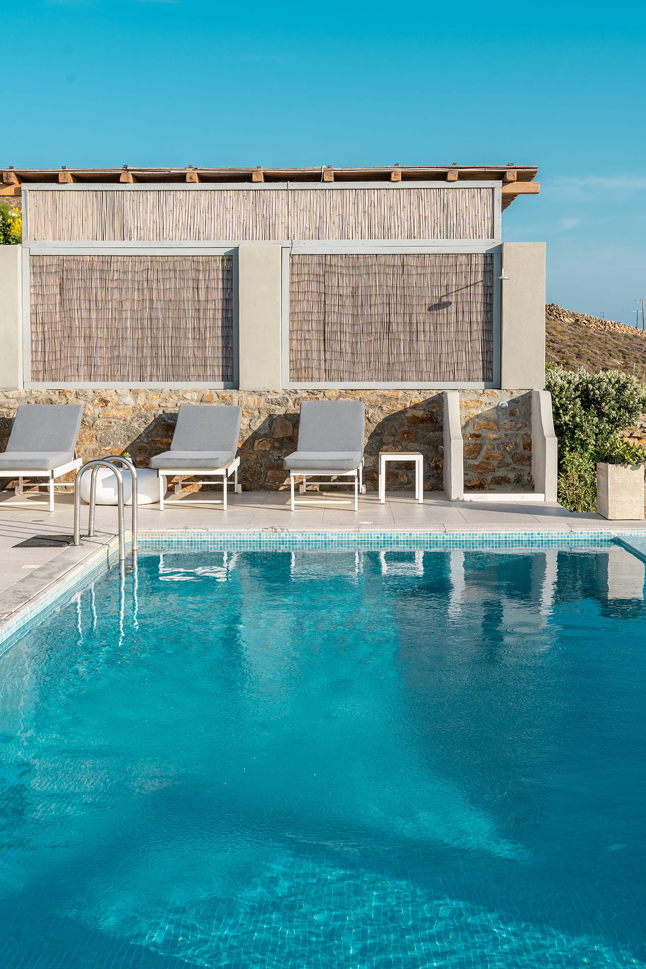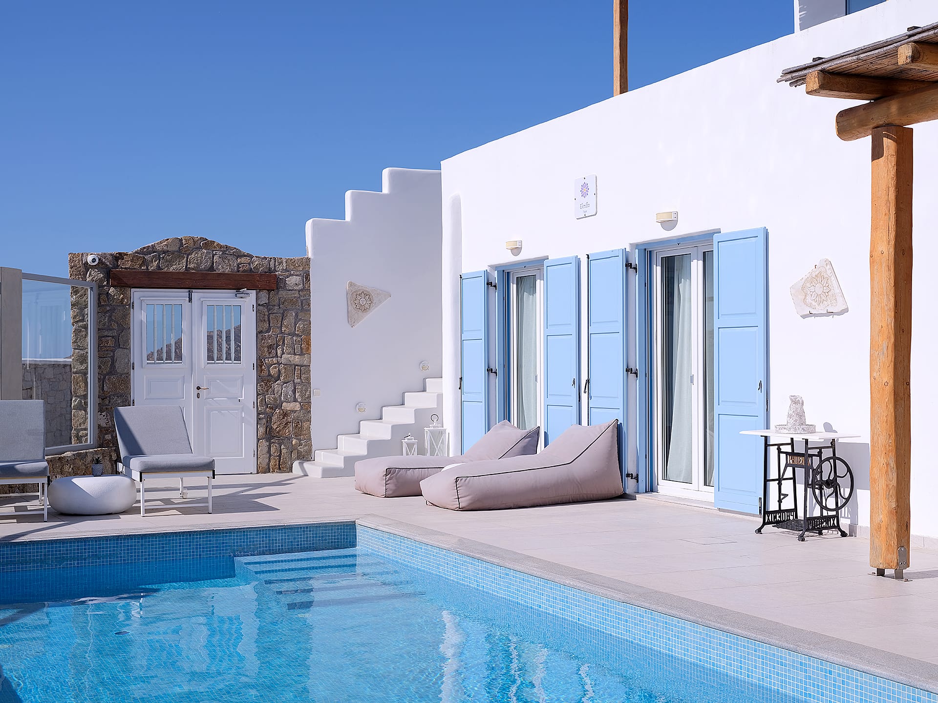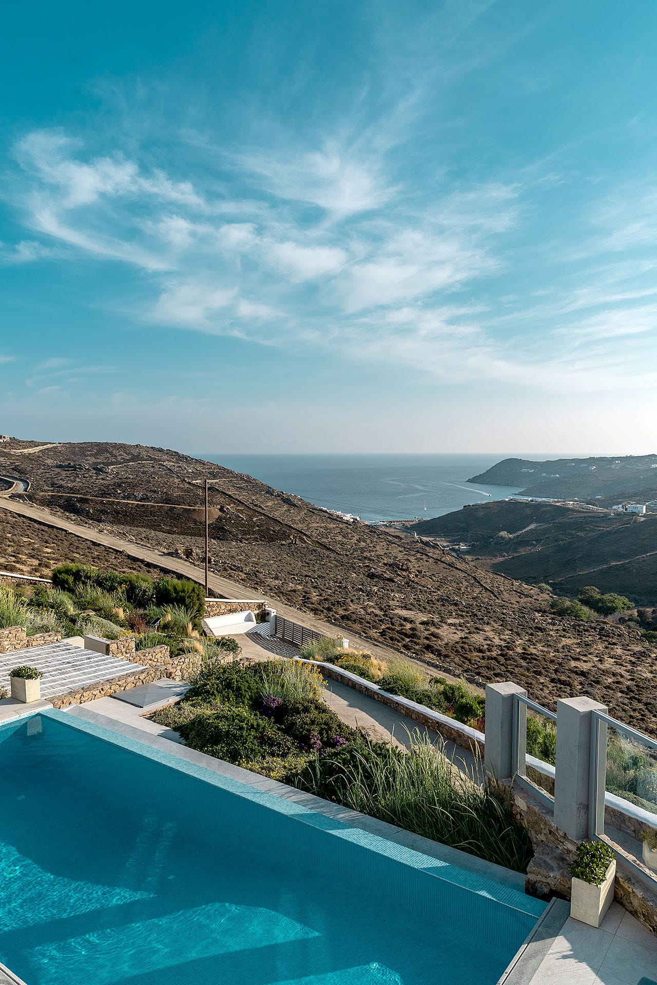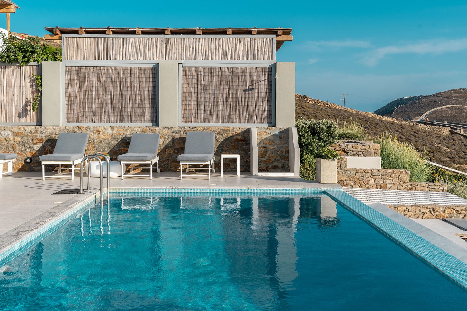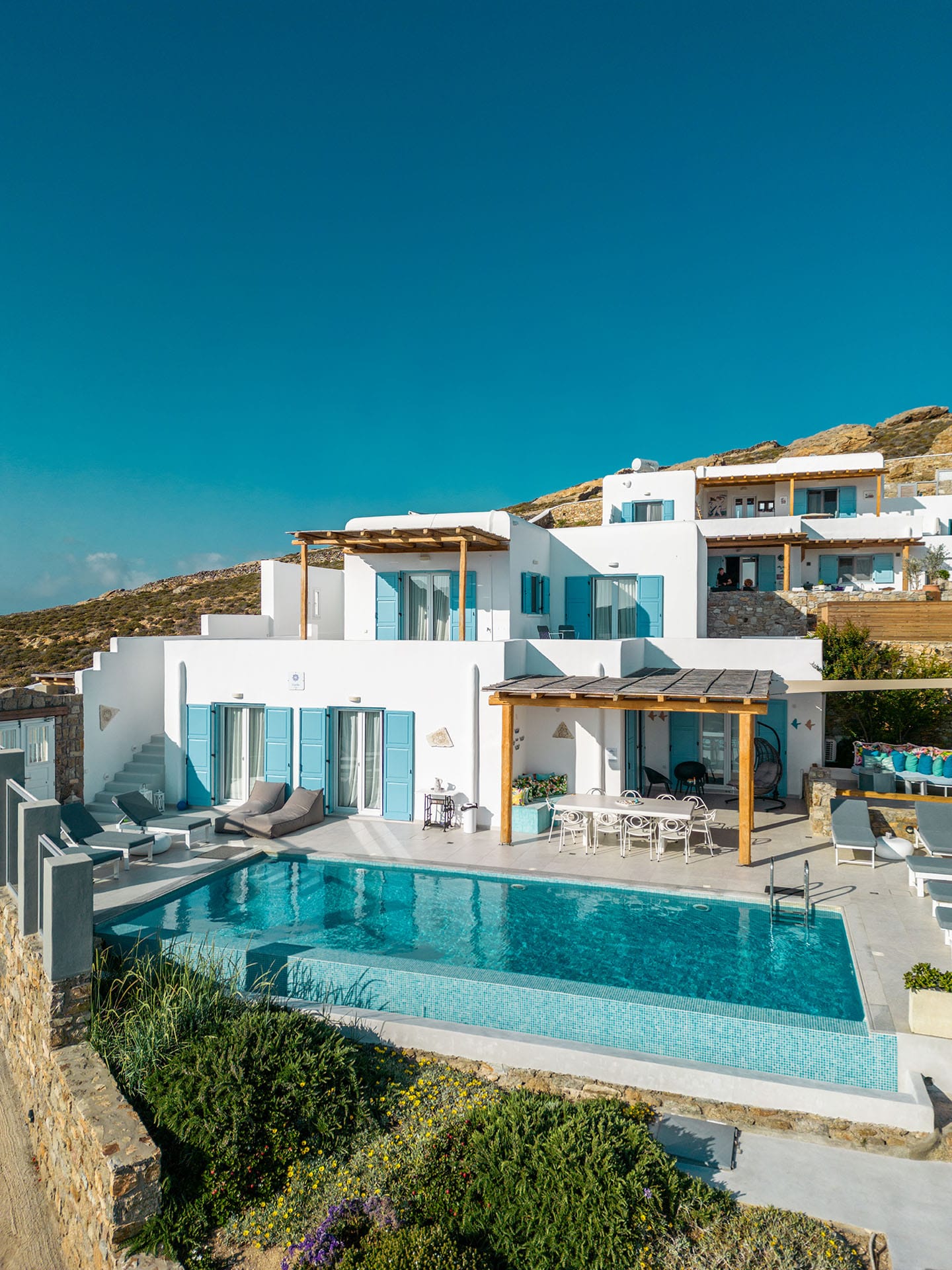 Surrounded by beautifully landscaped gardens adorned with Mediterranean flowers and herbs, Villa Calliope offers a serene outdoor environment. Pergolas and solid elements create shaded areas perfect for enjoying the mild climate.