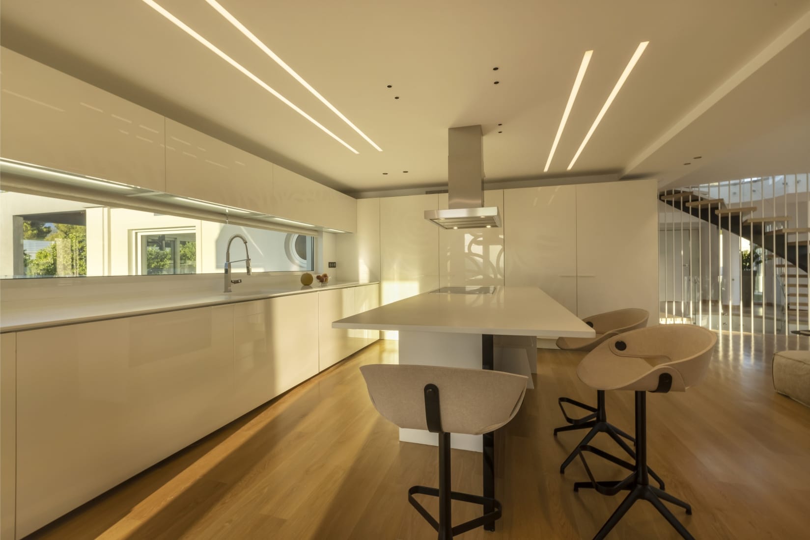 On the Ground Floor, there is a playroom with table tennis, billiards, a gym with aerobics and an office. On the same level, there are 4 master bedrooms with hydro massage.