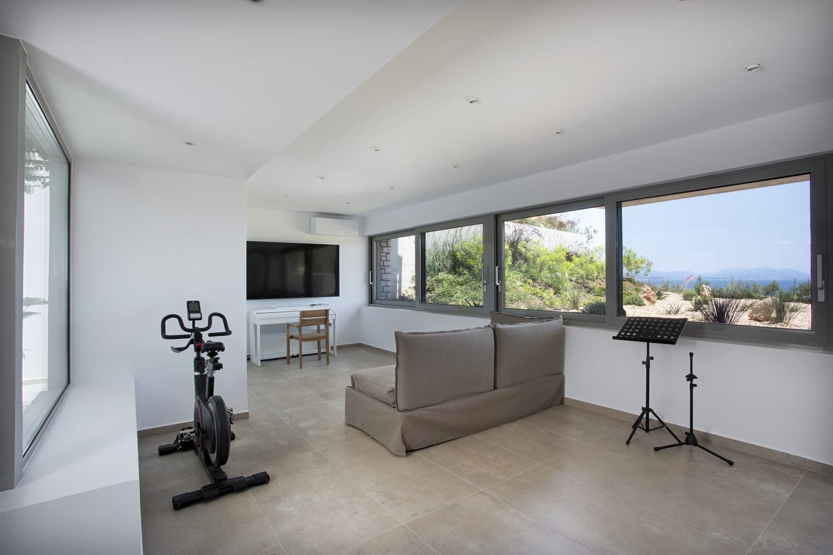 Featuring expansive glass openings that seamlessly blend indoor and outdoor areas, the villa offers an expansive living environment perfect for hosting gatherings, al fresco dining, and leisurely poolside moments. Pergolas and shaded alcoves provide serene retreats for relaxation, allowing guests to embrace the essence of Mediterranean living.