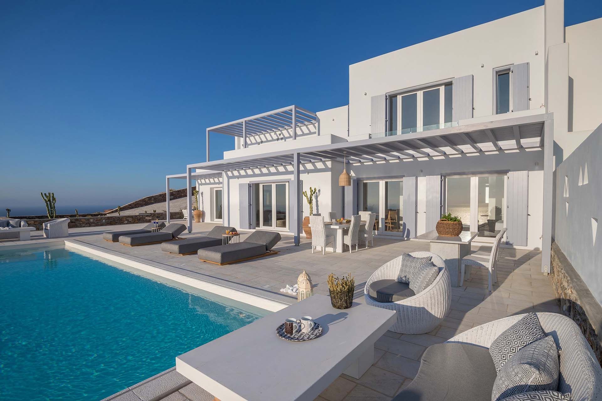 Step into the outdoor sanctuary of Villa Aisha and immerse yourself in the beauty of the Aegean Sea. Enjoy the serenity of your private swimming pool and hot tub, surrounded by lush greenery and overlooking the azure waters.
