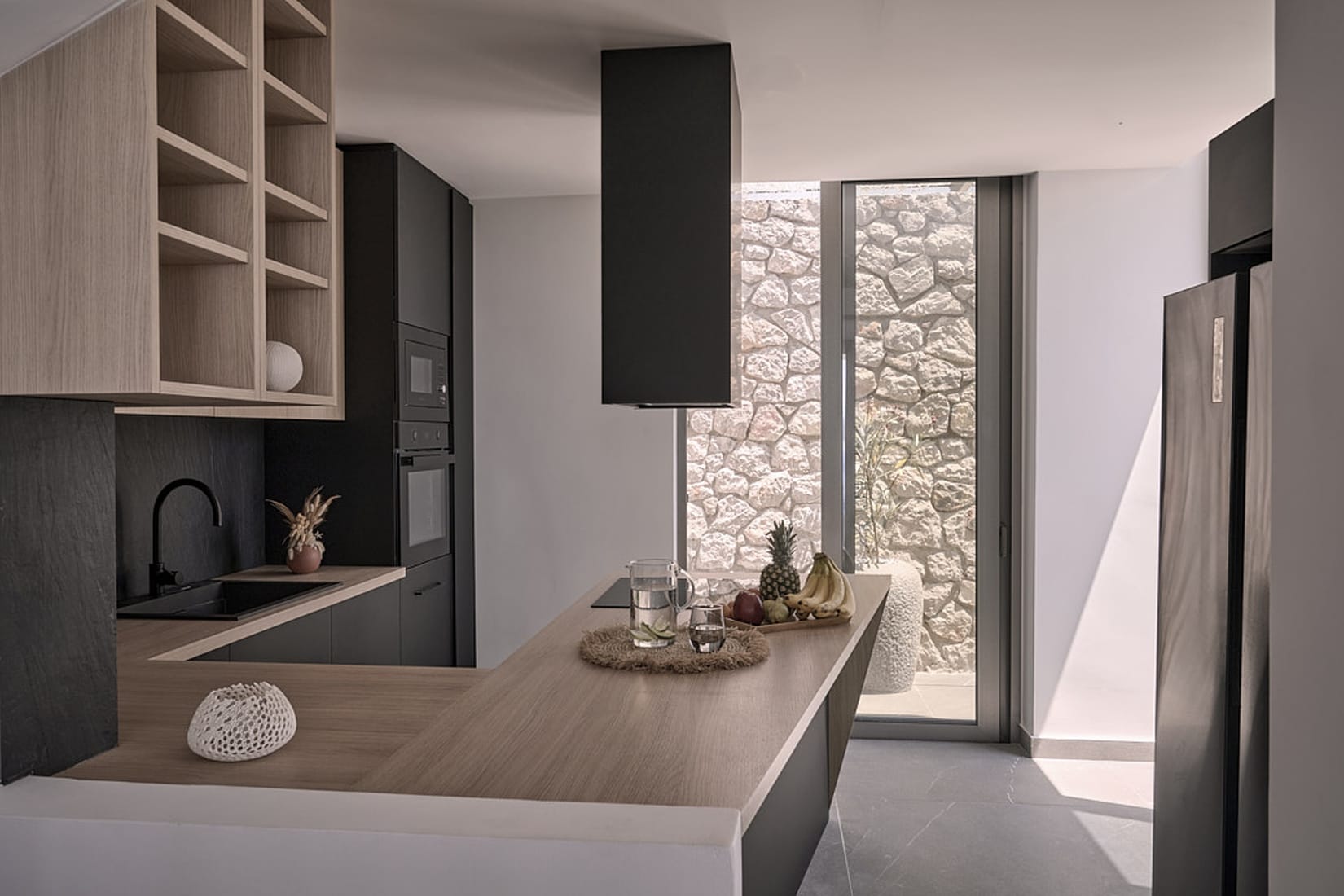 Dine al fresco in the outdoor furnished area, shaded by a tall pergola, and savor the flavors of Greece in the warm Mediterranean breeze.