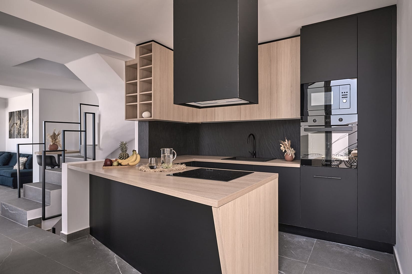 Living Room: Unwind in the inviting open-plan living room, featuring stylish decor, plush seating, and a cozy fireplace, creating the perfect ambiance for relaxation and socializing with loved ones.