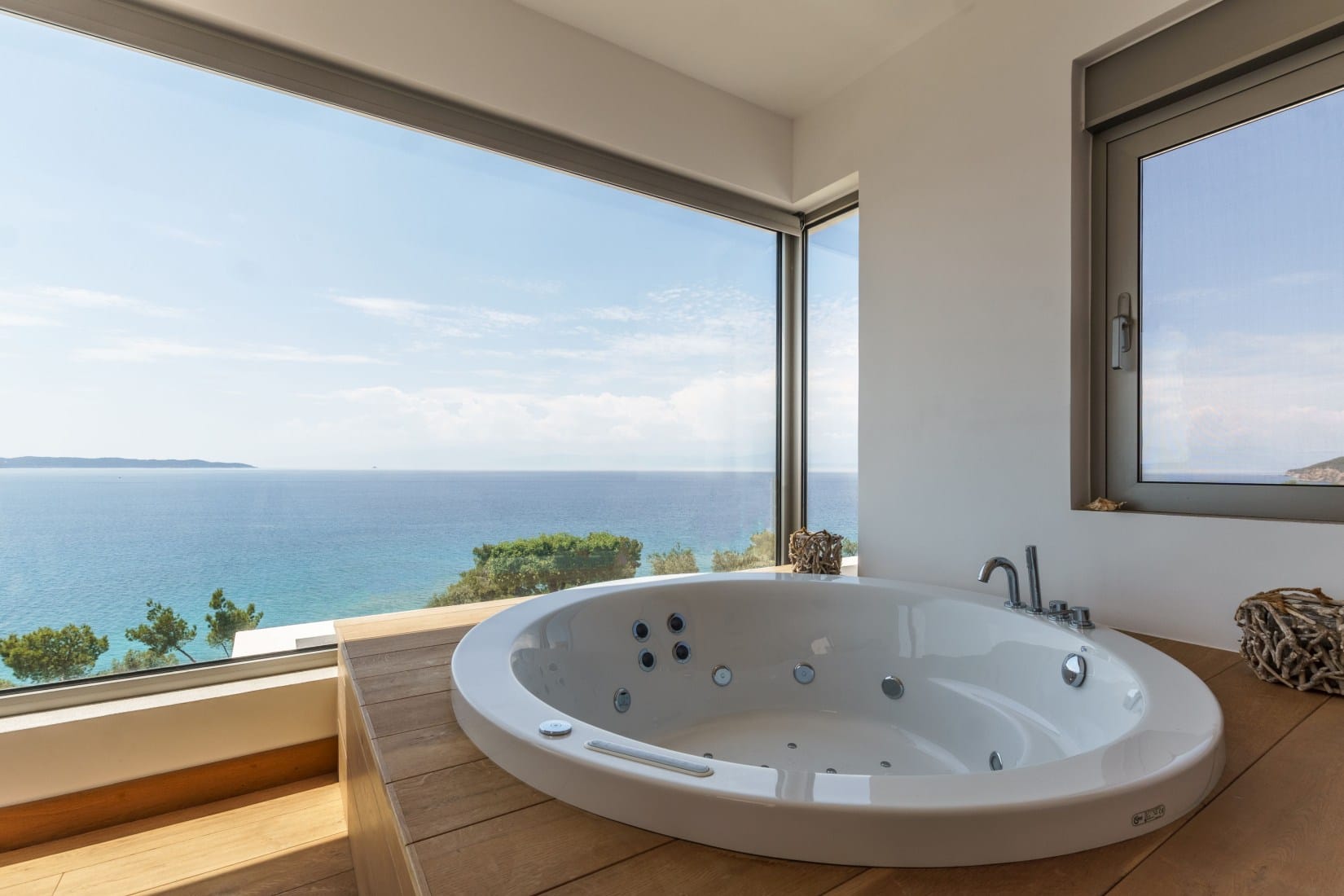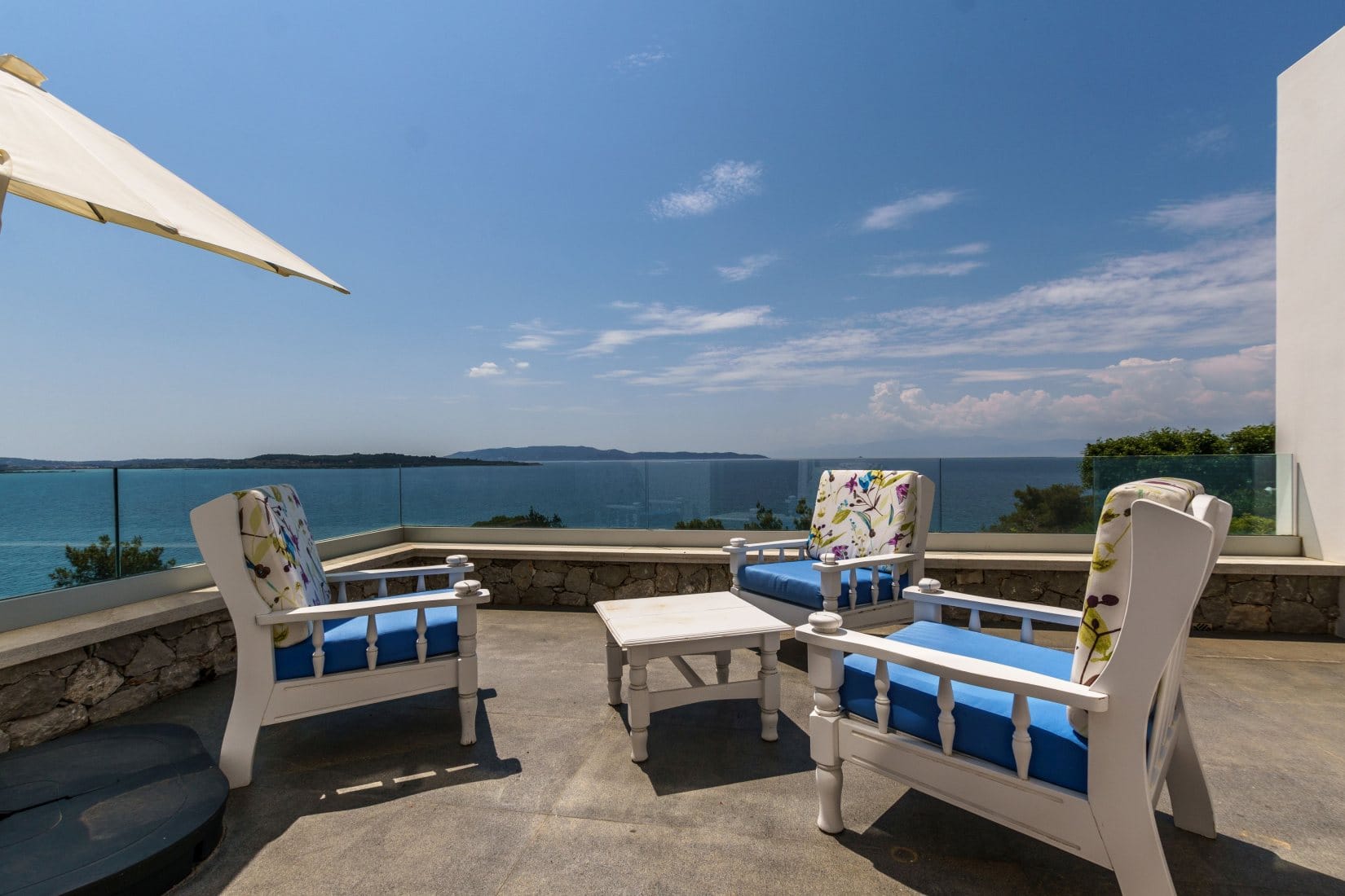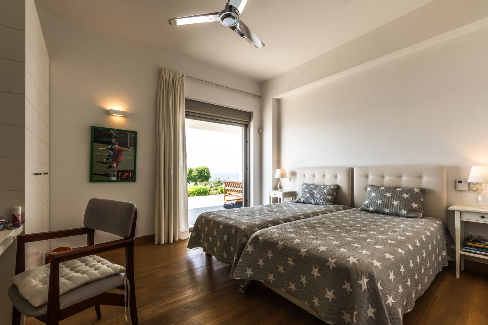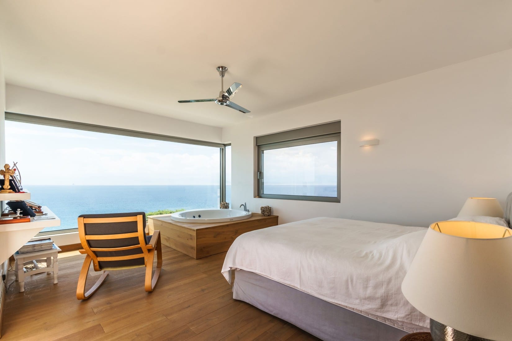 The Villa has four bedrooms with ensuite bathrooms (one Master bedroom with jacuzzi and separated changing room and three bedrooms with double beds offering panoramic sea views).