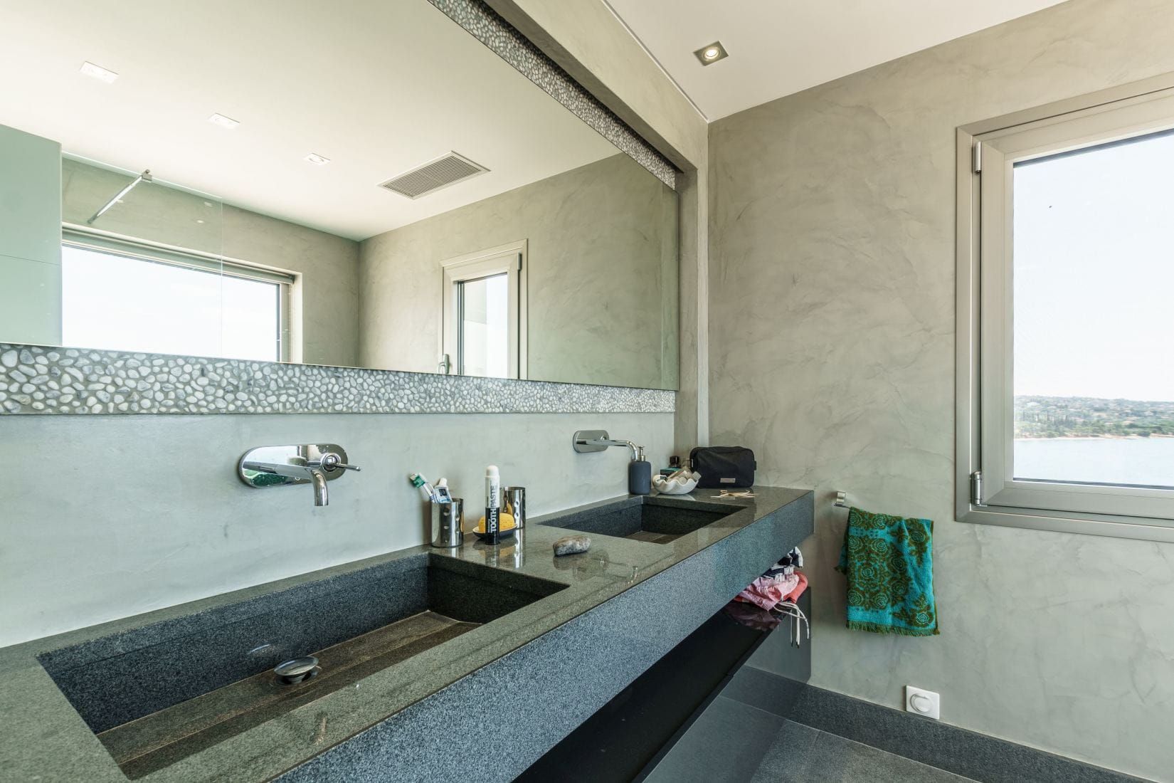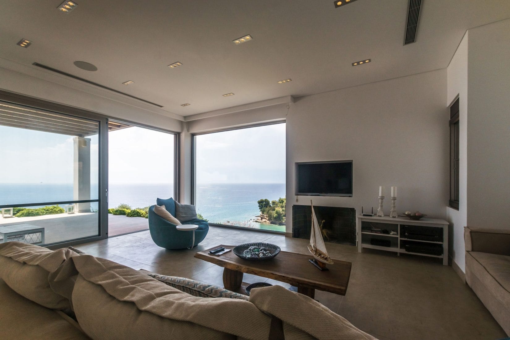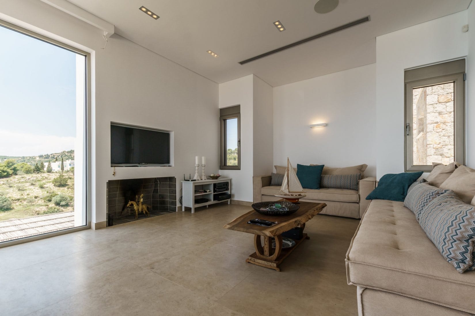 The stone outer face surrounded by green spaces and olive trees invites the guests to feel the natural beauty of this area. Whether you value privacy, wellbeing, sports, luxury, independence, it’s all here for you along with the infinity private swimming pool overlooking the Greek Sea.