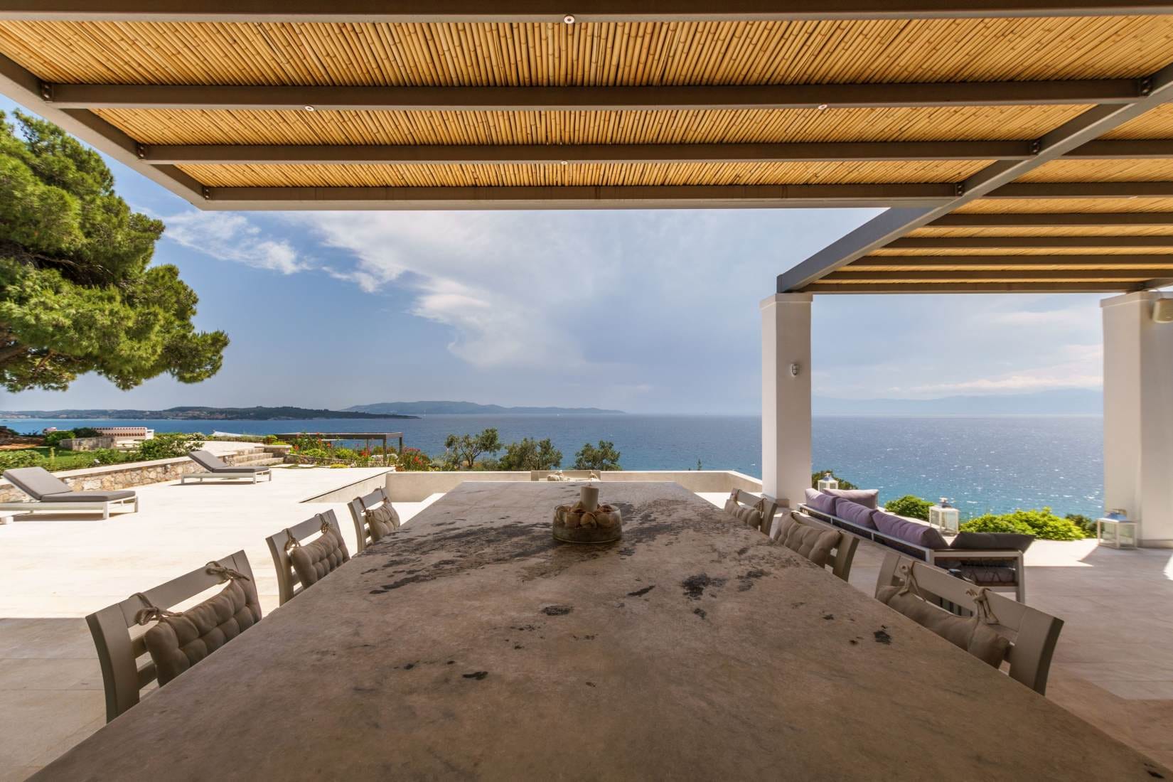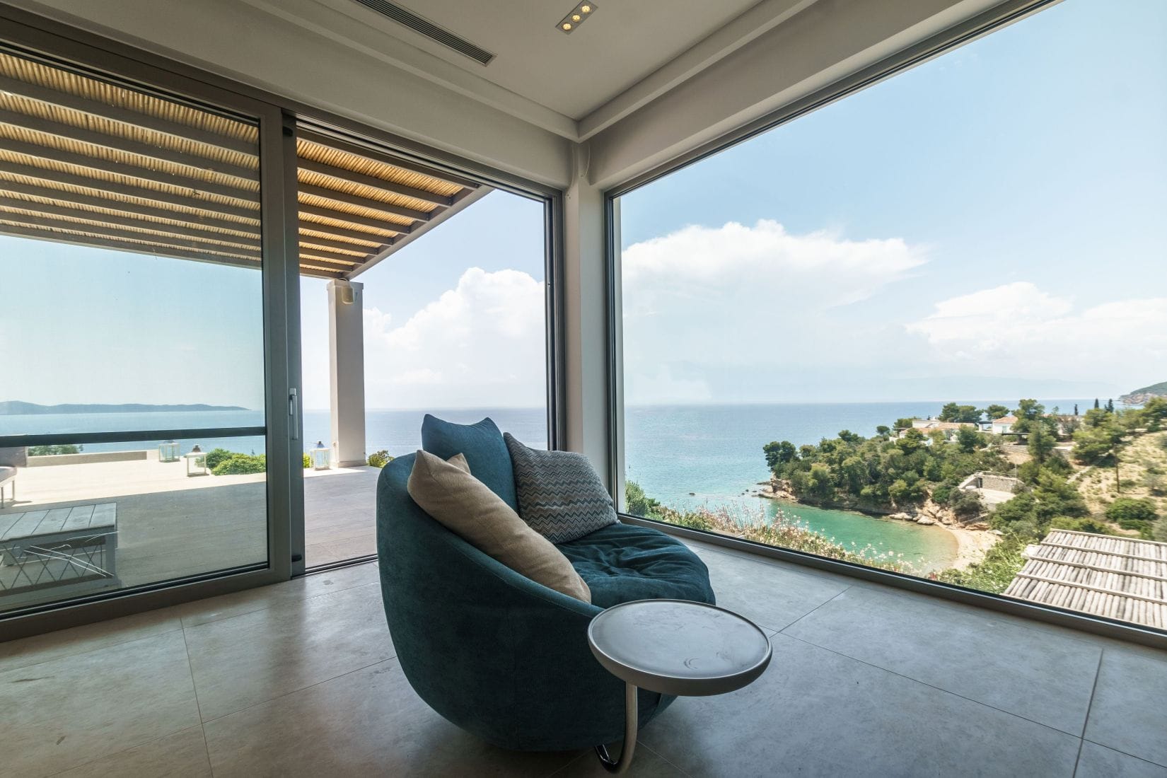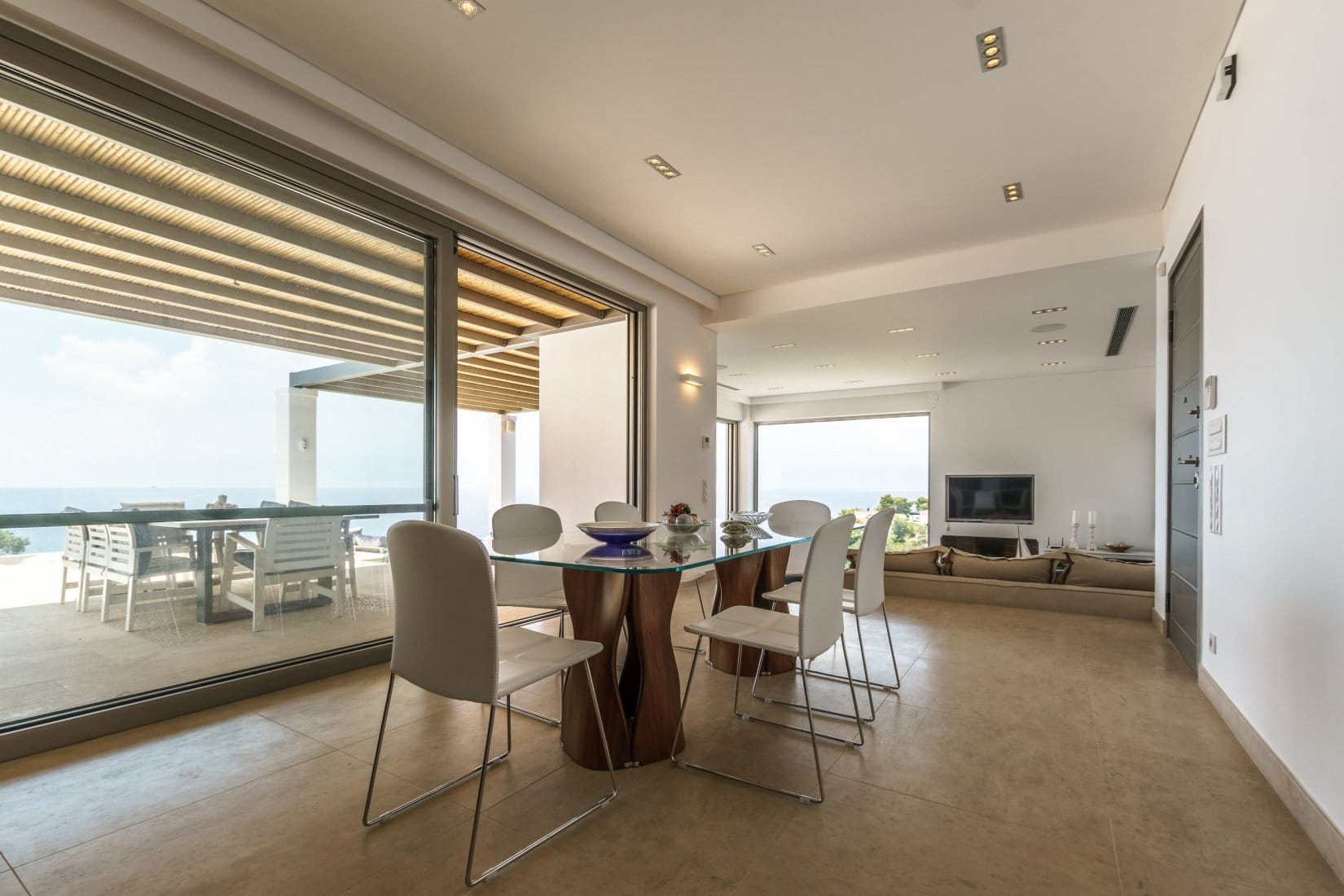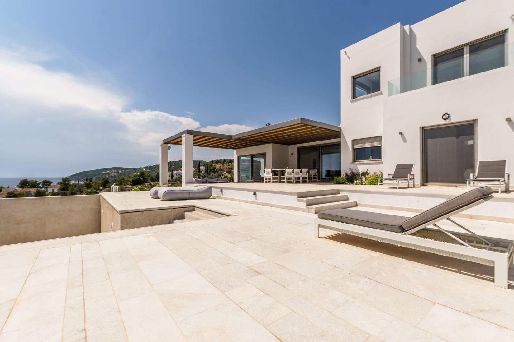 The outdoor area includes an amazing guest house with one bedroom and one bathroom, ideal for staff members or guests who are seeking privacy moments along with the infinity private swimming pool overlooking the Greek Sea.