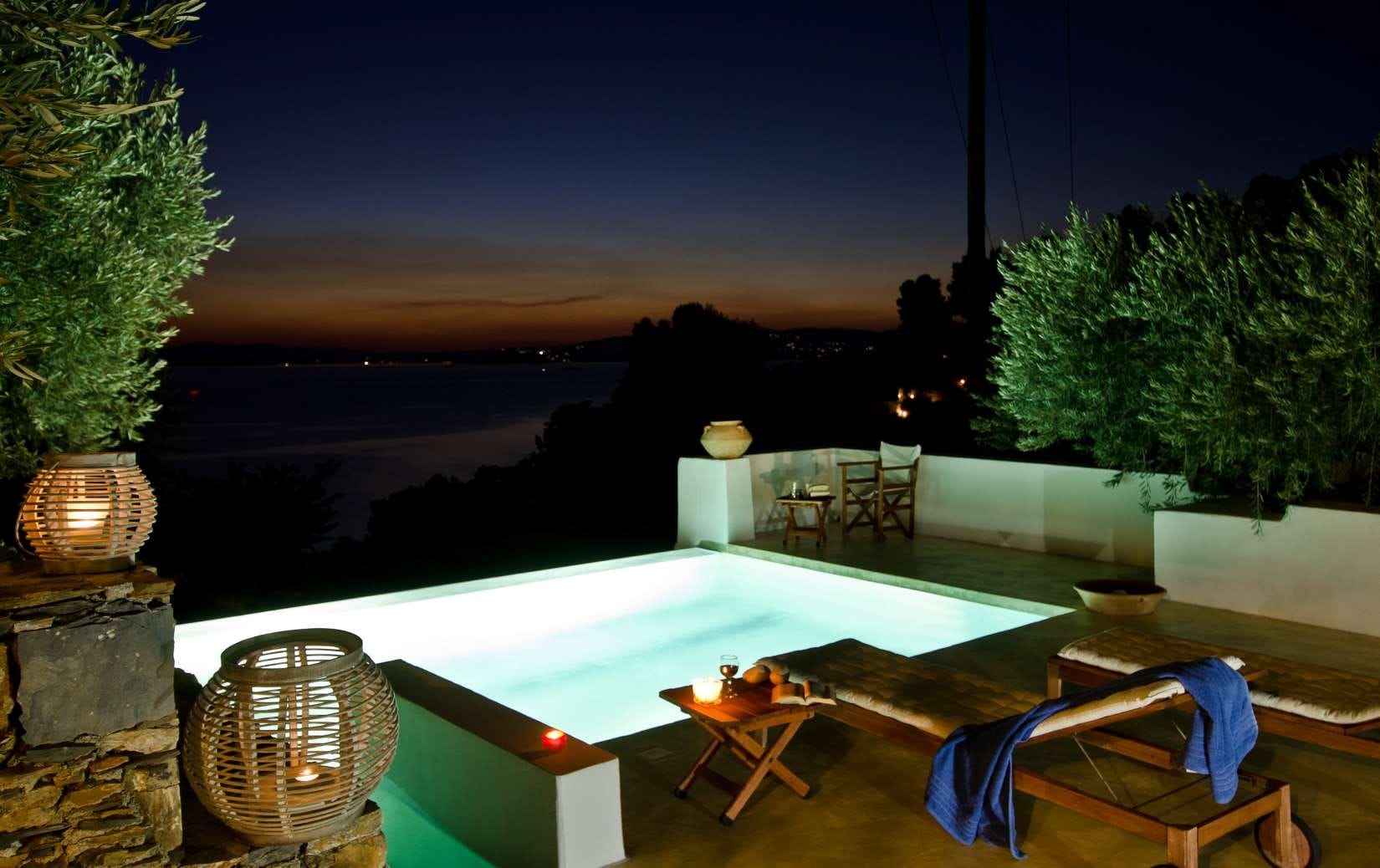 Situated in the south part of Skopelos, Villa Cylena offers stunning sunset views, and unobstructed views towards the sea and several Greek islands. Following a path down the cliff, around 100 steps, leads you to a semi-private beach ideal for isolated relaxation, and summer holidays away from crowded beaches