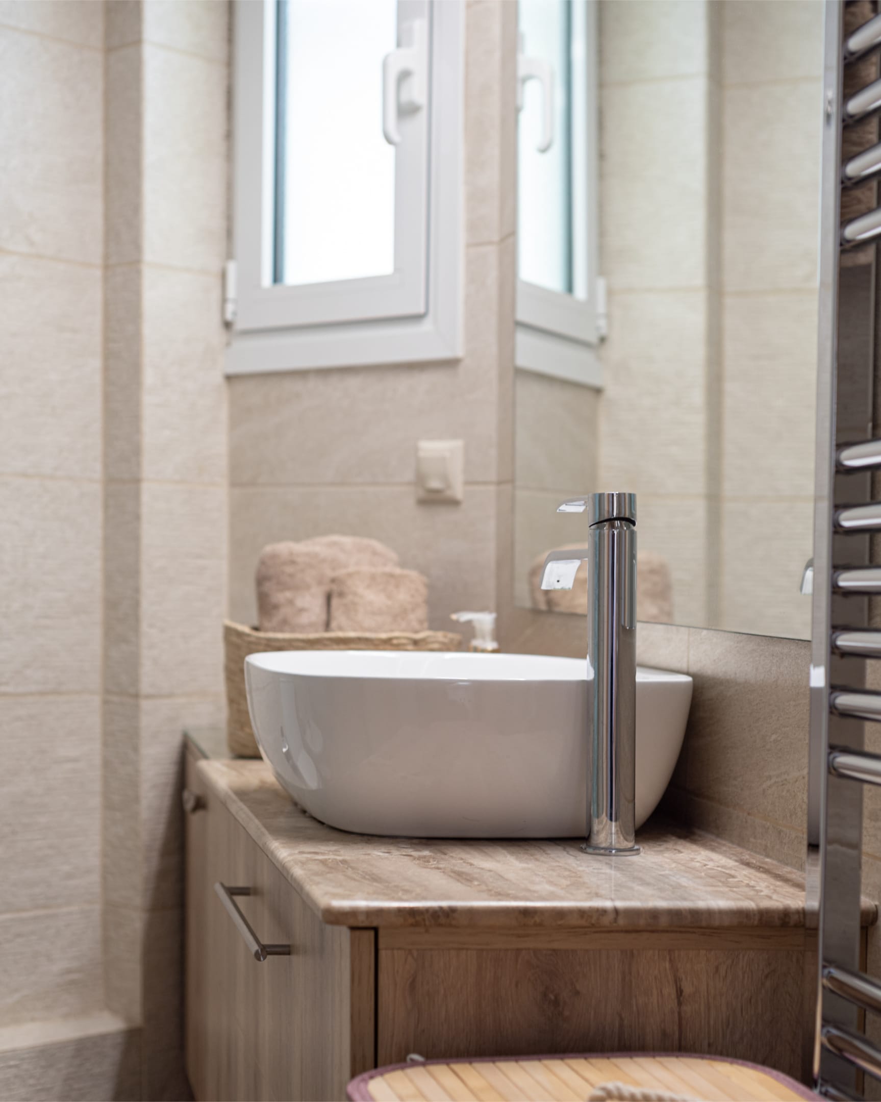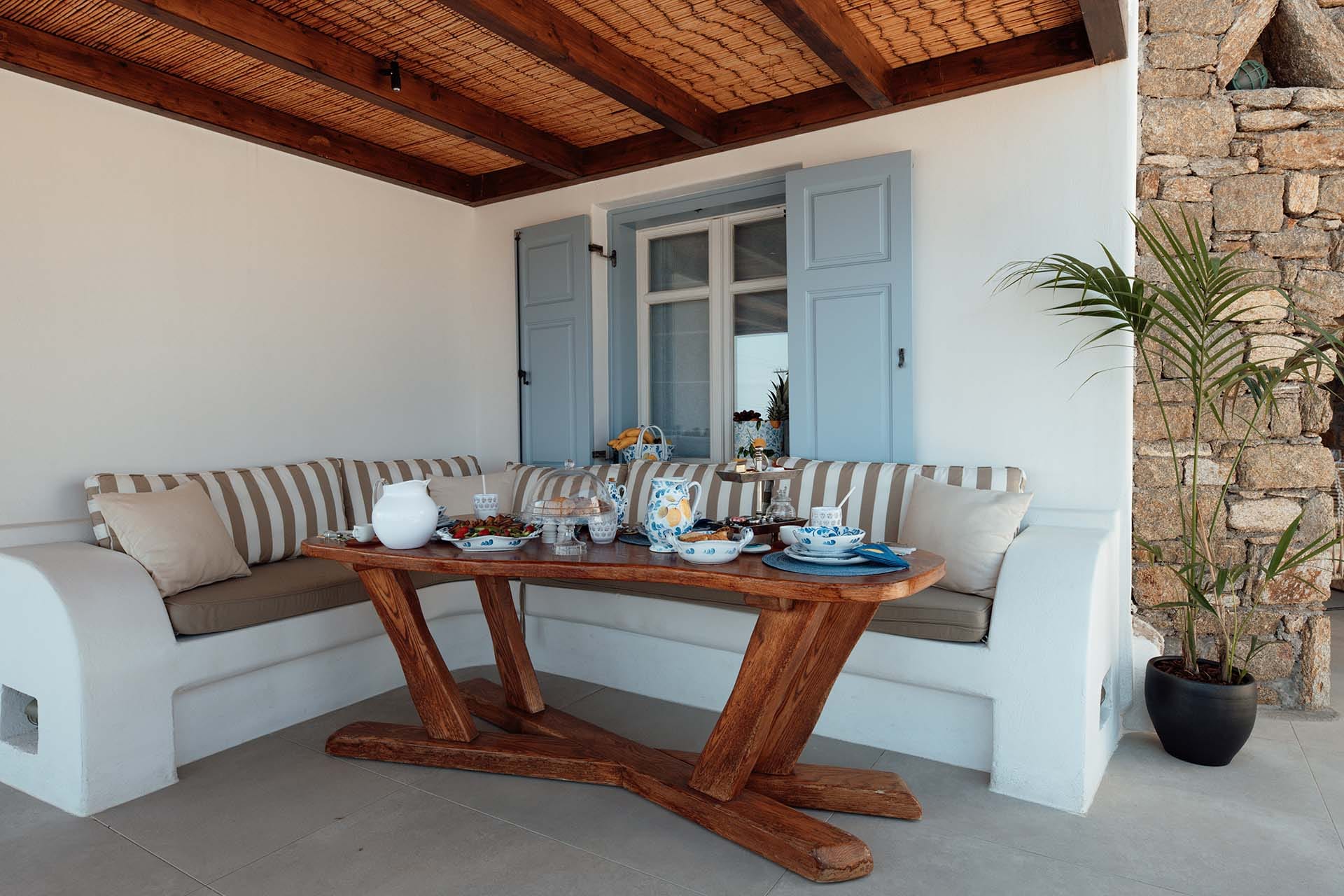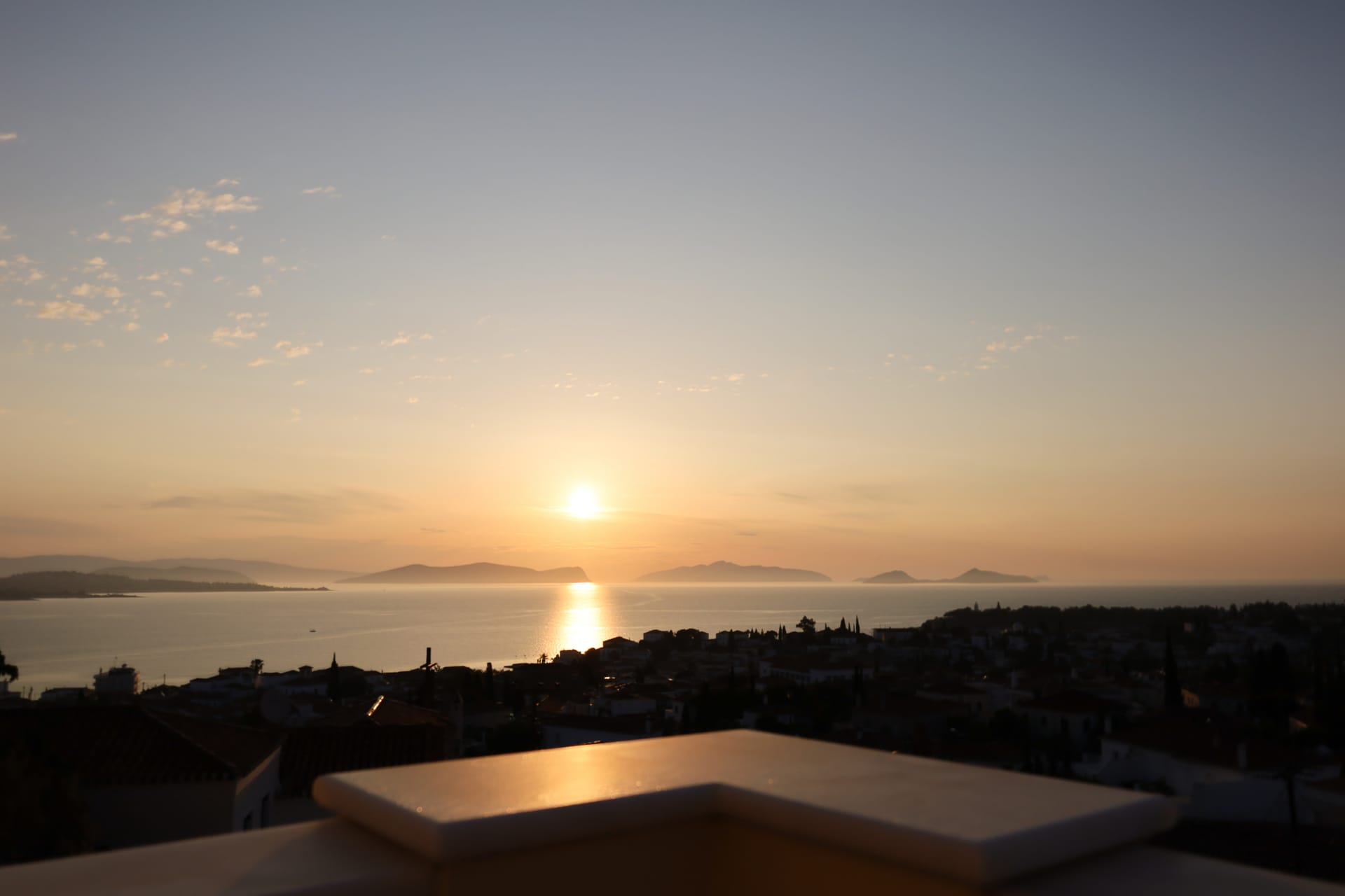 Step outside to the expansive terrace, where you’ll find an outdoor dining table and a comfortable lounge area—perfect for enjoying alfresco dinners and sipping summer cocktails. The terrace offers breathtaking views of the sea, showcasing stunning sunrises and the picturesque town of Spetses.