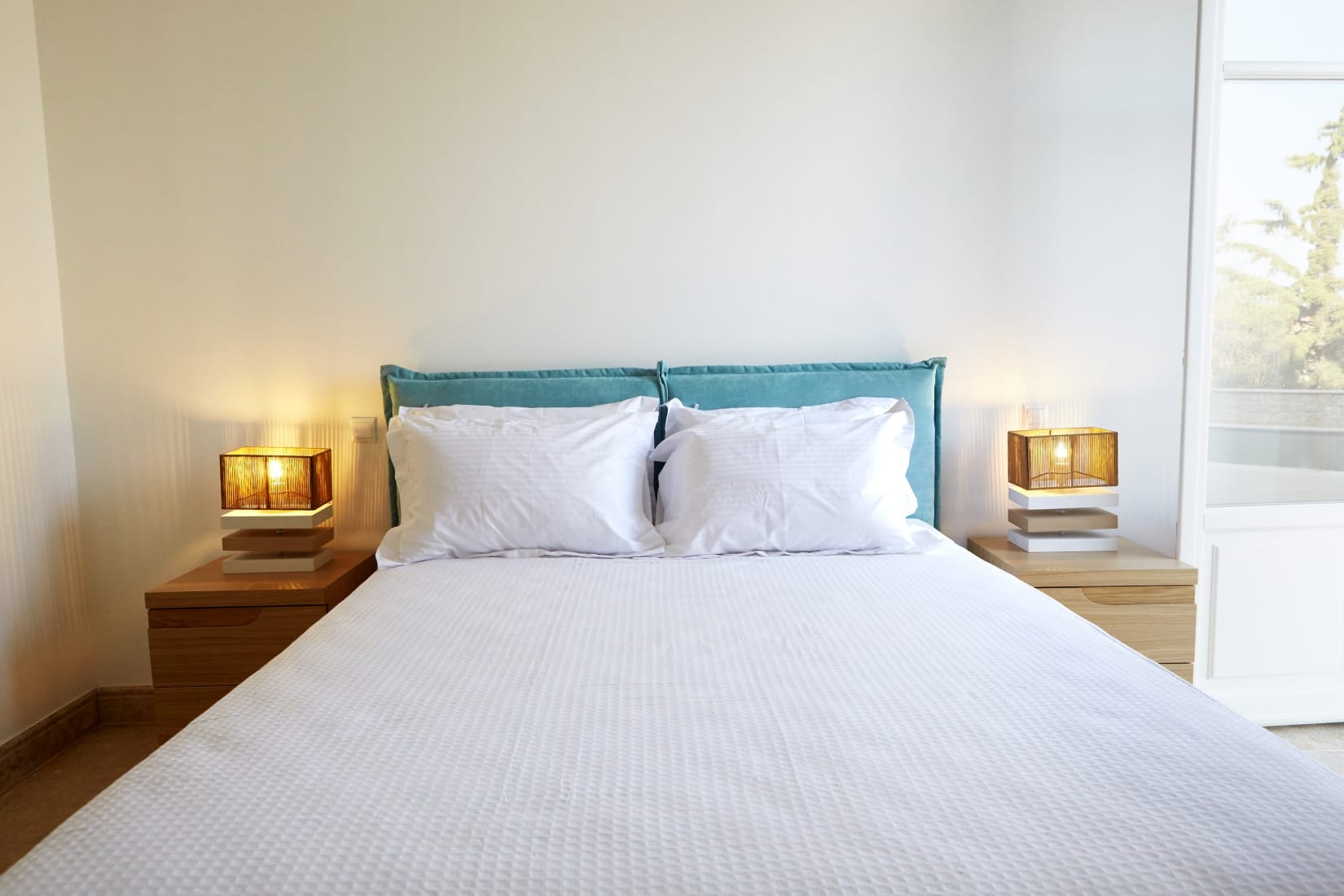 The upper level of the villa features three additional bedrooms designed for comfort and privacy: The master bedroom boasts an ensuite bathroom and a spacious balcony, offering breathtaking views of Spetses town and the shimmering sea. There are 2 loungers on this private balcony for extra comfort and privacy and relaxation. The second double ensuite bedroom provides a cozy retreat, while the single bedroom includes a convenient WC.