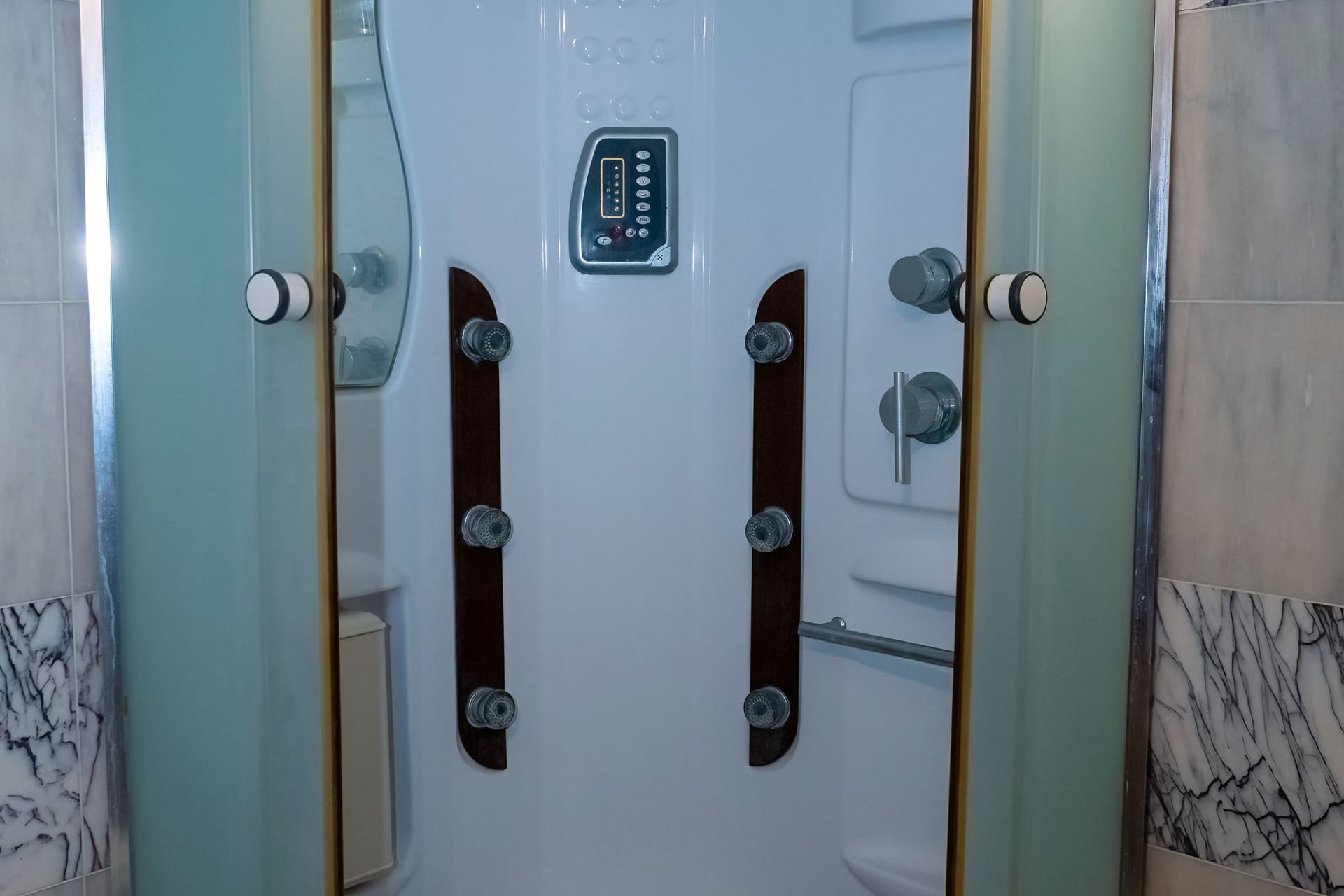 On the lower level, which is also accessible via a separate entrance, you will find three bedrooms: two with queen beds and one with twin beds, as well as two bathrooms and direct pool access.