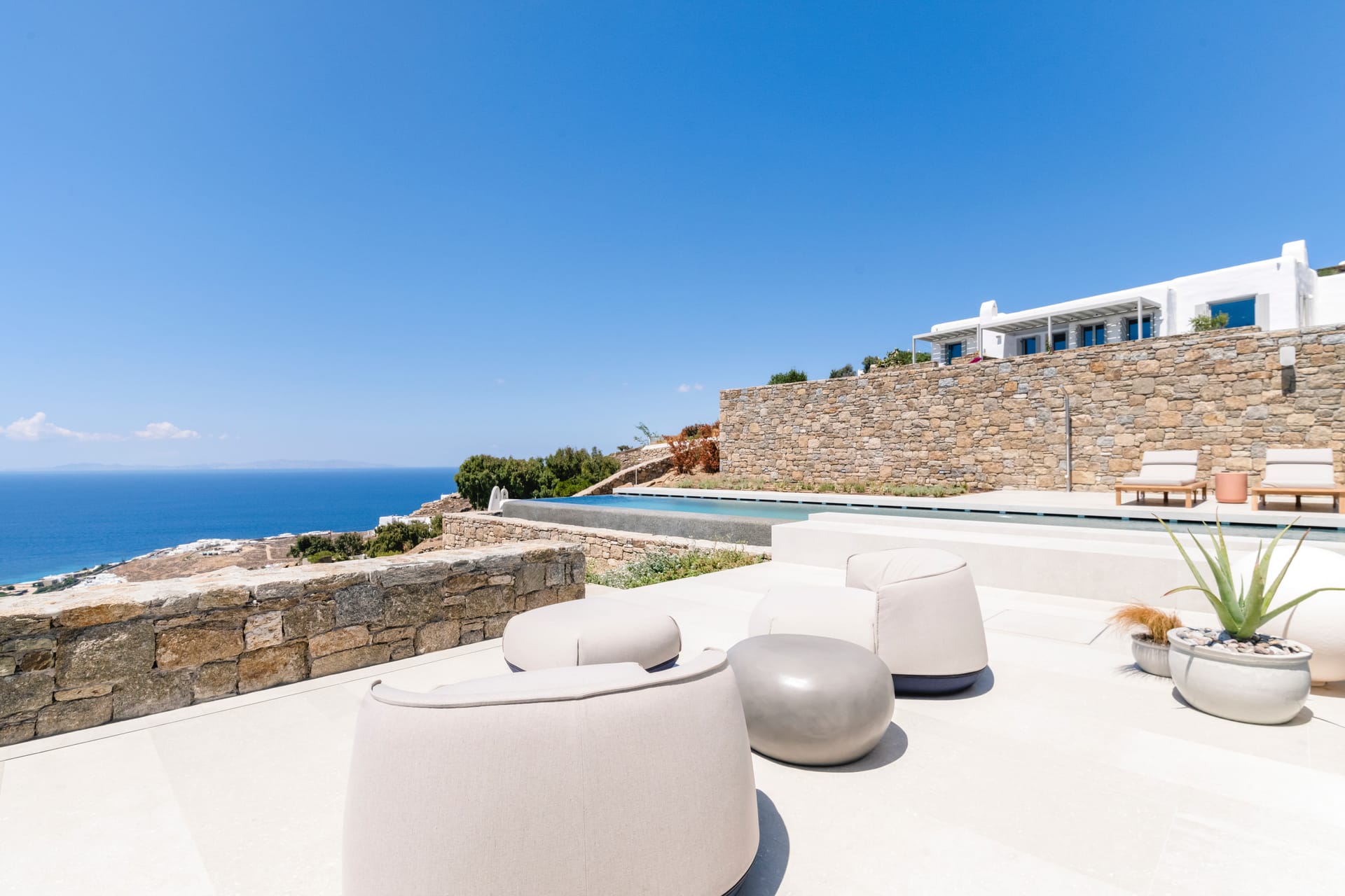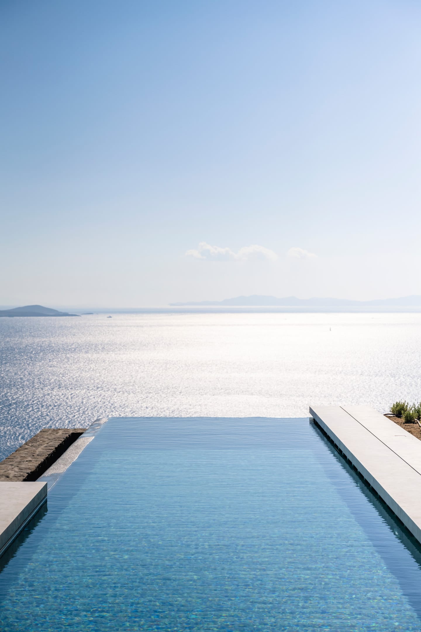 Just a few steps away, the spacious pool area provides an amazing spot for guests to enjoy – when you dive into the incerdible infinity pool you’ll feel like you could swim directly into the sea, and the sylish sun loungers and umbrellas invite you to relax and soak up the incredible views.