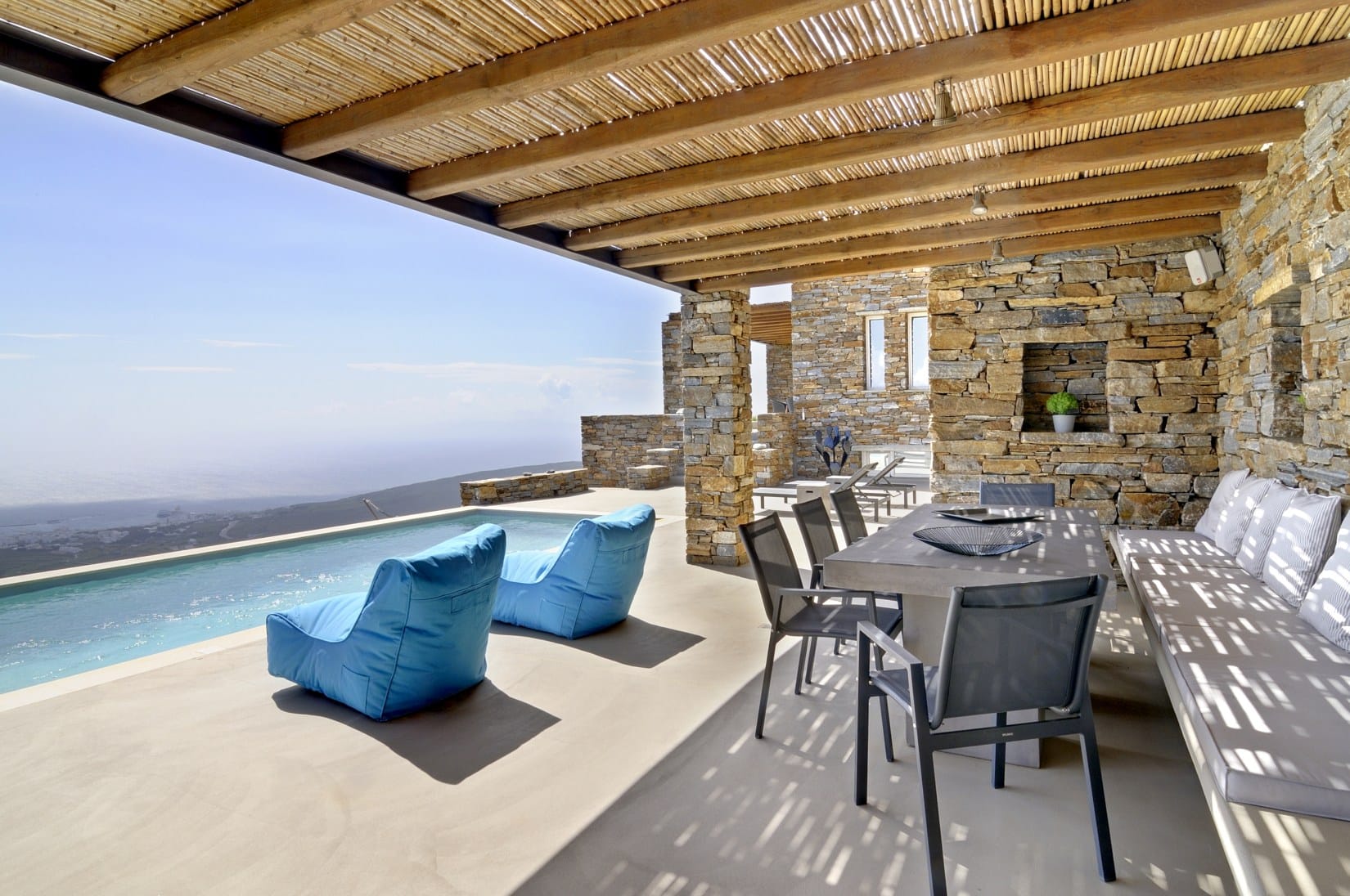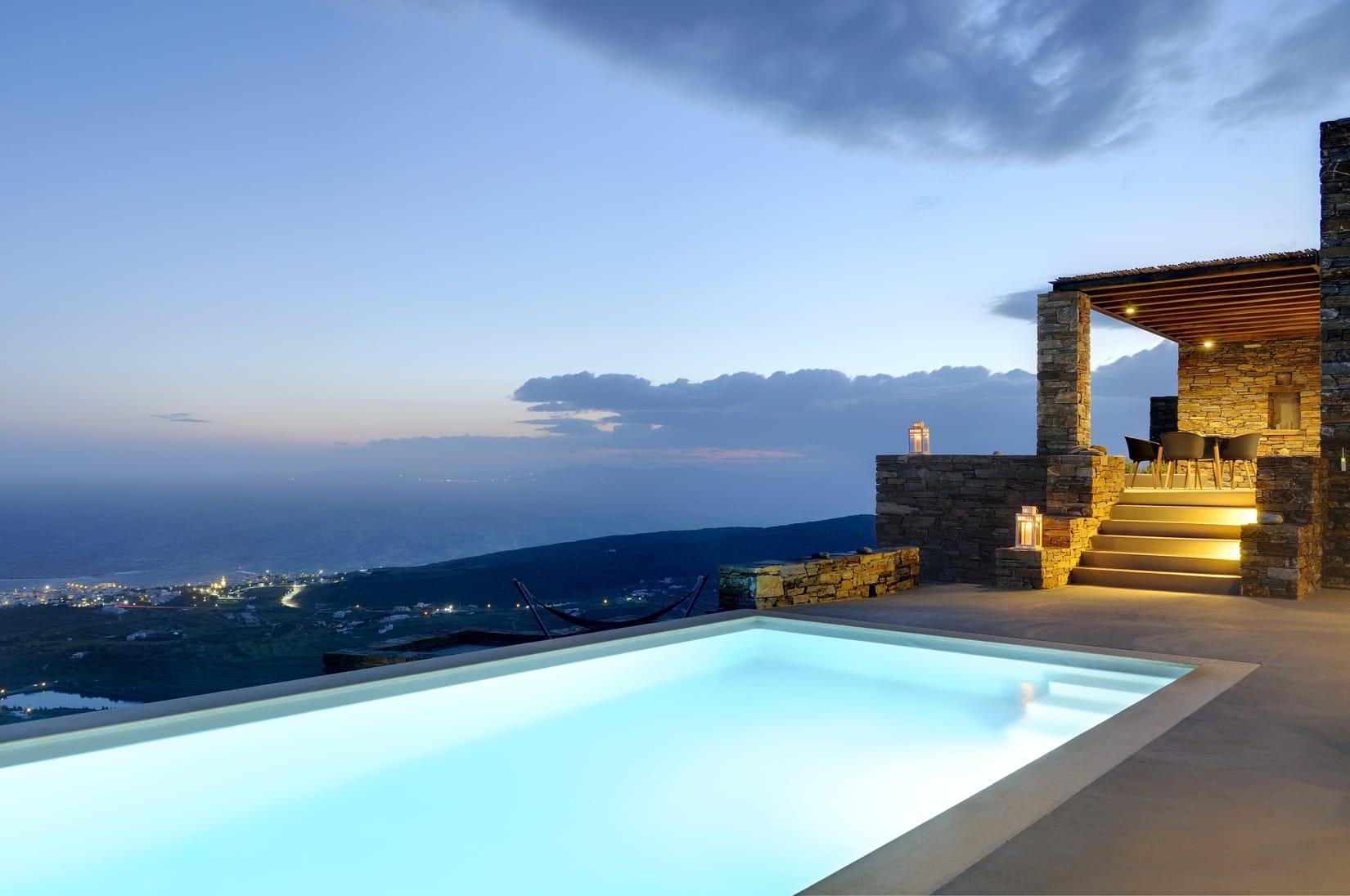 A lavish 4-bedroom holiday villa with a private swimming pool, located on the beautiful Cycladic island of Tinos, inviting guests for a memorable experience of fine luxury, discreet service, and privacy.
