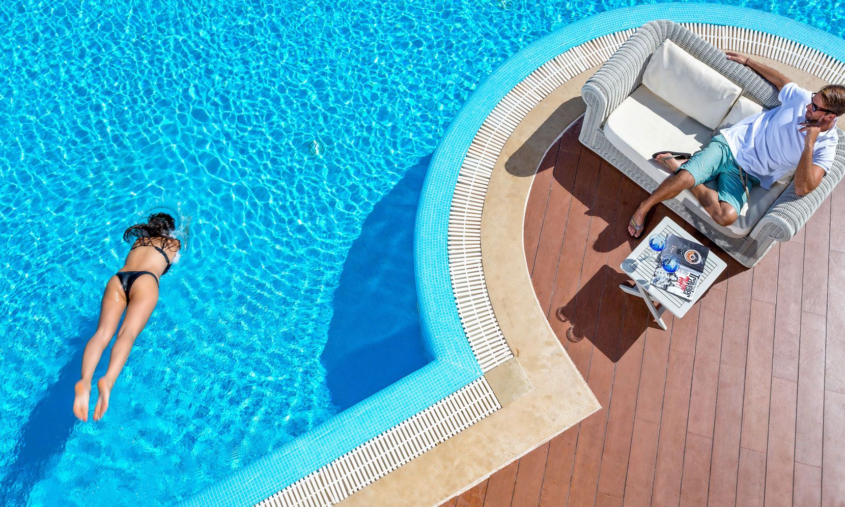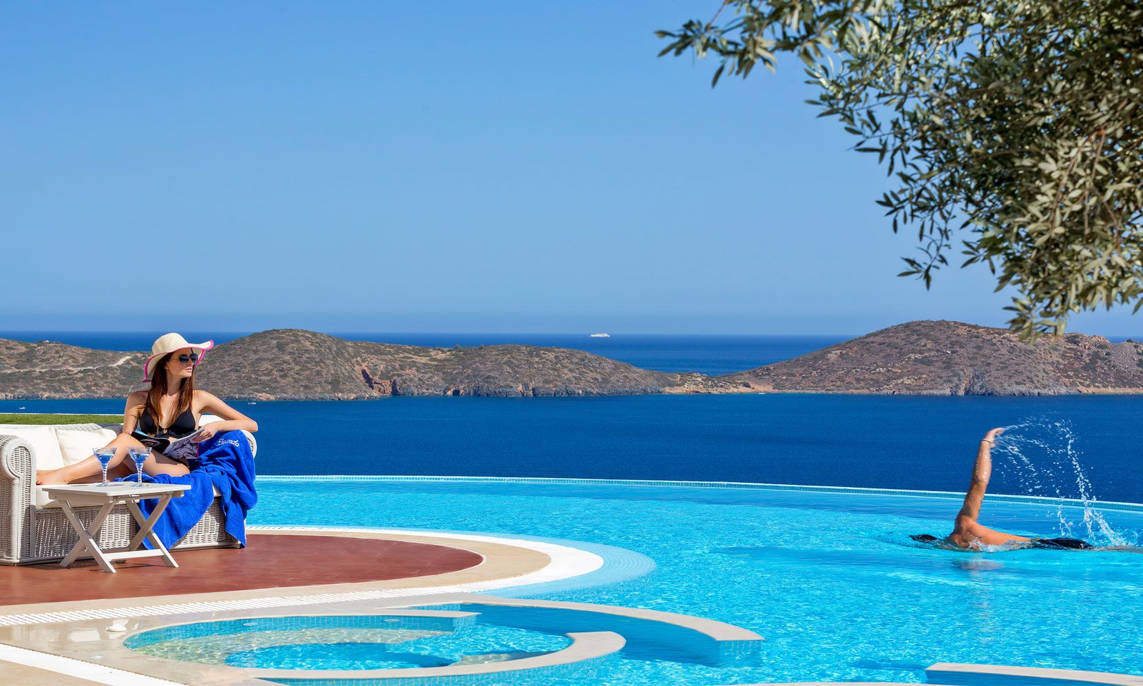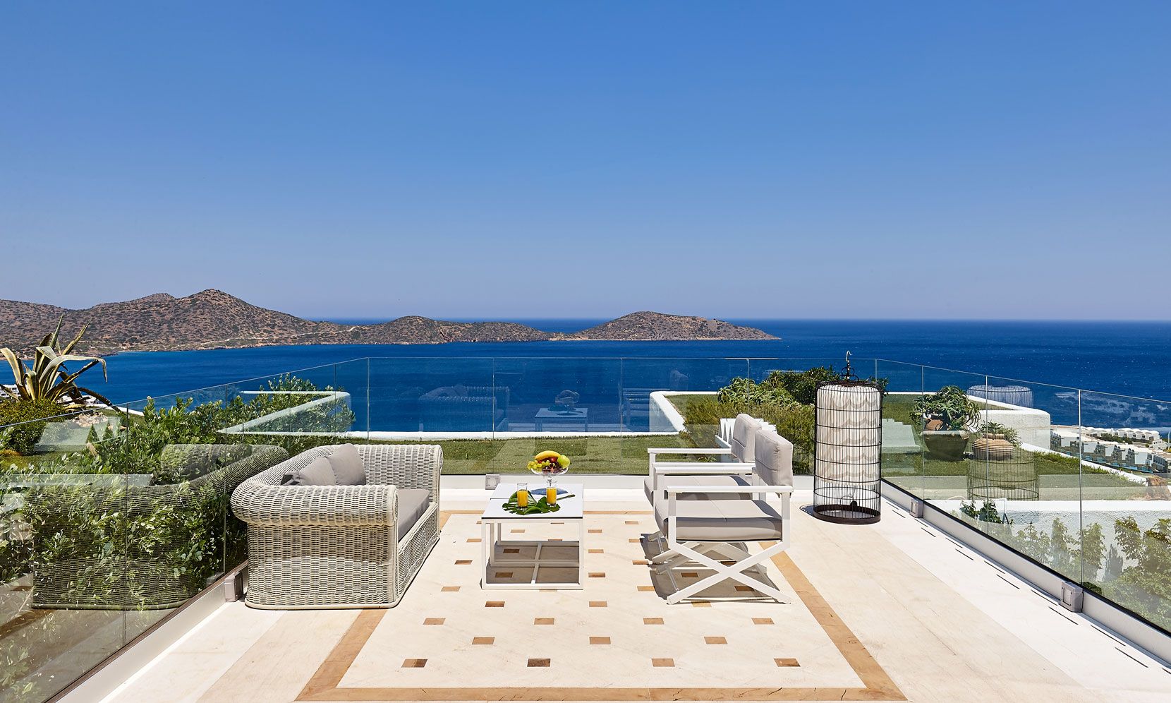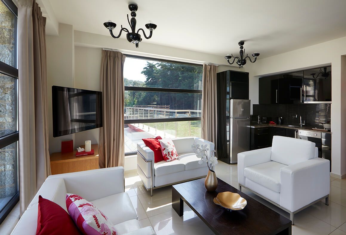 Making the most of the space and the view, as you enter the villa, the open living room invites you to relax in style. The specially designed sofa can be transformed into a king-size or two single beds. The modern kitchen is fully equipped with a Nespresso coffee machine, kettle, toaster, oven with stovetop, dishwasher, and all kitchen accessories. A washing machine, iron, and ironing board, along with a large LCD TV and A/C, complete the amenities.