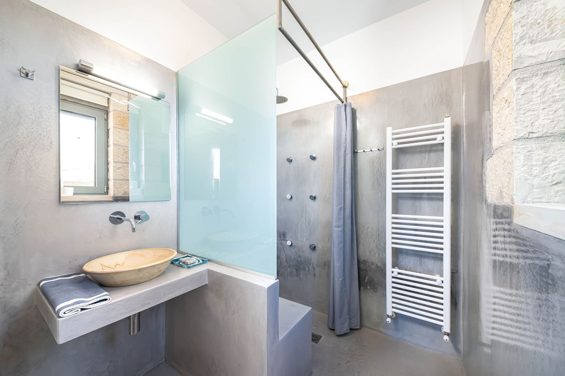 The outdoor spaces are carefully tended and fenced for your privacy, and feature the spectacular swimming pool, which measures 25 sq.m., is heated and has sun beds and parasols for endless hours of relaxation!