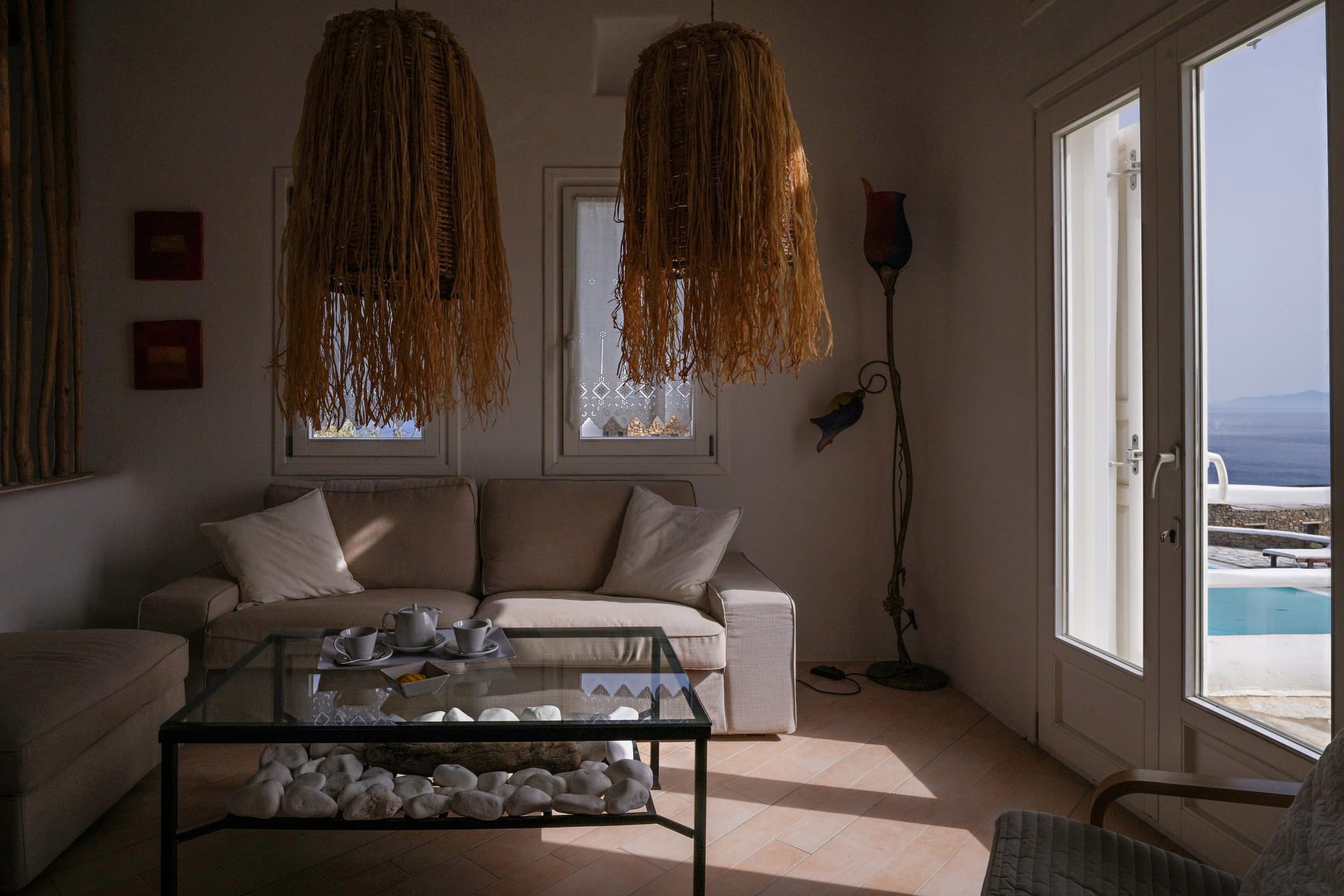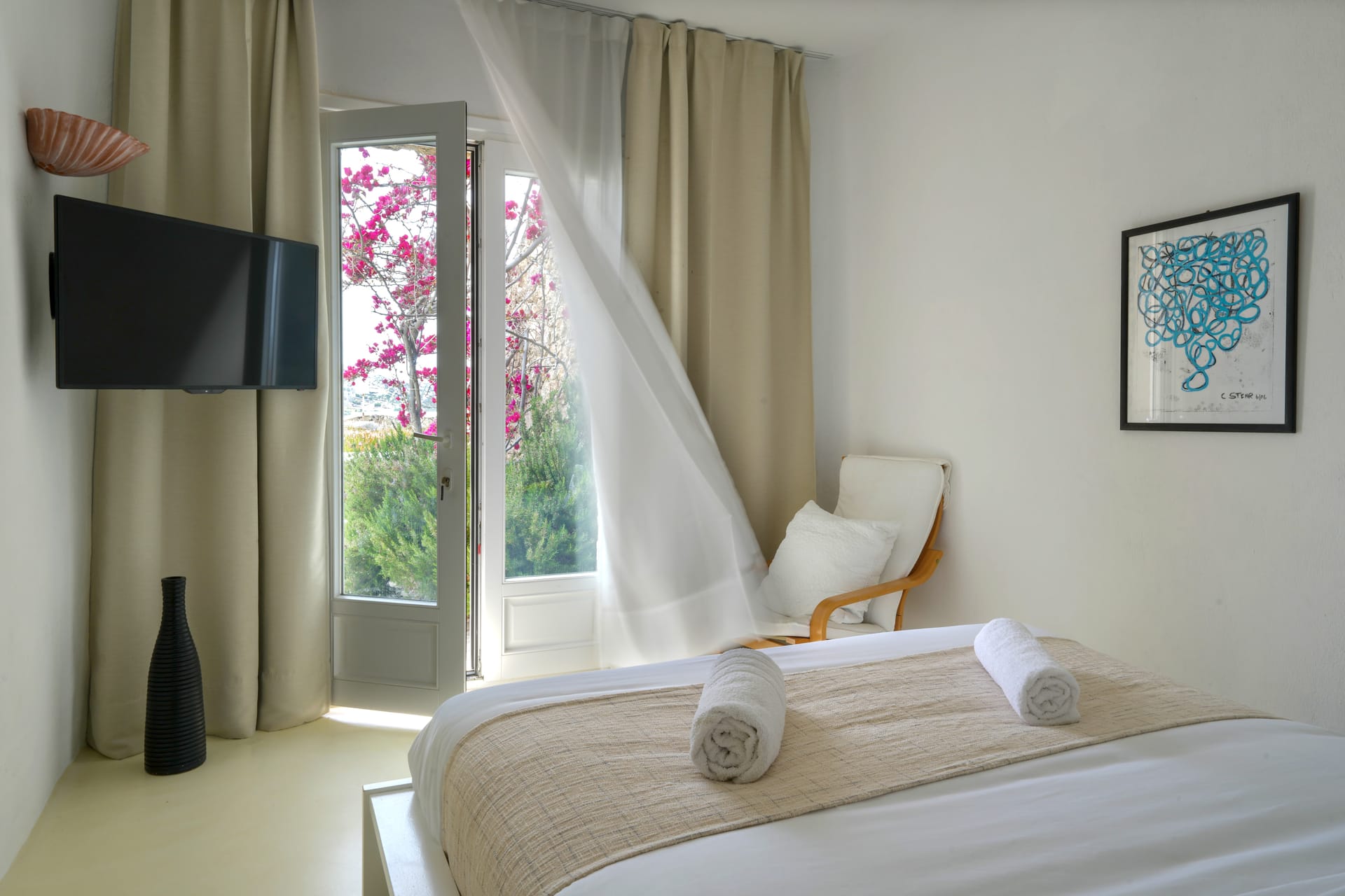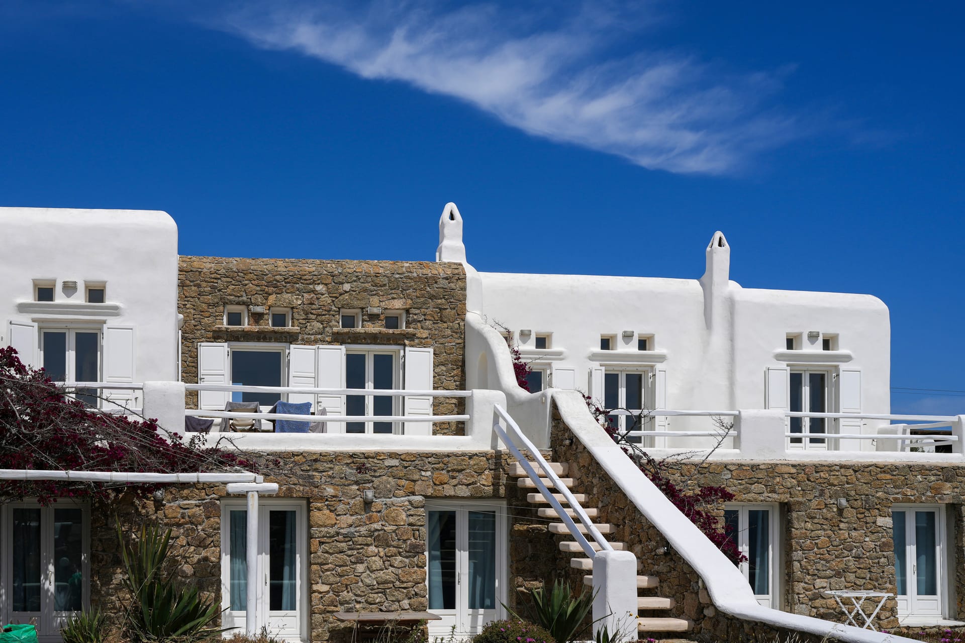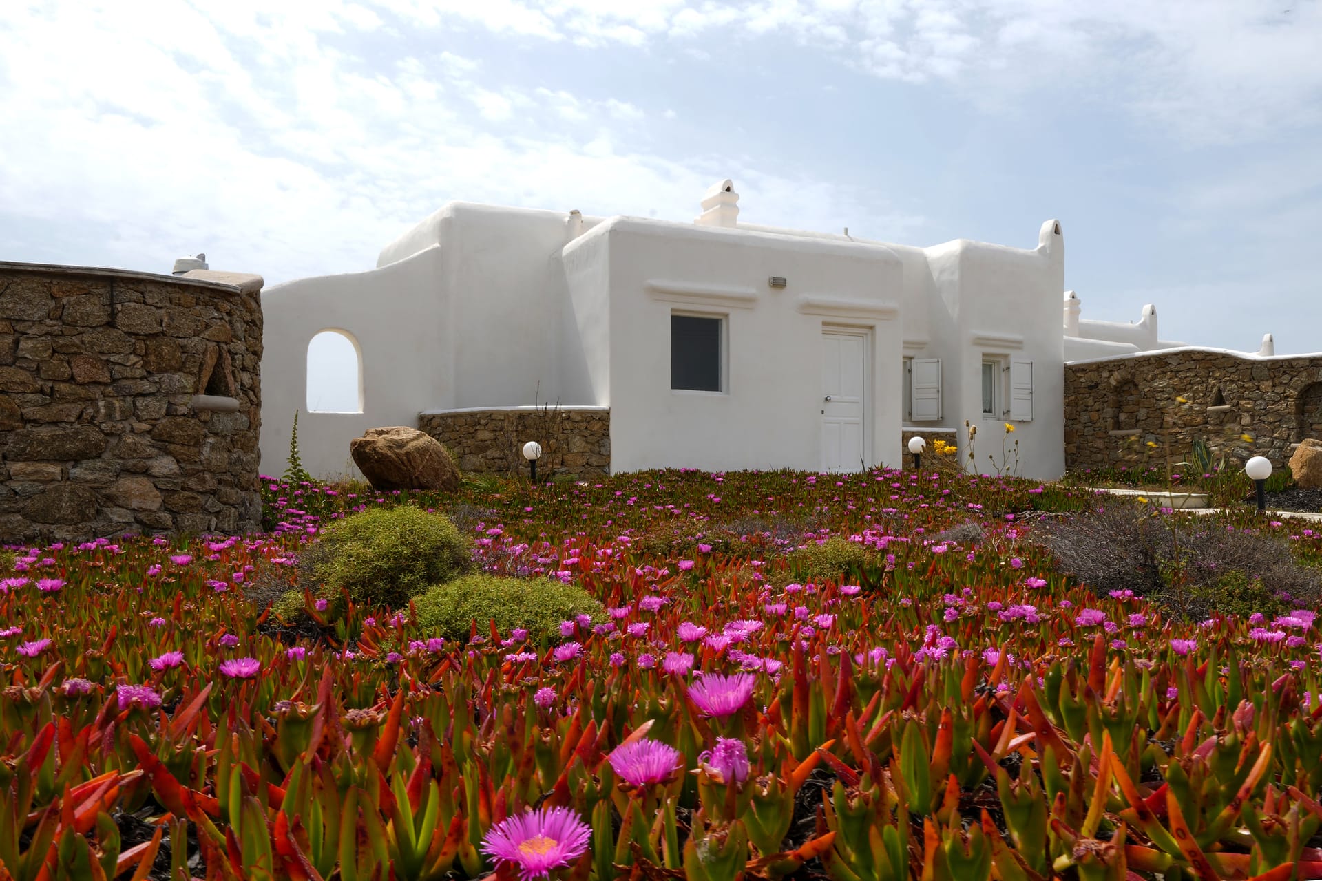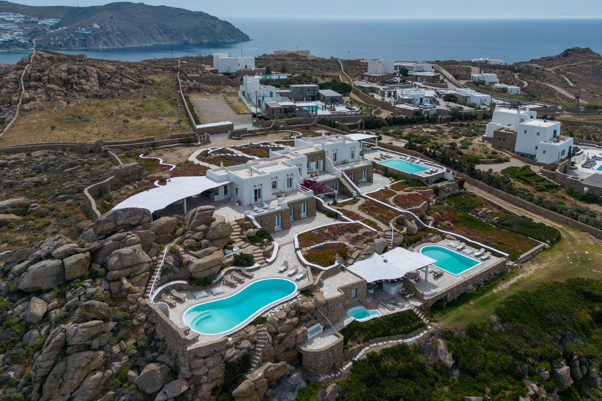 Above the marvelous Super Paradise Beach, Mykonos Villa Super Three soaks in the Mykonian summer.