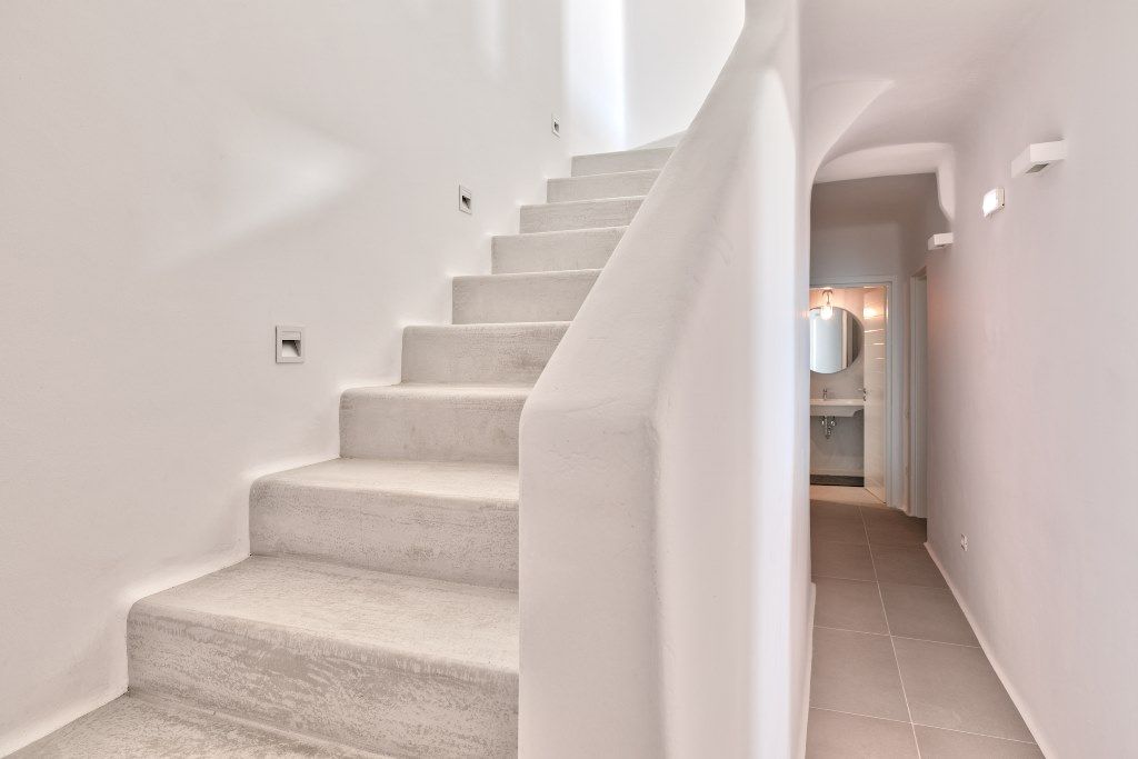 An interior staircase with illuminated steps leads to the lower floor, where are situated two (no view) bedrooms with double beds, bathrooms and a laundry area.
