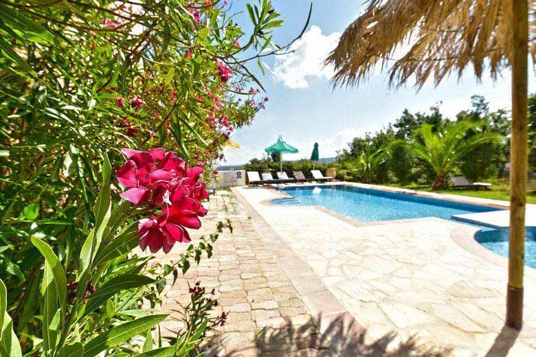 The villas’ outdoors stand out for their beautiful private terraces and balconies and have direct access to the shared pool, sunbeds and shower.