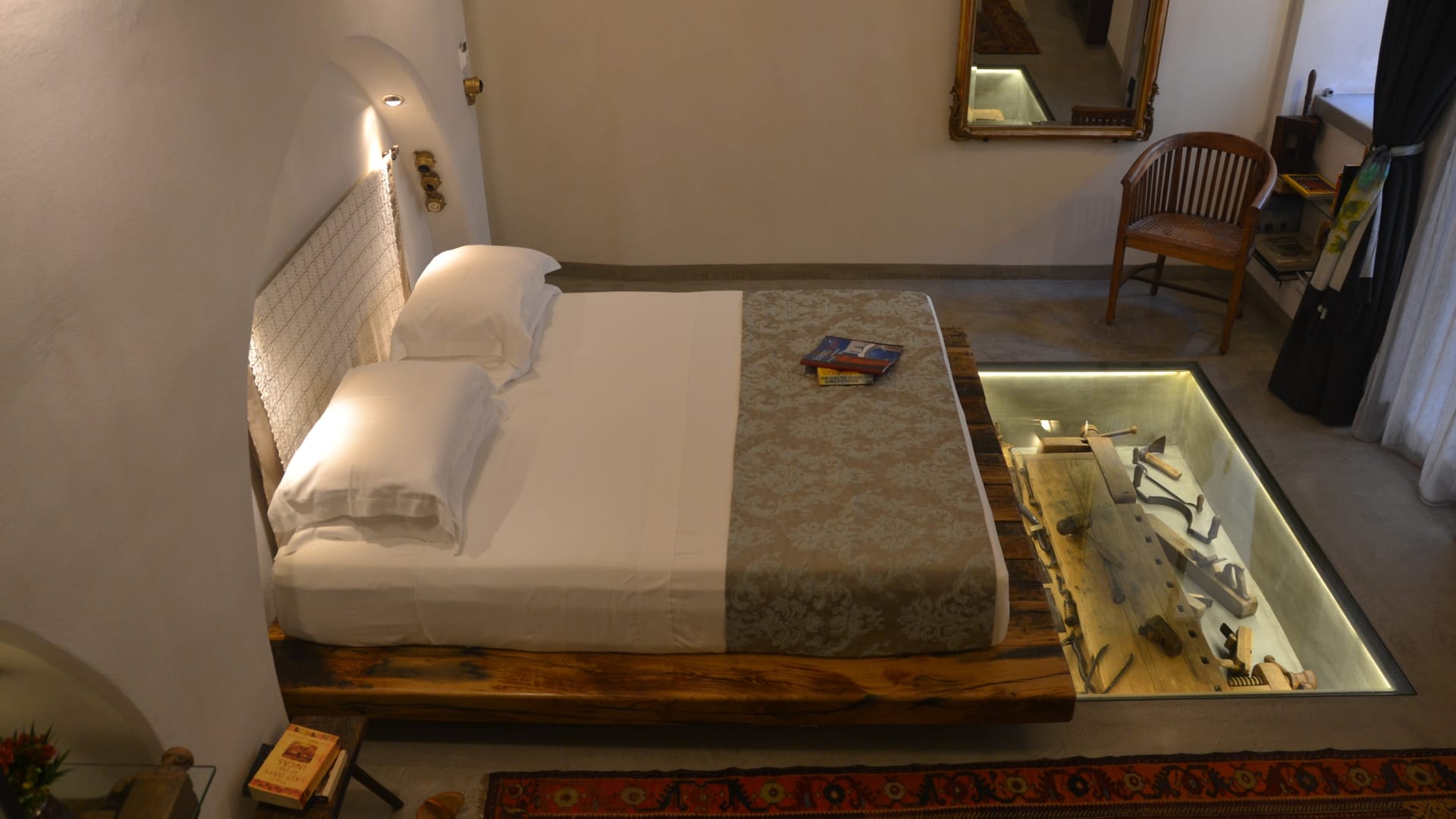 The suite’s 37 sq.m. (400 sq.f.) single-space interior is on ground level and has been decorated in harmony with the building’s interesting past.