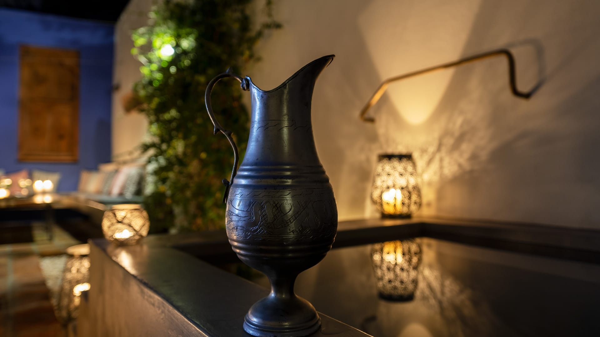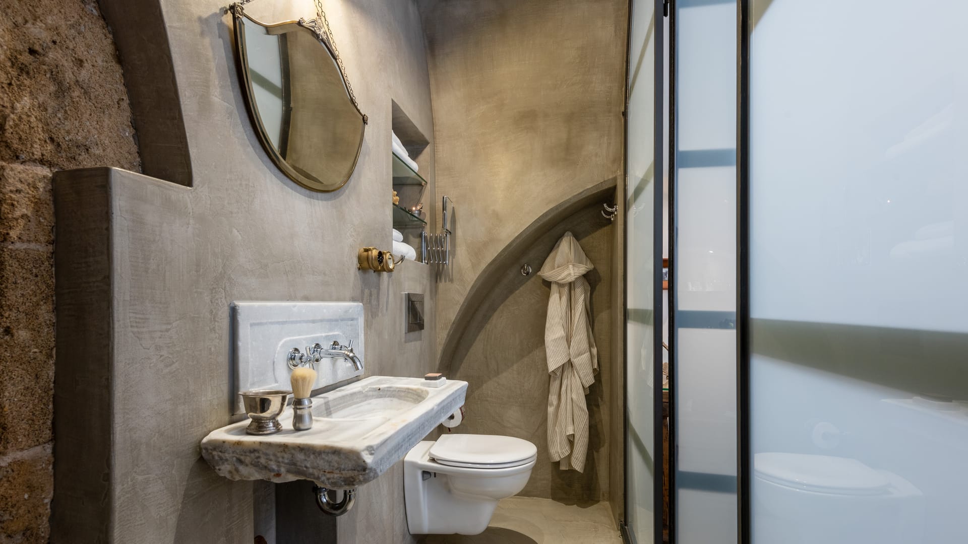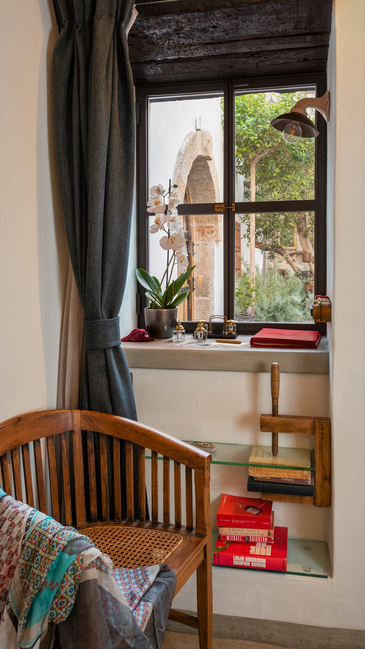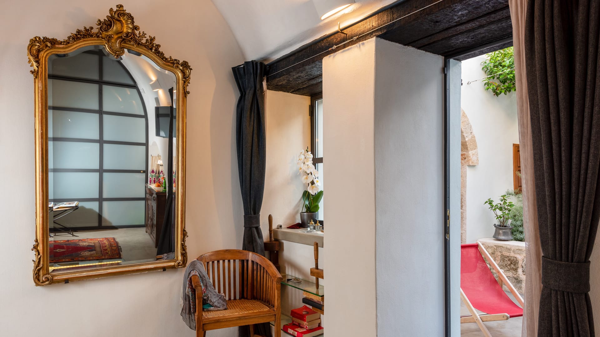 The 45 sq. m. private garden, with a beautiful plunge pool, an old olive tree, a plethora of aromatic plants and herbs, lies in the shadow of the castle’s wall.