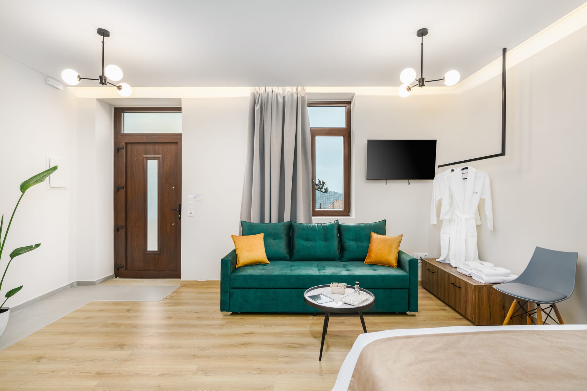 Deluxe Suite with Mountain View is featured with air condition, a well-equipped bathroom with hairdryer, bathrobes and slippers, Flat-screen TV, coffee facilities and a kitchenette with a fridge.