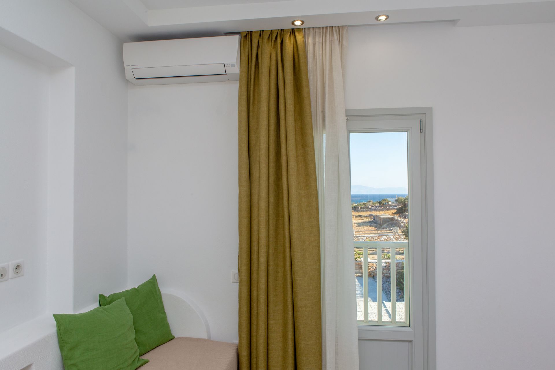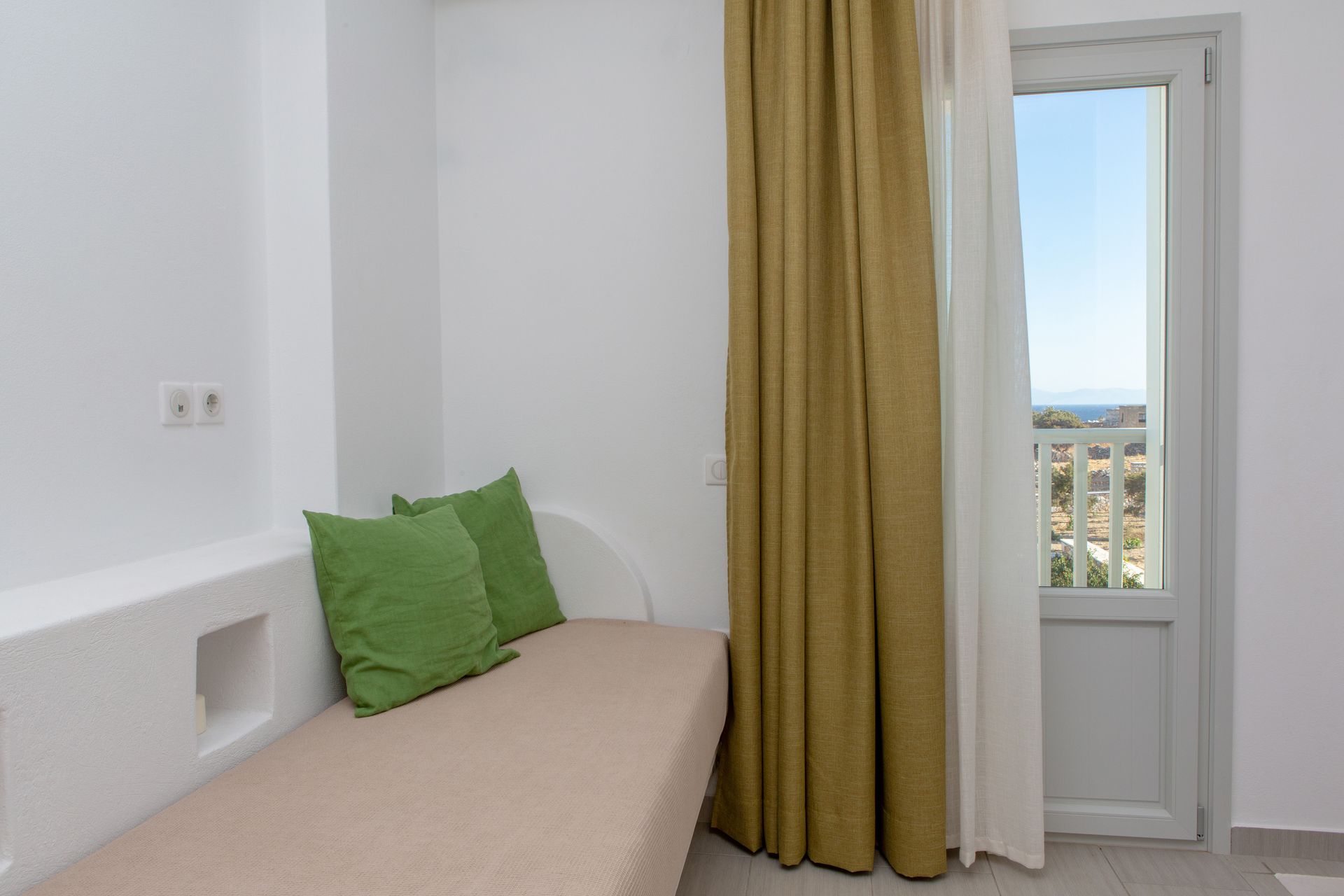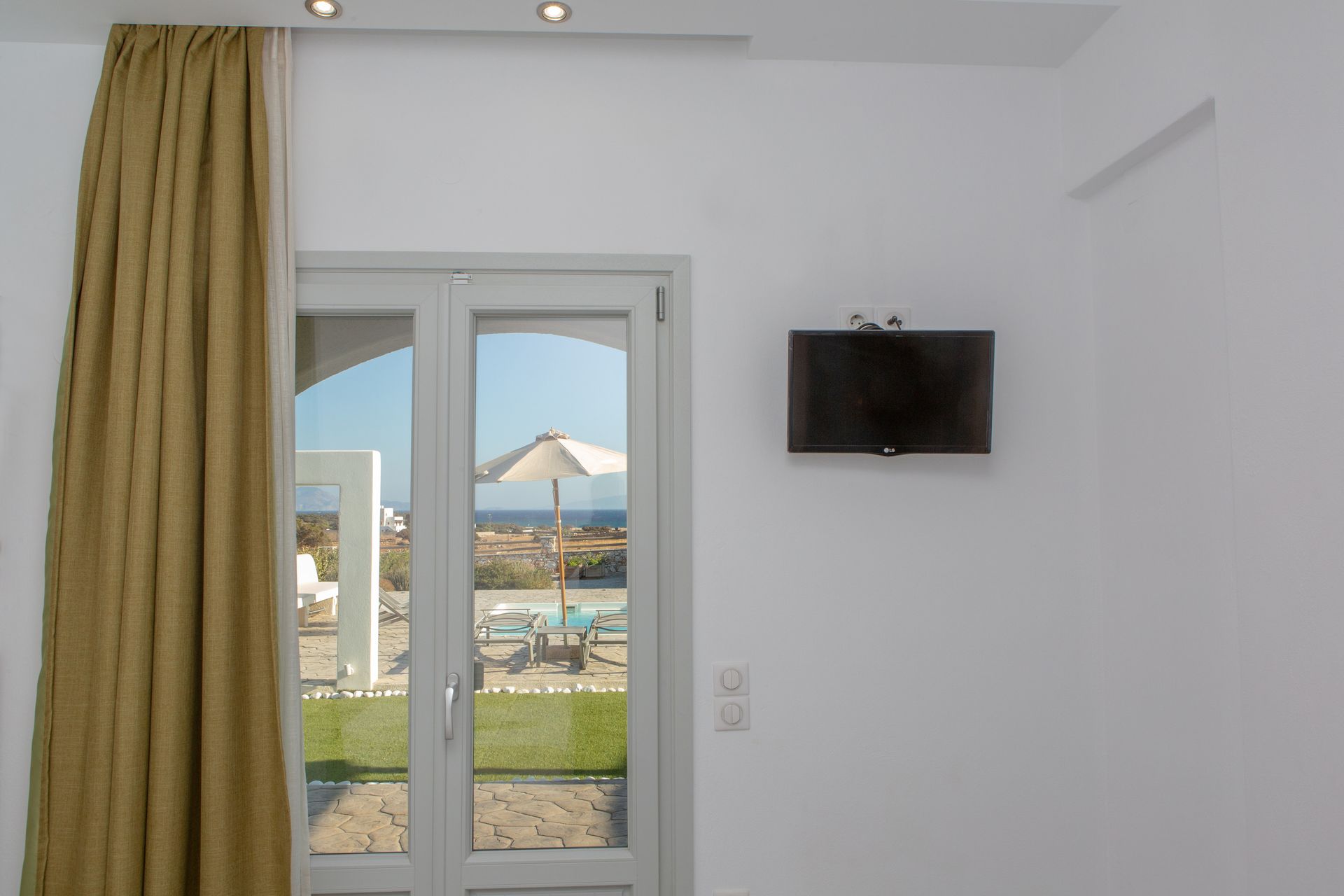 The Three Bedroom Villa Private Pool & Sea View (Yellow), the largest of the five Sun and Moon Villas, offers guests three bedrooms and two bathrooms in a two-floor building, and can accommodate up to 6 persons. An interior and exterior staircase provide access to both floors. There is a private entrance to the second floor.