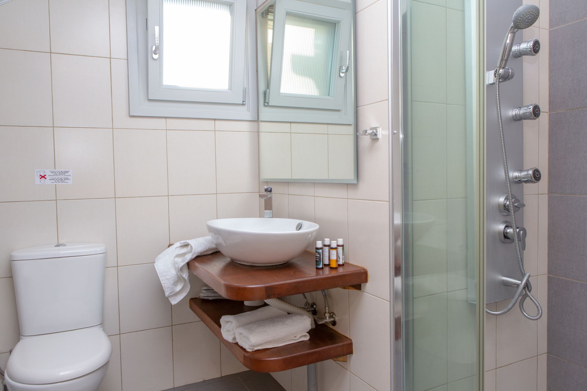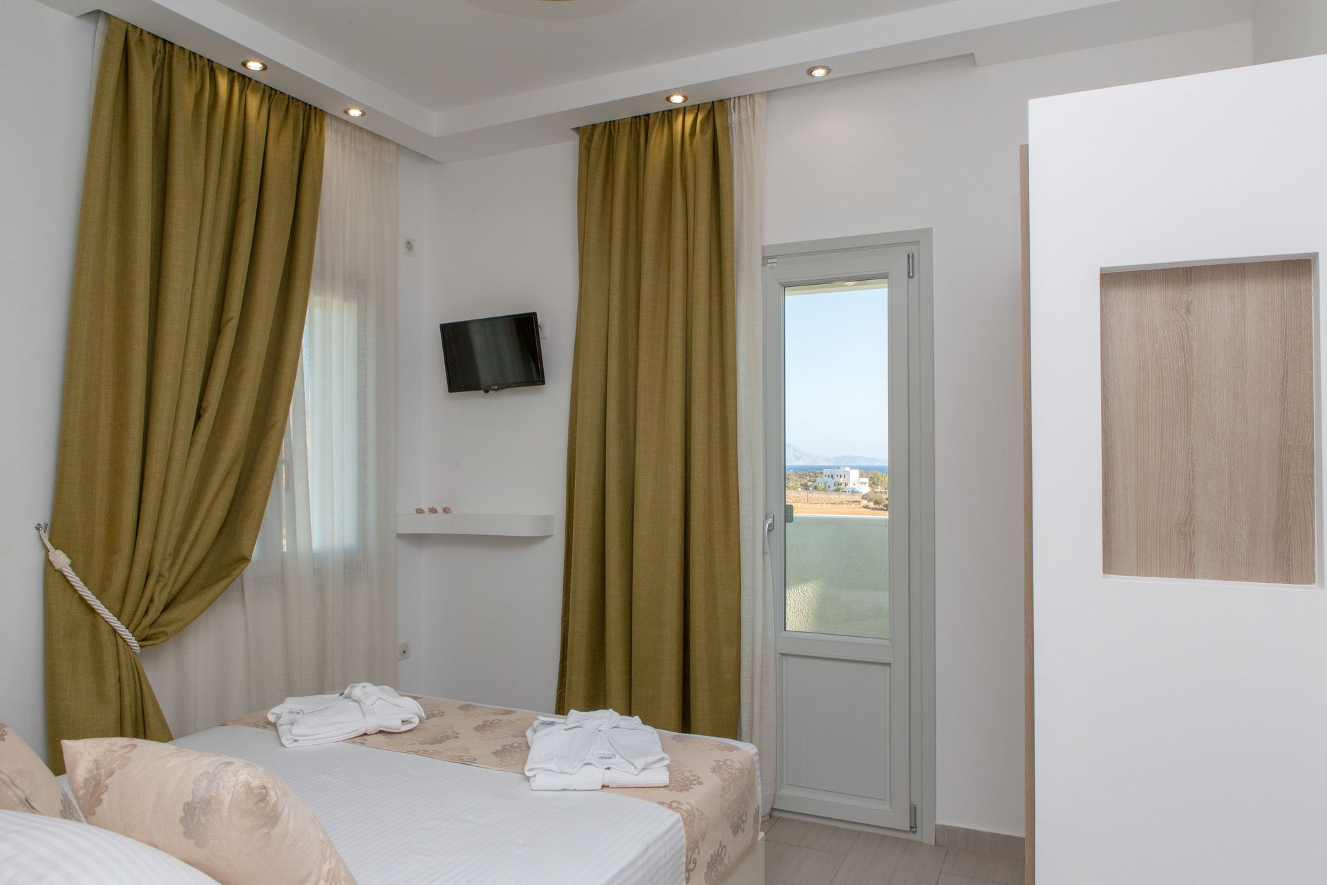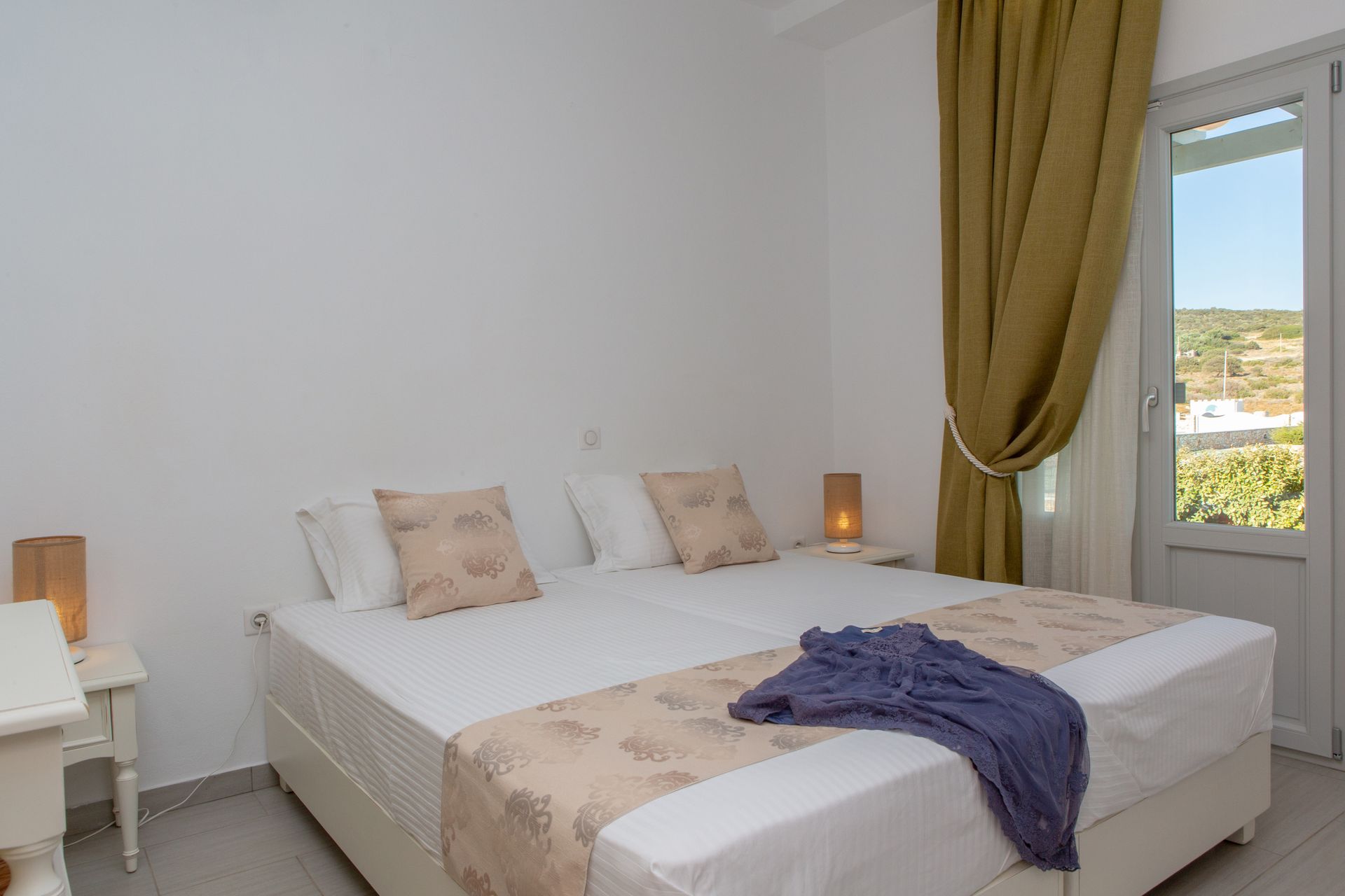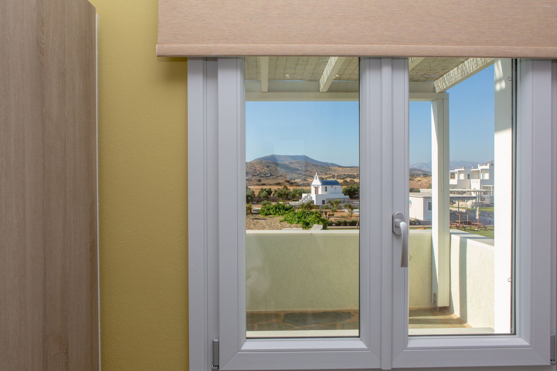 The Three Bedroom Villa Private Pool & Sea View (Yellow), the largest of the five Sun and Moon Villas, offers guests three bedrooms and two bathrooms in a two-floor building, and can accommodate up to 6 persons. An interior and exterior staircase provide access to both floors. There is a private entrance to the second floor.