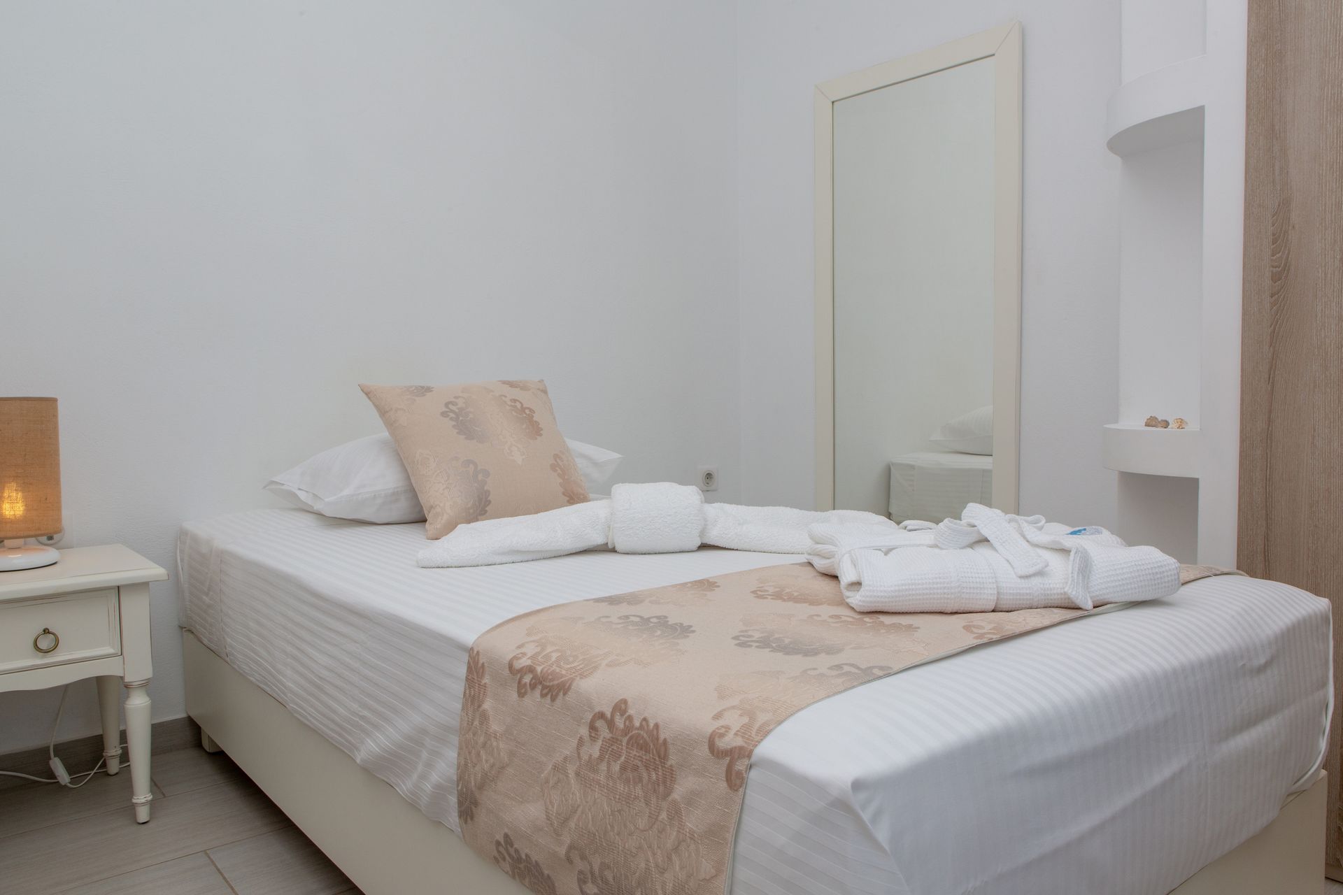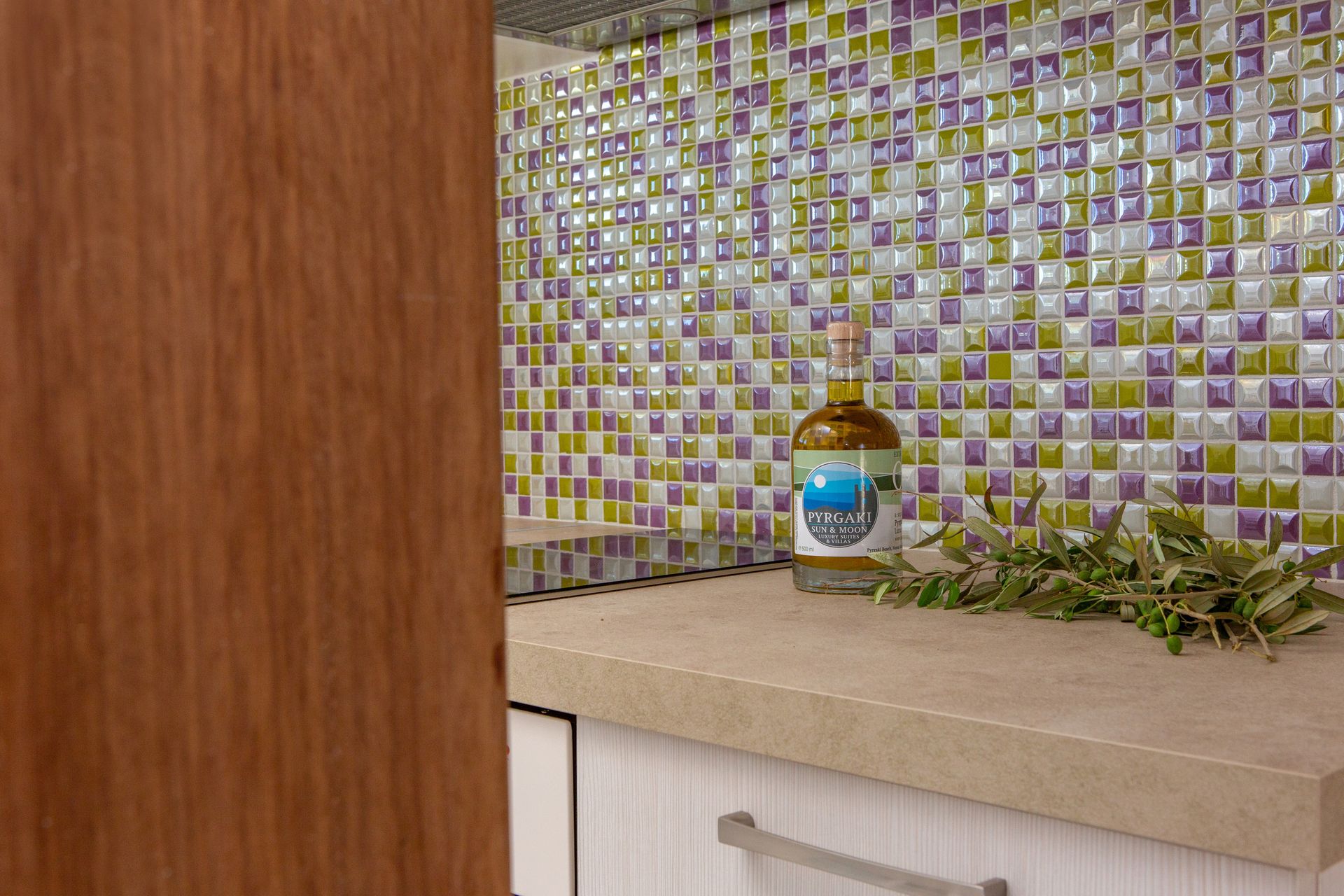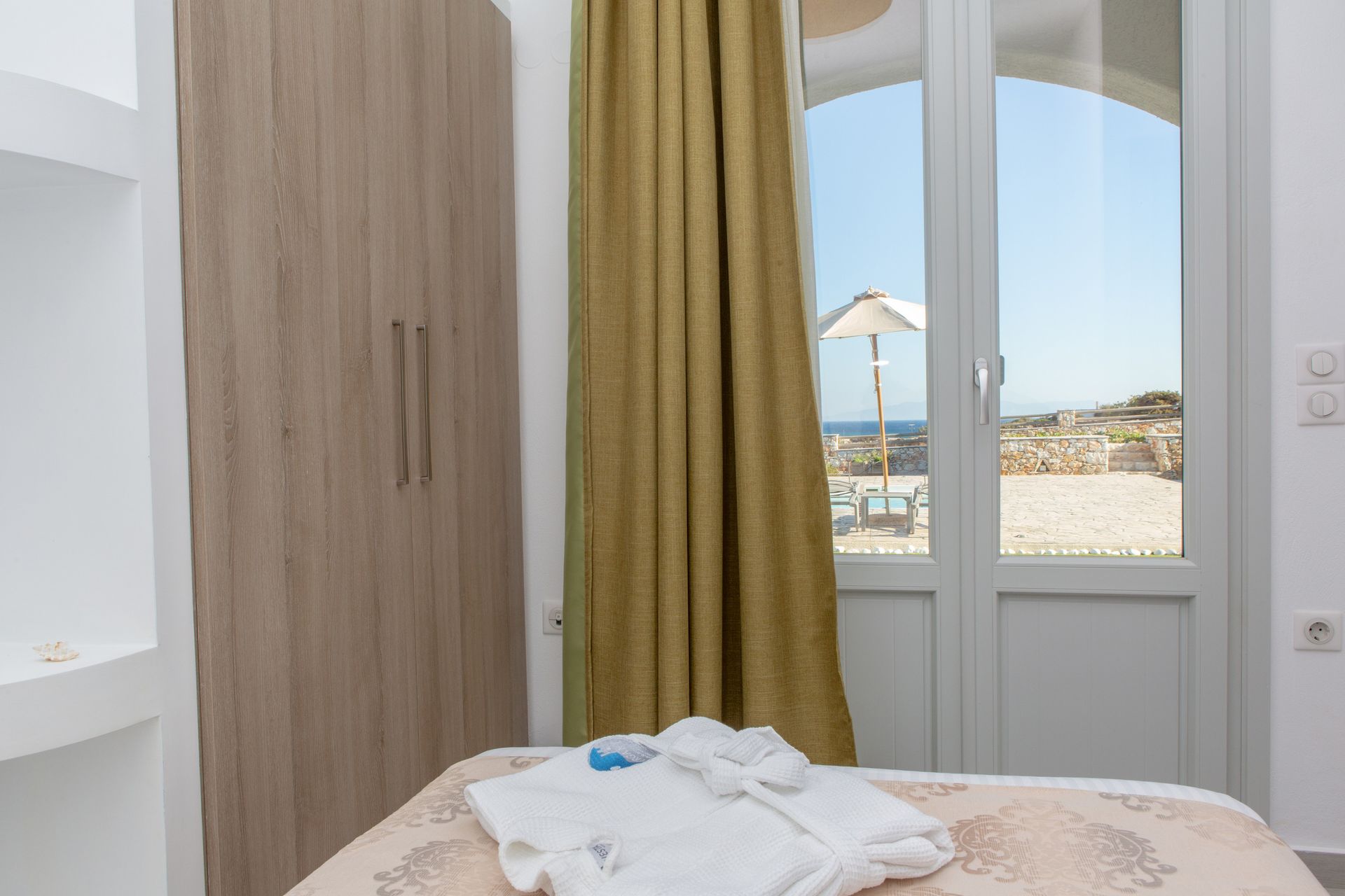 Named after the “yellow” full moon of June — also known as “honey moon” for its sweet amber glow — the Three Bedroom Villa Private Pool & Sea View (Yellow)'s interior has golden accents that blend delicately with the space’s natural tones, providing a touch of modernism and vitality to the calm surroundings.