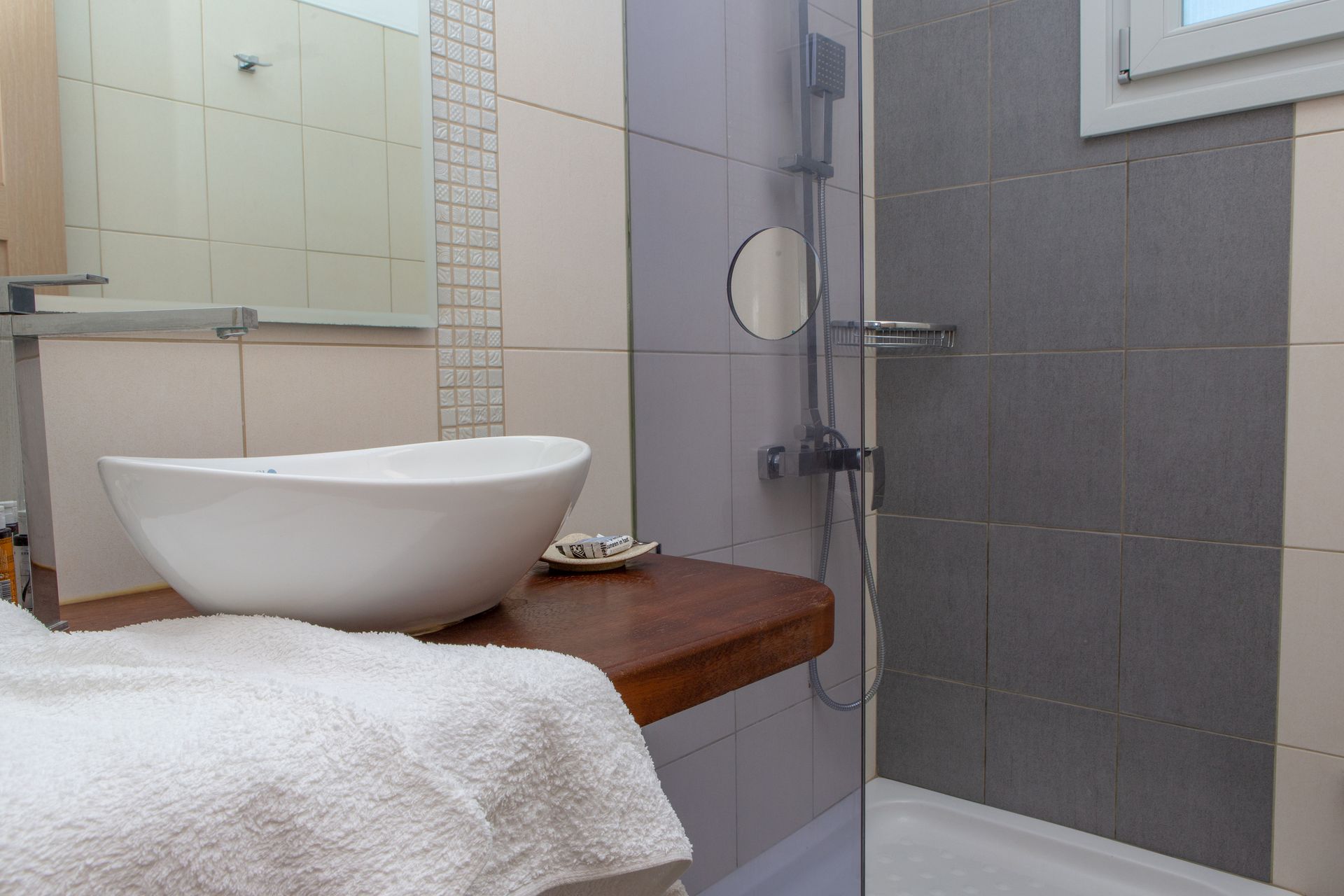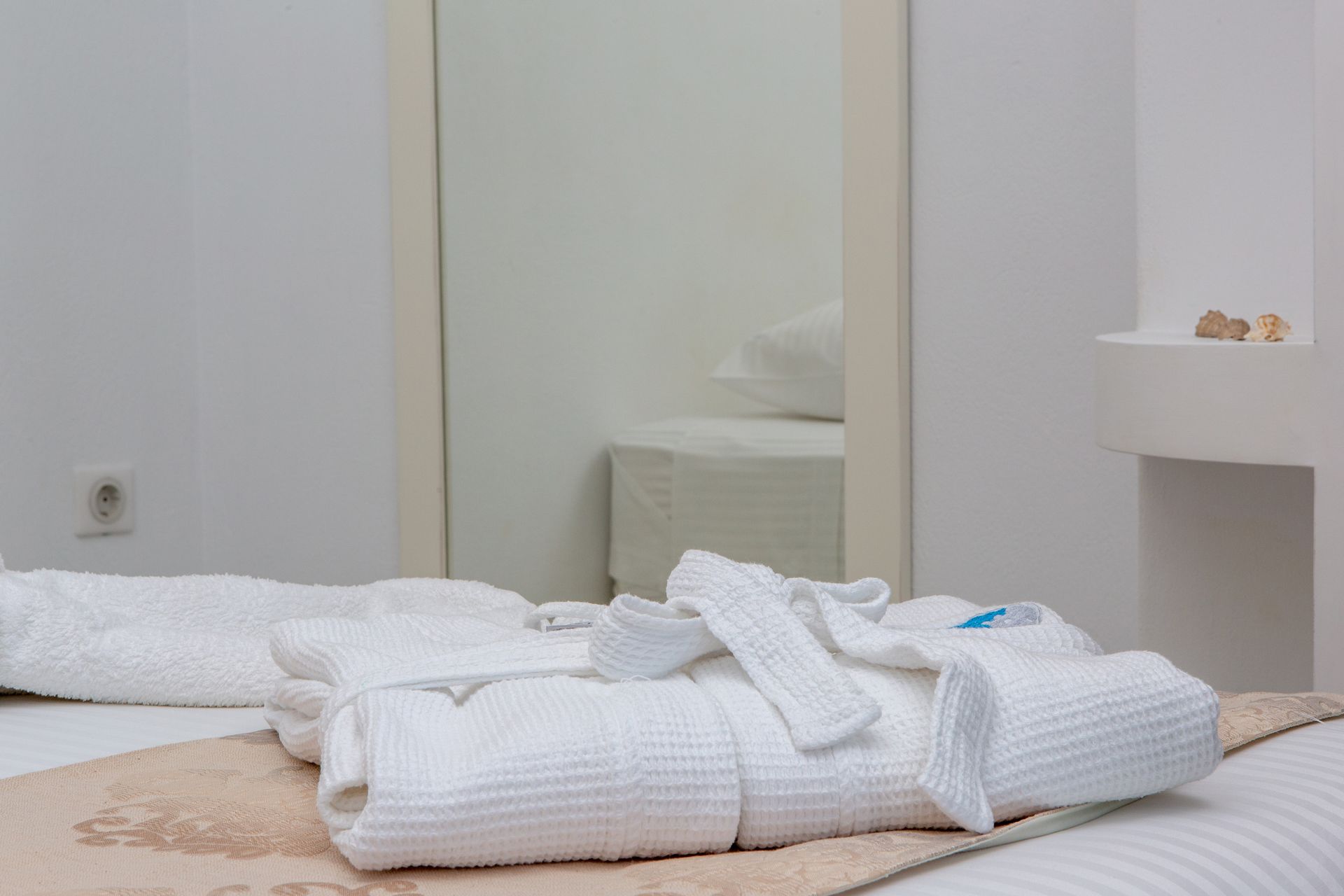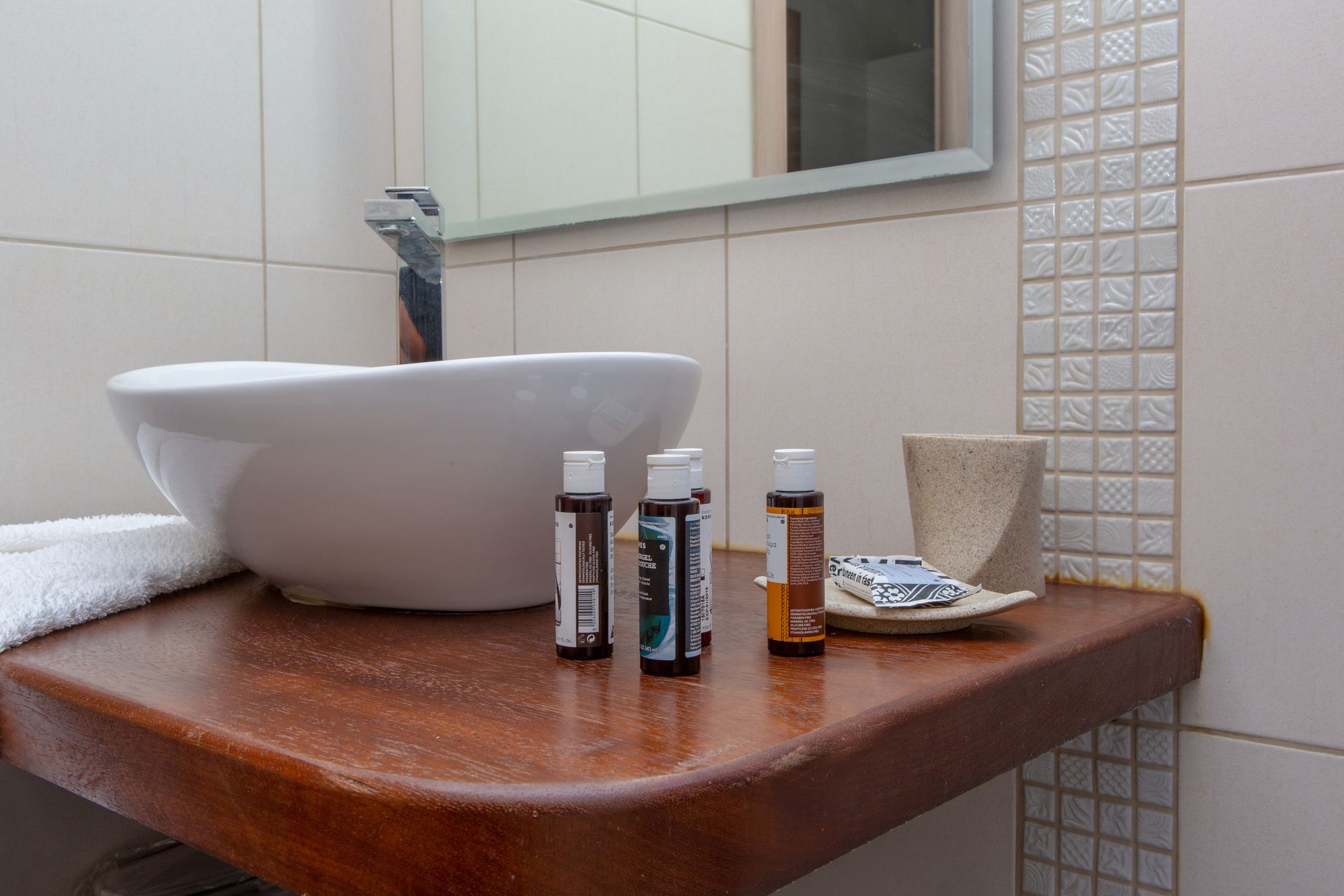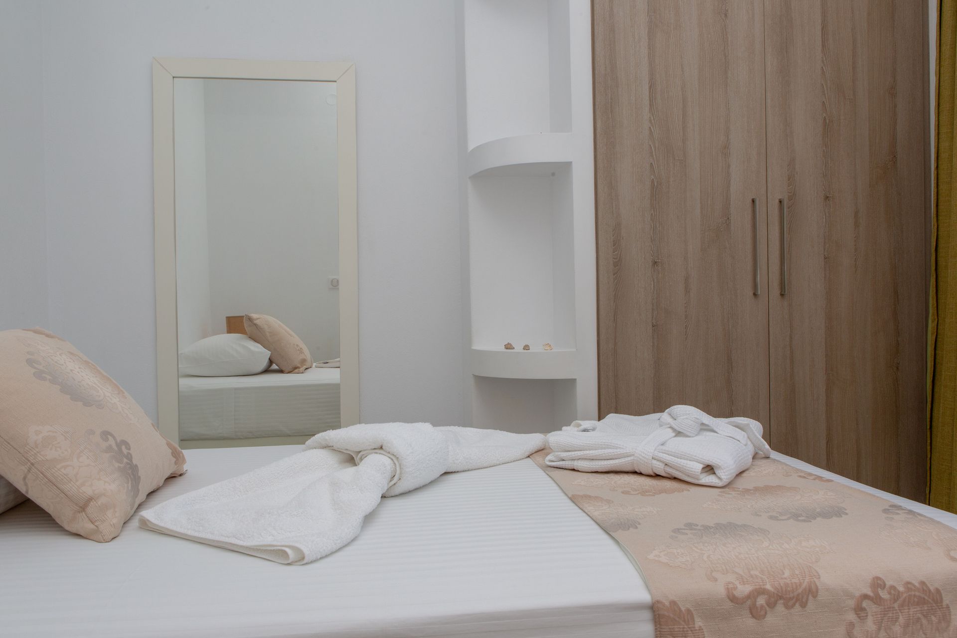 Named after the “yellow” full moon of June — also known as “honey moon” for its sweet amber glow — the Three Bedroom Villa Private Pool & Sea View (Yellow)'s interior has golden accents that blend delicately with the space’s natural tones, providing a touch of modernism and vitality to the calm surroundings.