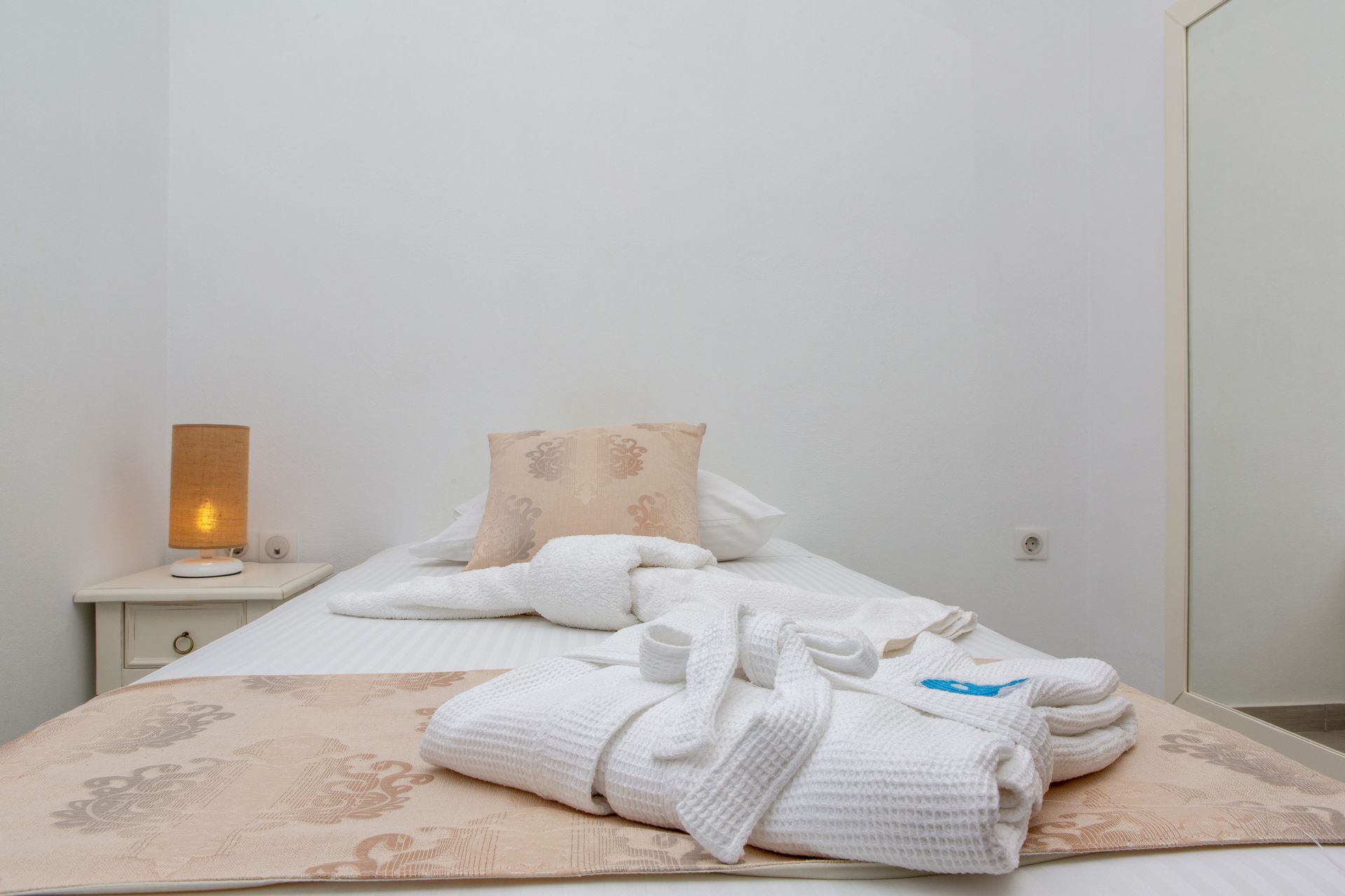 The ground floor features two bedrooms (one single and one twin); a living area; bathroom with hydromassage shower and washing machine; and a fully-equipped kitchen.