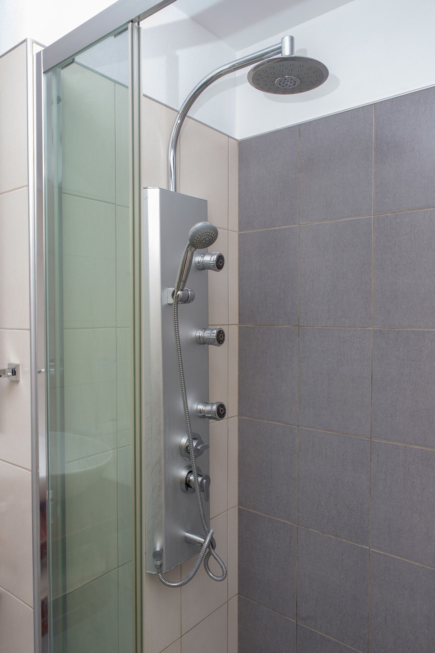 This villa’s multi-level balconies, verandas and outdoor spaces — furnished with rattan tables and chairs as well as a separate shaded dining area — provide added privacy. The outdoor private pool is surrounded by a natural stone patio and lounge area with chaise lounges and large canvas umbrellas in earthy tones. The discreetly placed outdoor shower allows guests to cool off and refresh after a swim, while marveling at the natural surroundings.