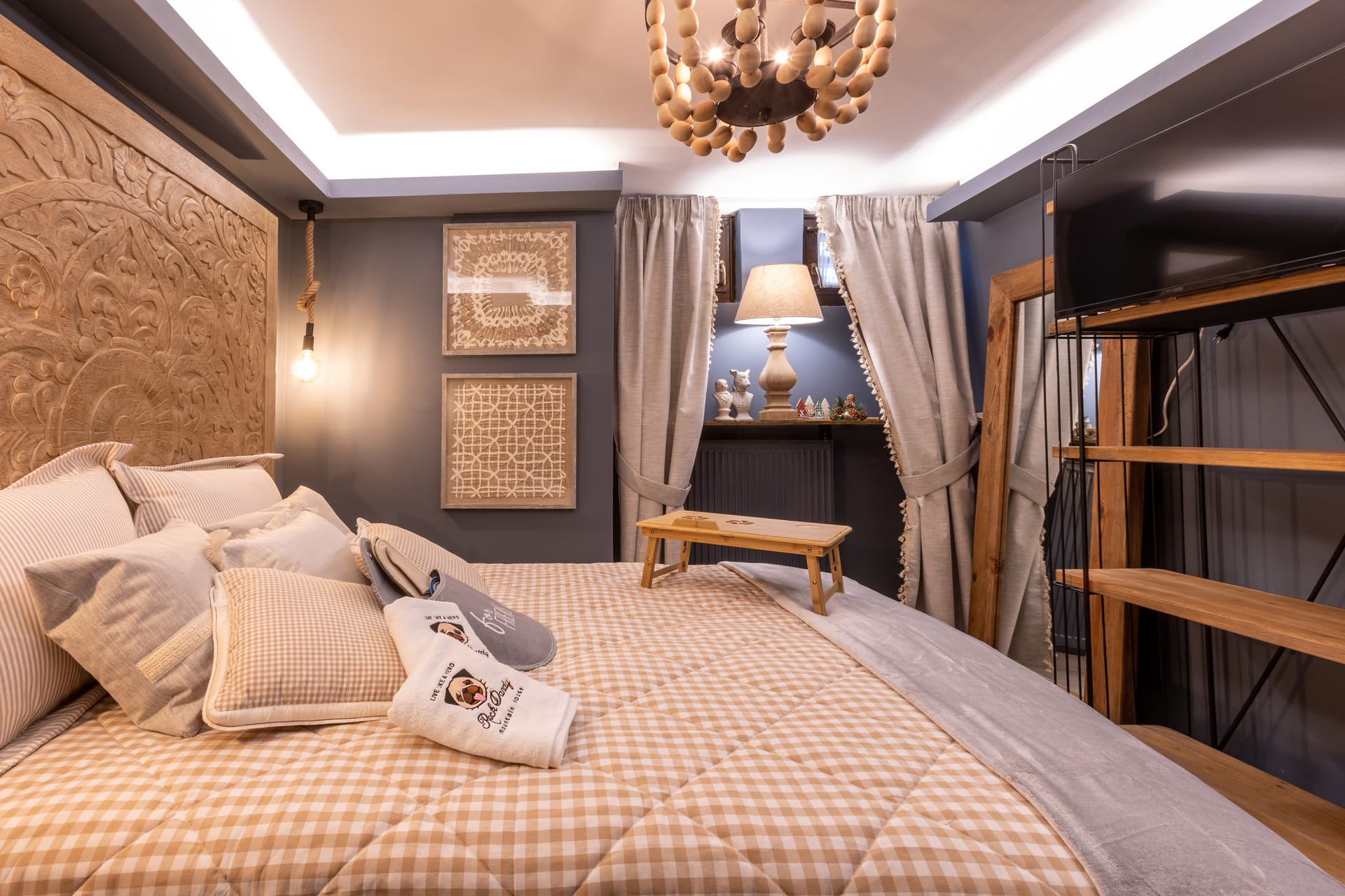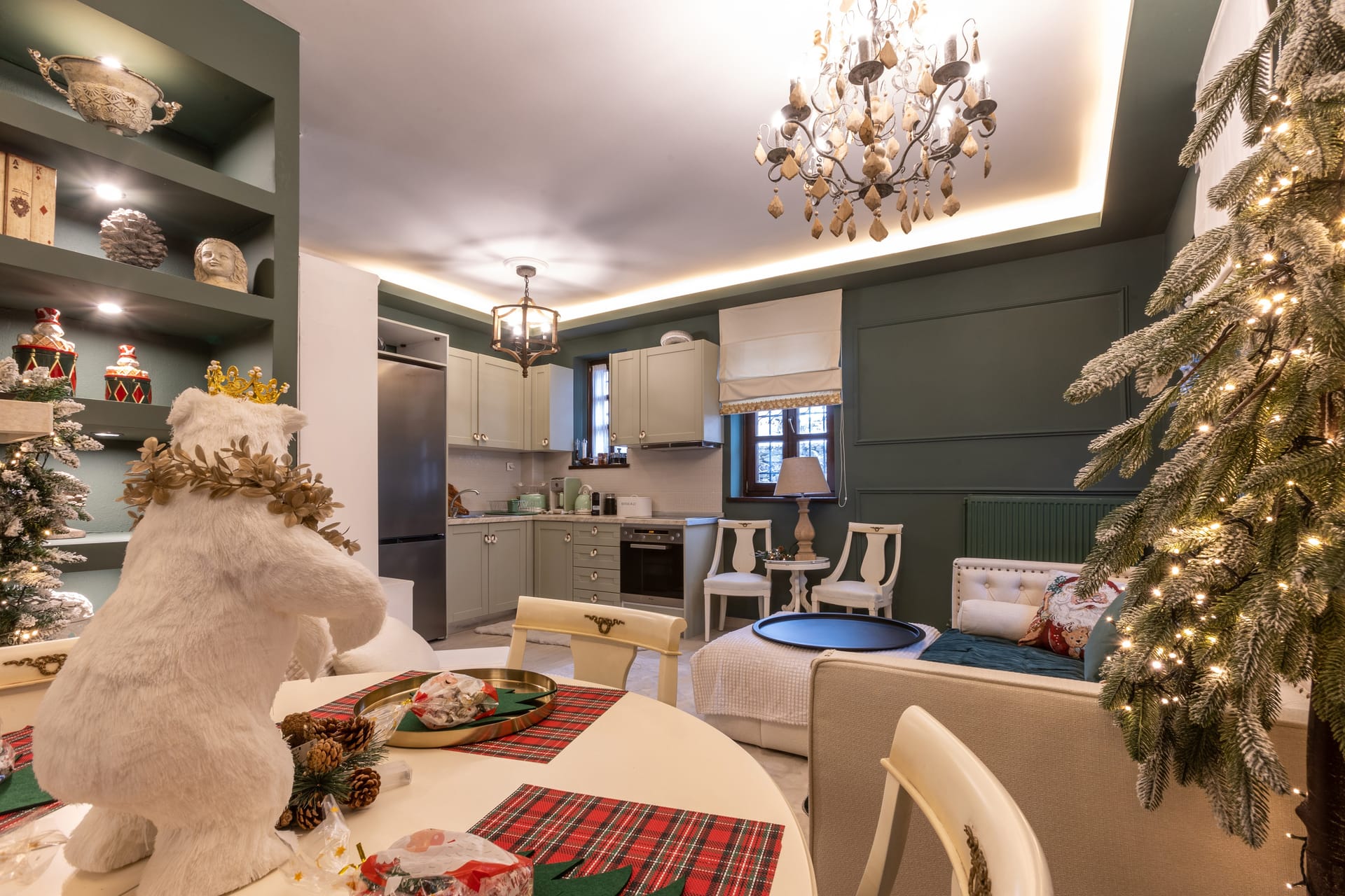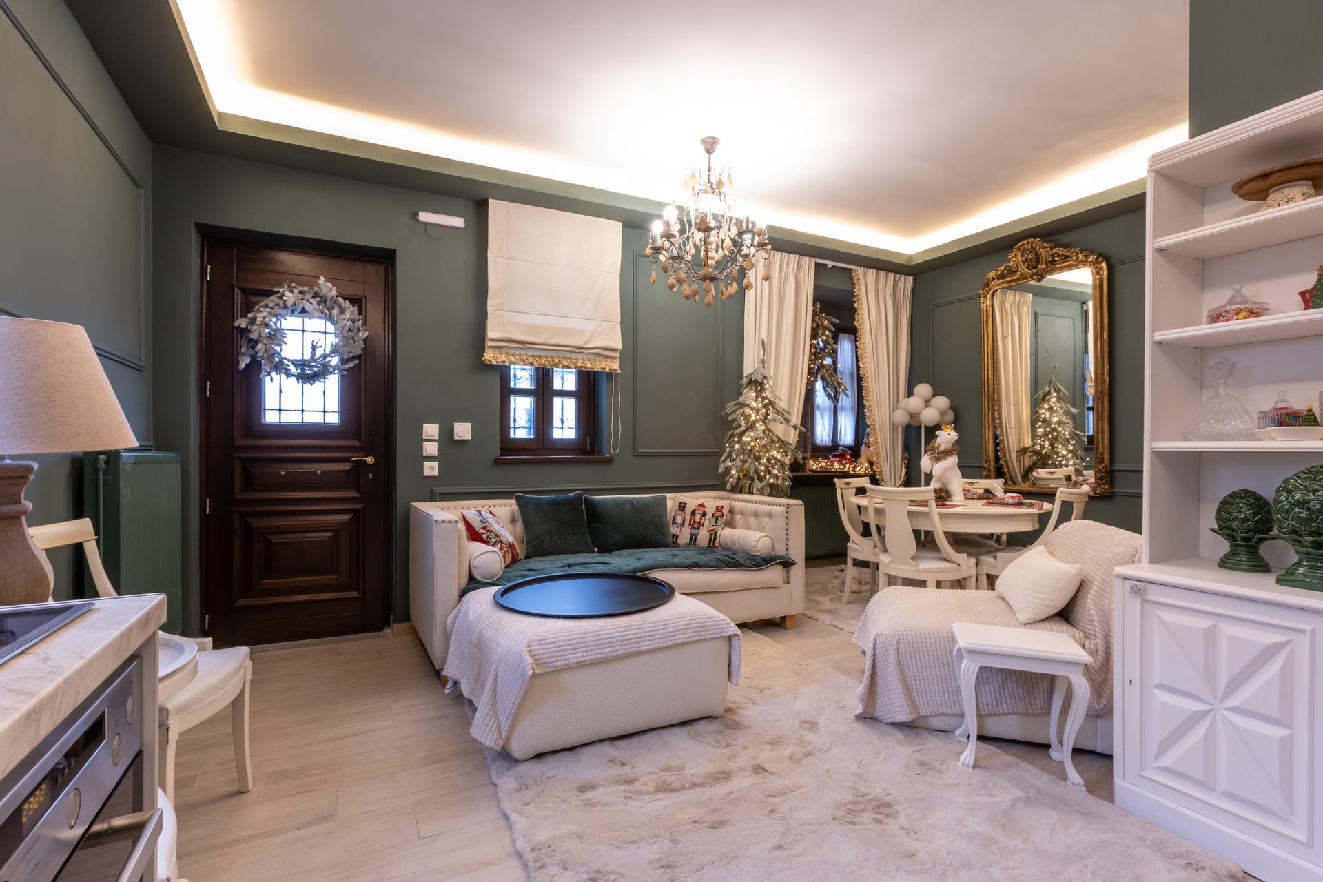 You’ll be greeted by a few gentle “guardians” - our soft bears at the windows - a warm nod to the nearby Arcturos Bear Sanctuary and the wild beauty surrounding Nymfaio. The chalet accommodates up to seven guests, with interiors crafted for comfort, style, and a warm, inviting atmosphere.