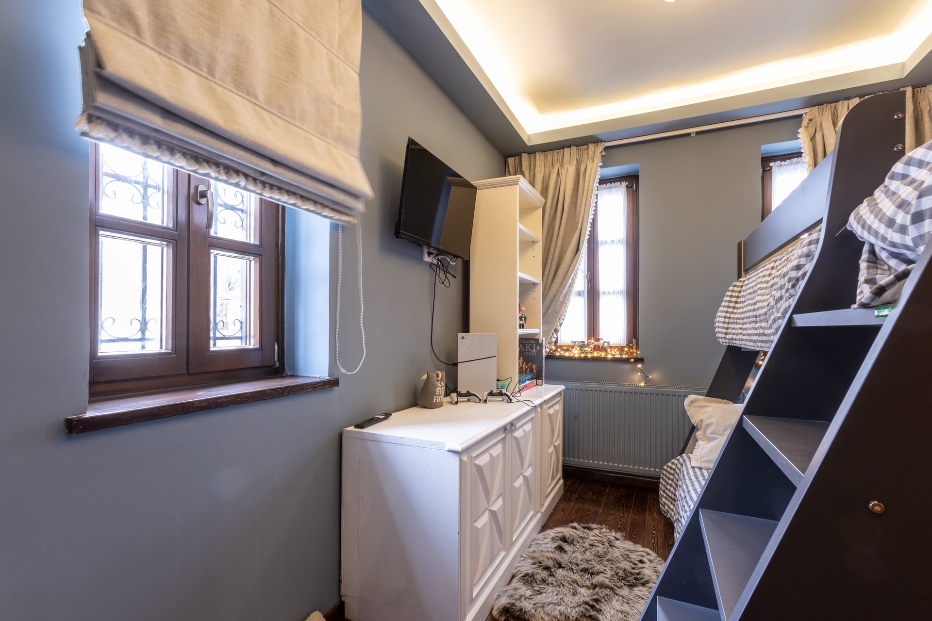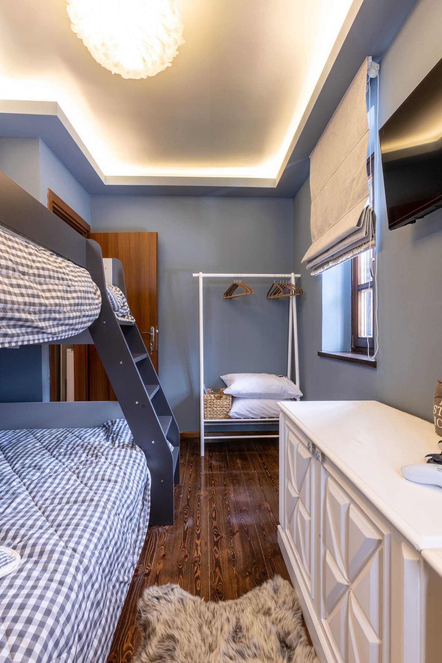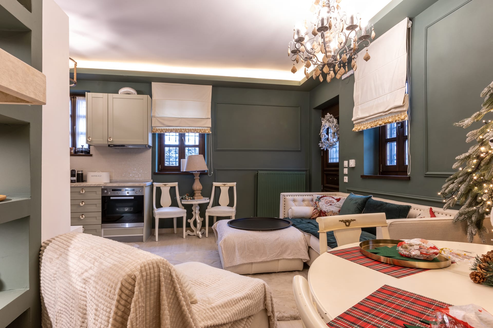 You’ll be greeted by a few gentle “guardians” - our soft bears at the windows - a warm nod to the nearby Arcturos Bear Sanctuary and the wild beauty surrounding Nymfaio. The chalet accommodates up to seven guests, with interiors crafted for comfort, style, and a warm, inviting atmosphere.