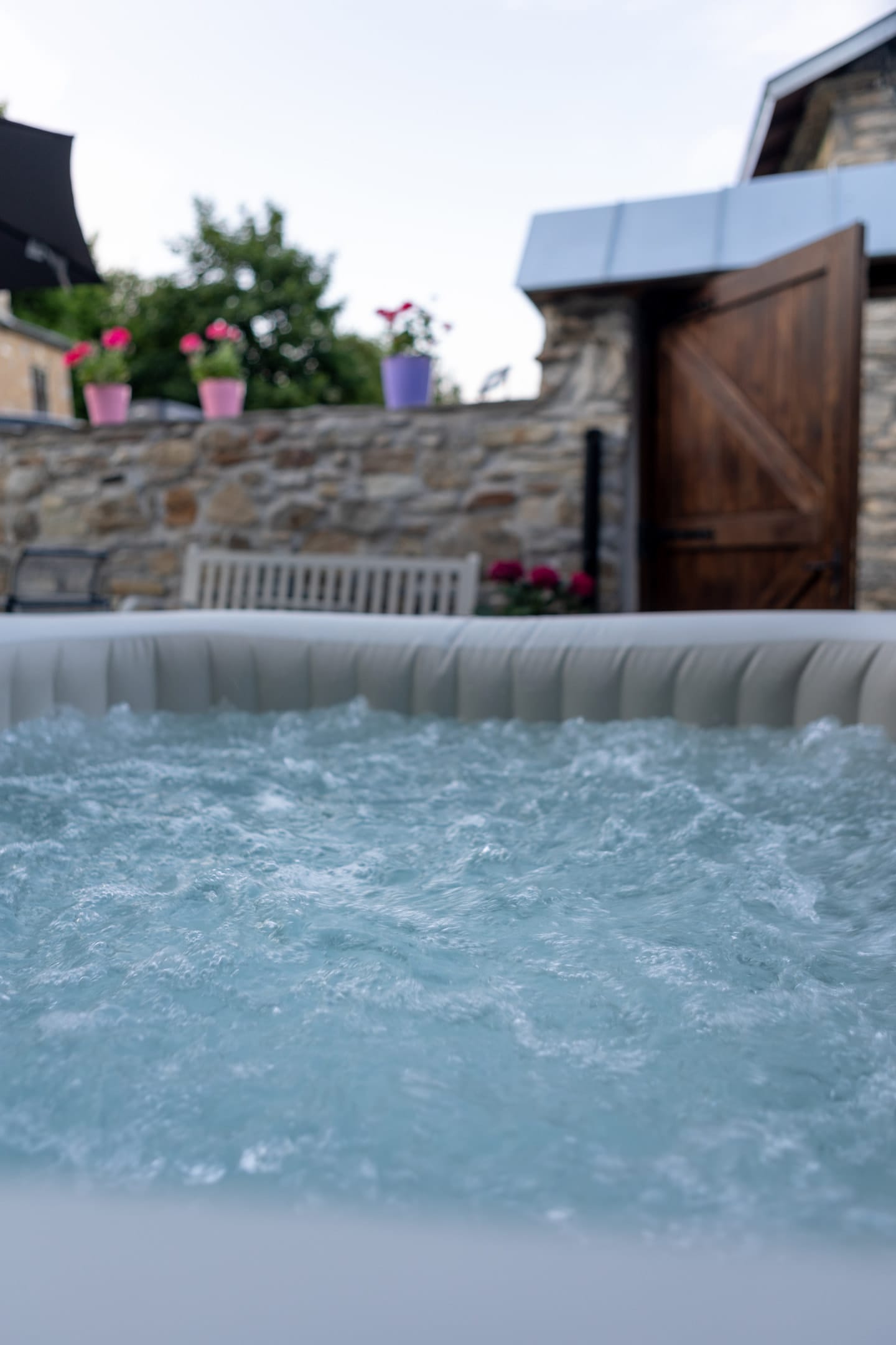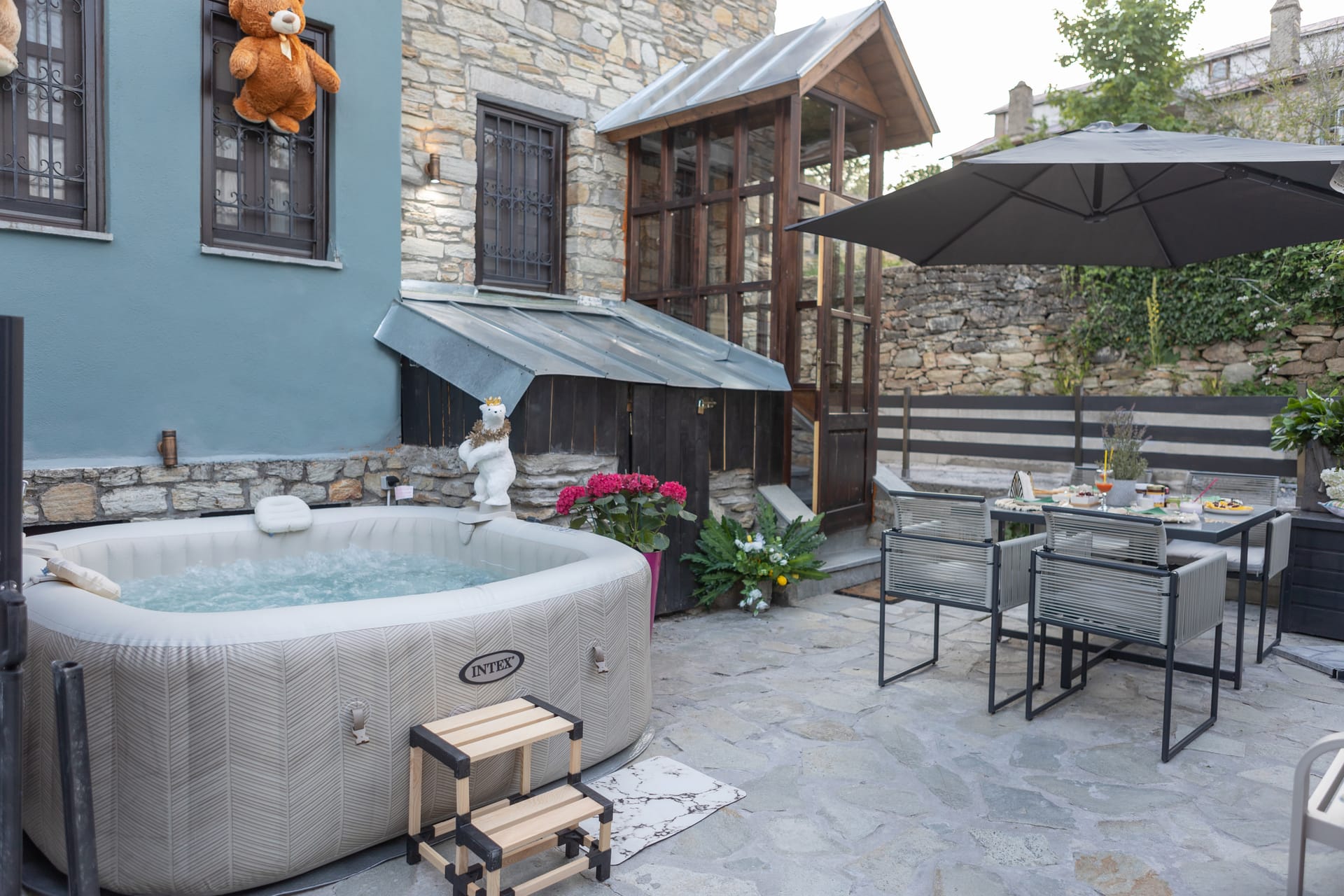 Step outside to enjoy the eco-jacuzzi in the courtyard (May–September, optional €25/day for heated water).