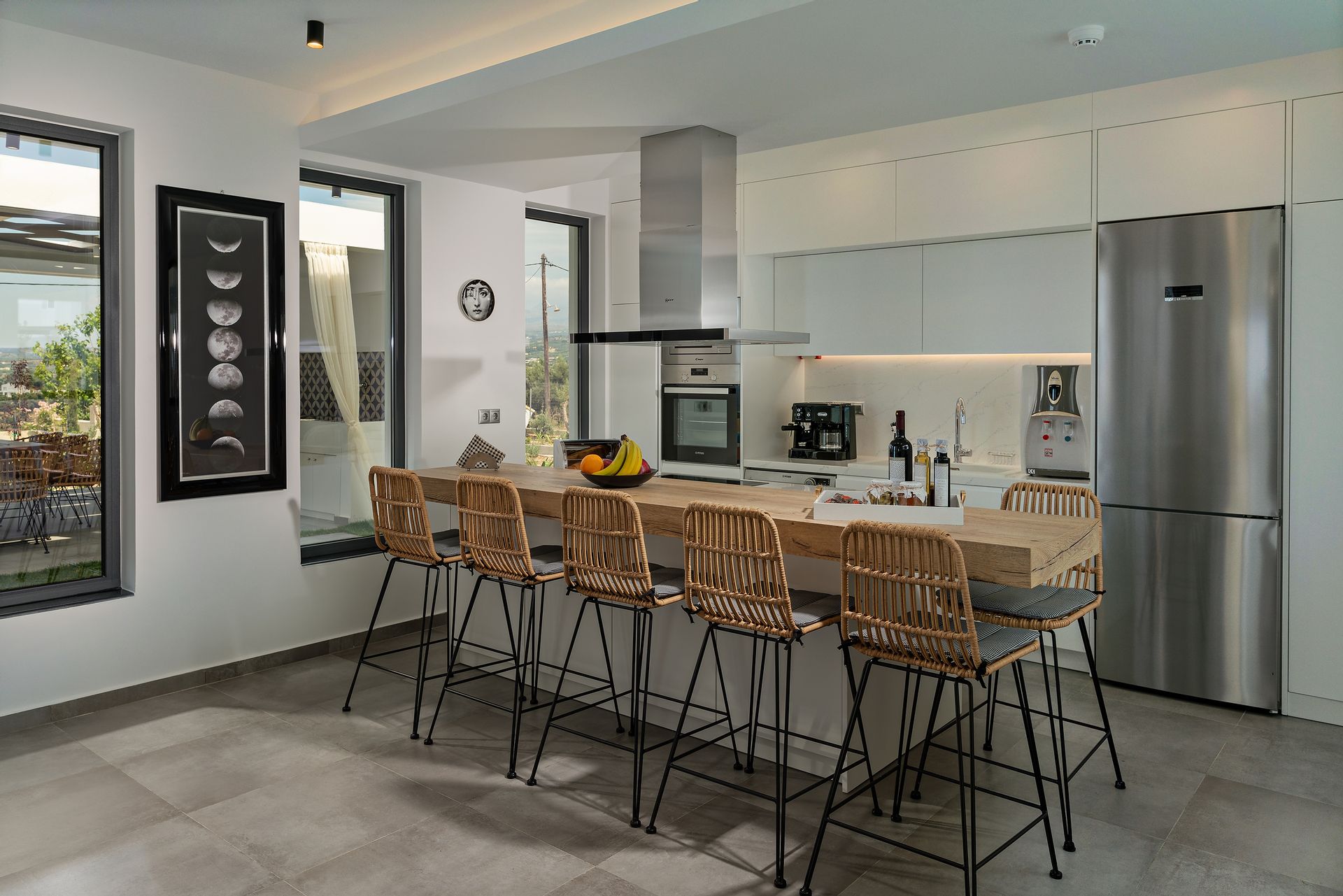 Within a 4 acre, fully fenced, plot of land, 8km away from the city of Rethymno and just 2km away from the tourist resort and the Blue Flag awarded beach of Adelianos Kampos, lies the 240 m2, newly constructed residence, which captures your attention with its modern architecture, the lavish interior and outdoor design and its superior amenities, while offering a breathtaking and unobstructing 360 view of the Aegean Sea and the Cretan mountains and valleys.