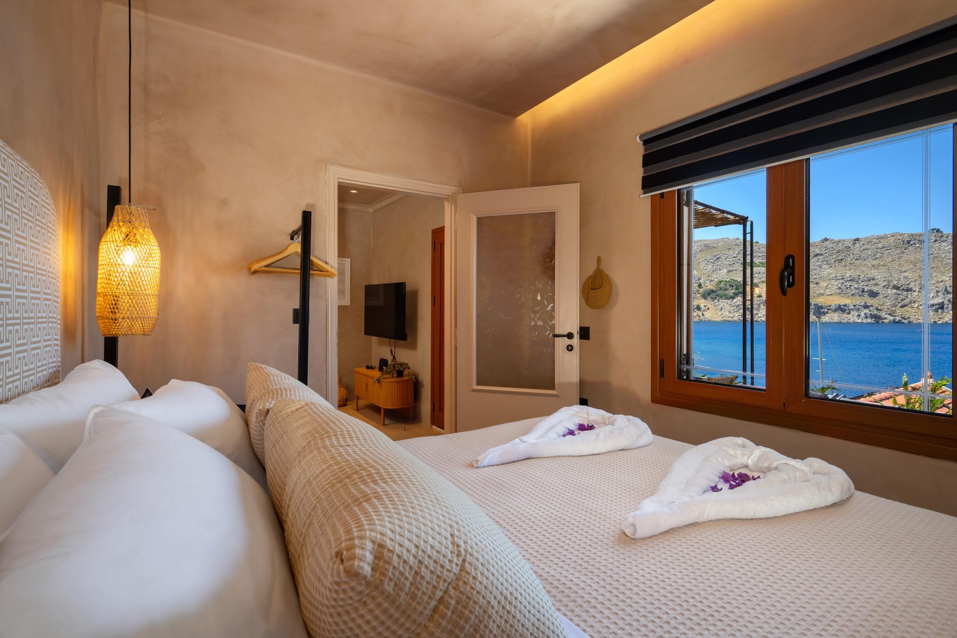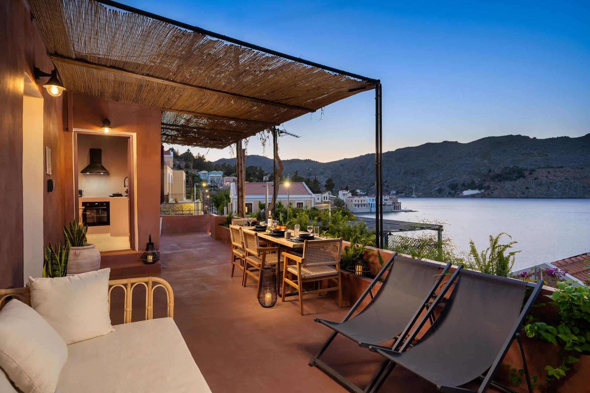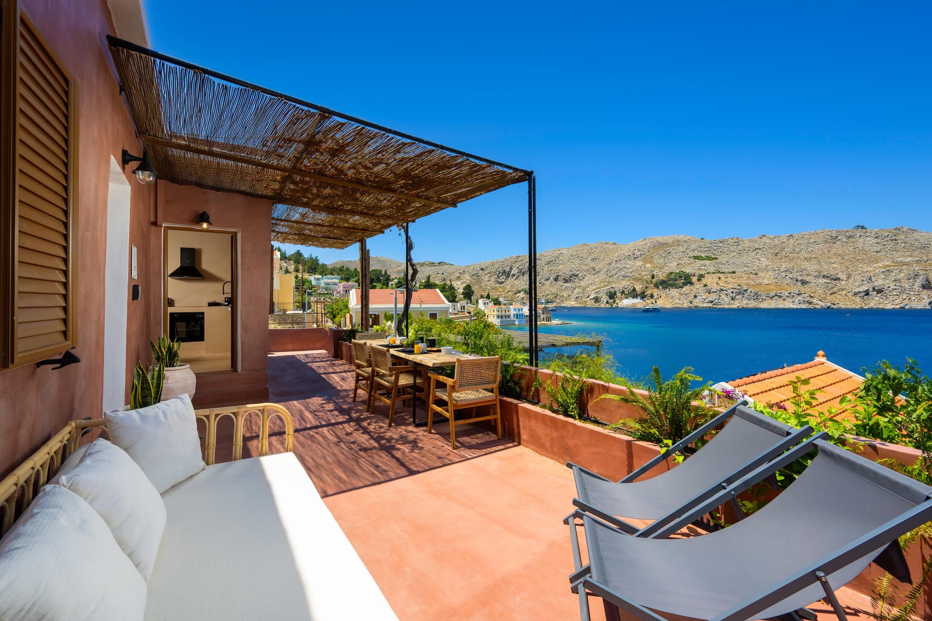 γama Luxury Living in Symi offers elegant accommodation for up to 5 guests, featuring stunning sea views. Perfectly blending comfort and style, this serene retreat provides a memorable island experience. Enjoy breathtaking vistas, modern amenities, and a tranquil atmosphere—ideal for families or friends seeking a luxurious getaway in Greece.