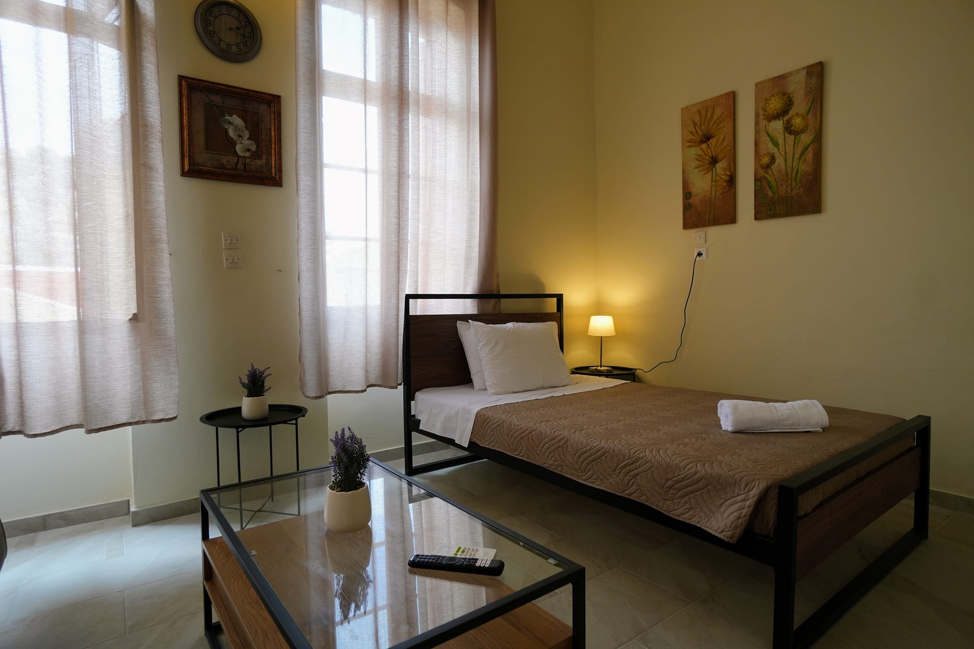 Stone Living in Symi offers two charming apartments—one on the ground floor that accomodates up to 4 guests and one on the first floor that accomodates up to 3 guests. These cozy retreats feature traditional stone architecture and warm, inviting interiors that create an authentic Greek experience.