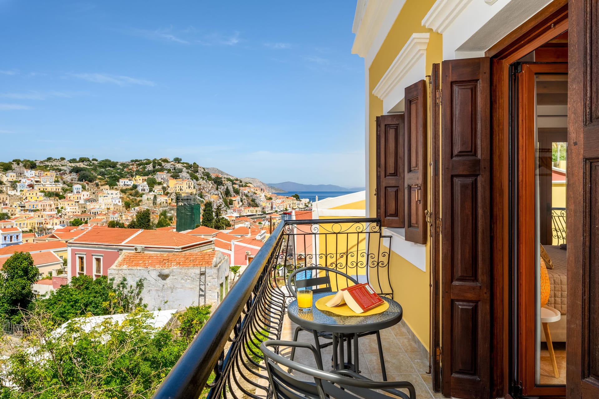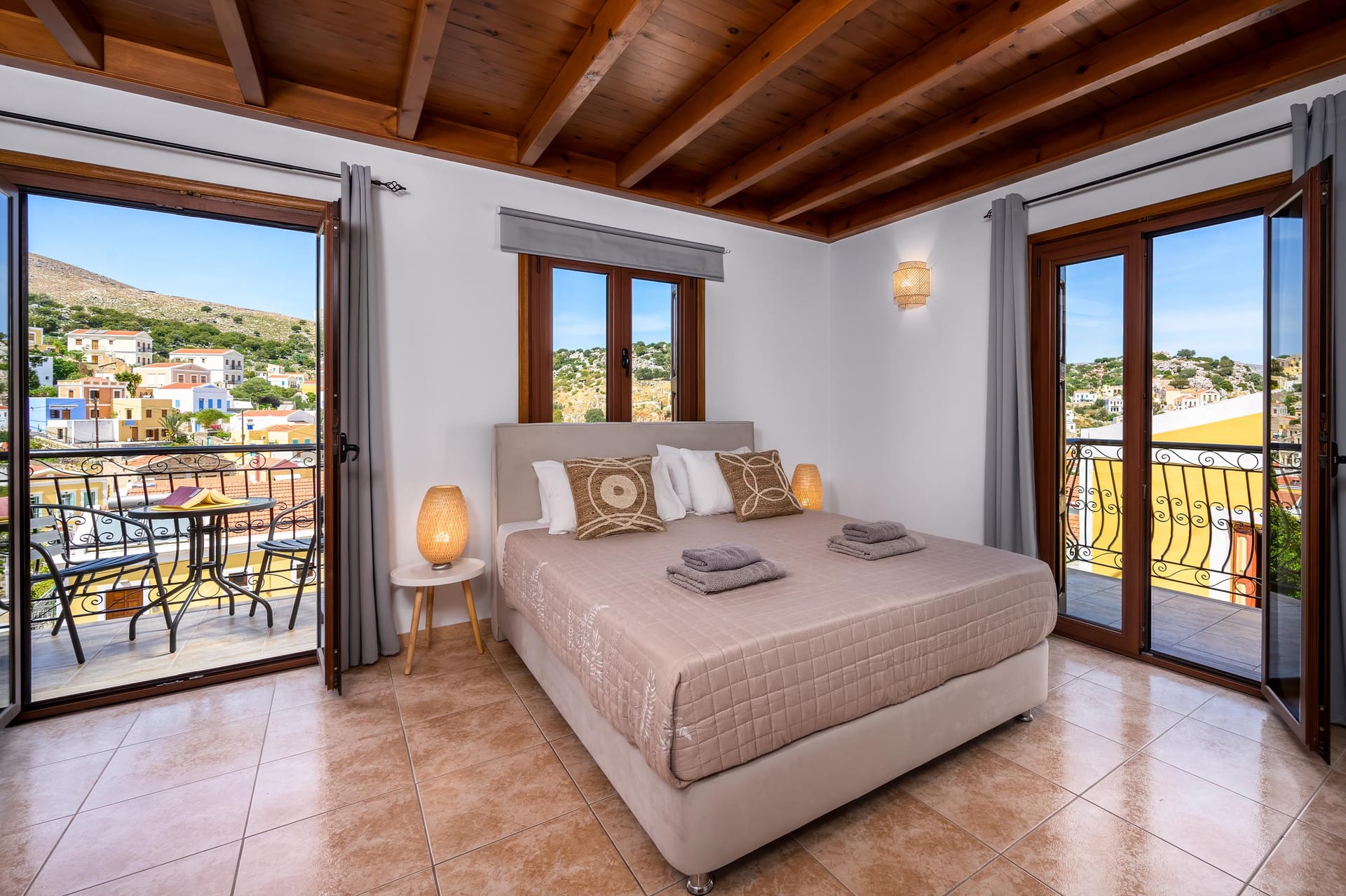 Symi is one of the most picturesque, authentic islands in Greece, known for its neoclassical houses that frame the main harbor—often regarded as one of the best views in the country. Nearby, you’ll find a free car parking area and just 15 stairs leading to the villa. On the other side of the island, you’ll find the Taxiarchis Michael of Panormitis monastery, which houses the icon of the famous miracle worker saint. Many travel to Symi to light a candle and say a prayer in hopes that the saint will grant them their wishes.