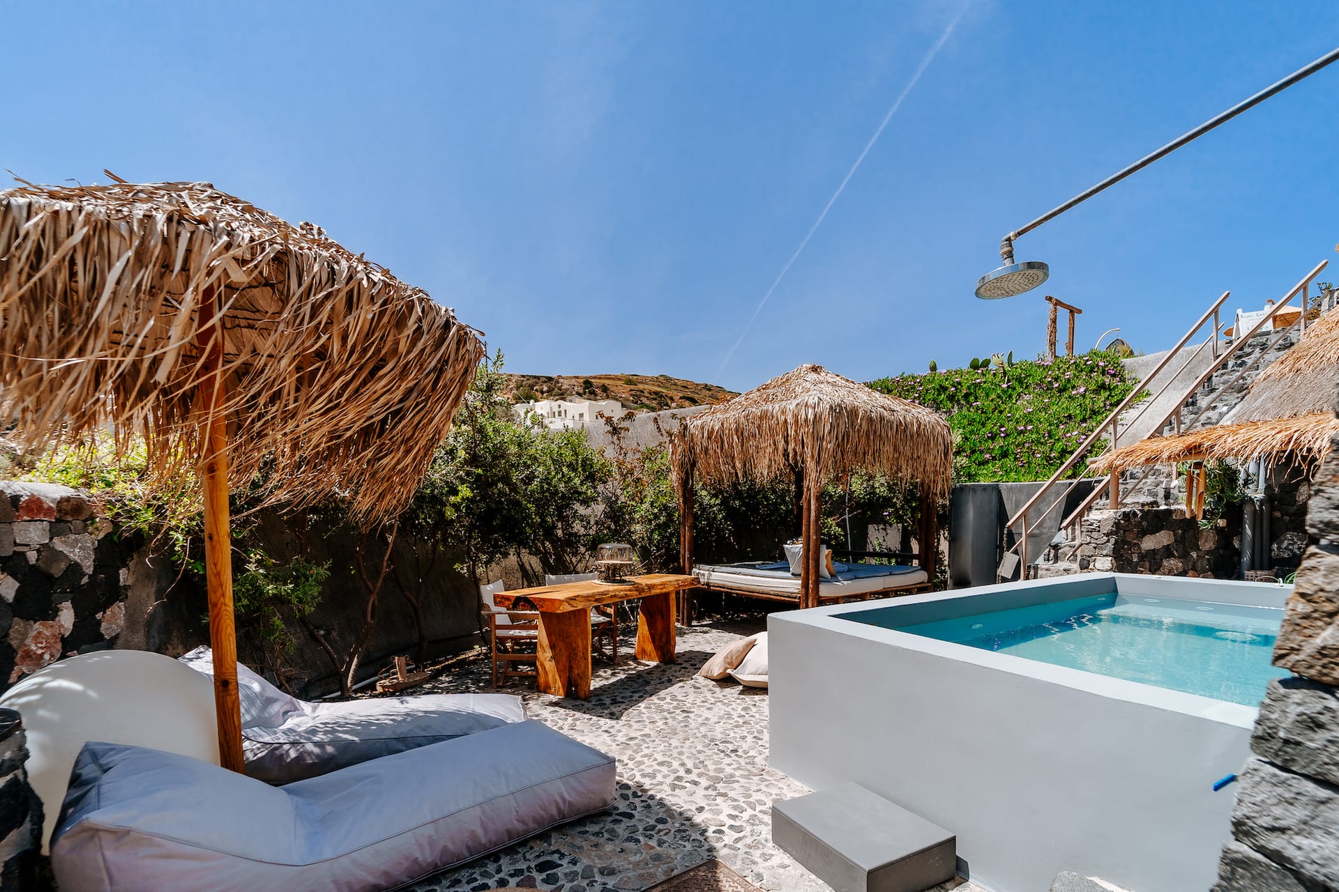 >> Rock Yard: Dive into pure relaxation in the pool (3x2m), surrounded by cosy lounge areas with breathtaking views of the medieval "Kasteli" castle.