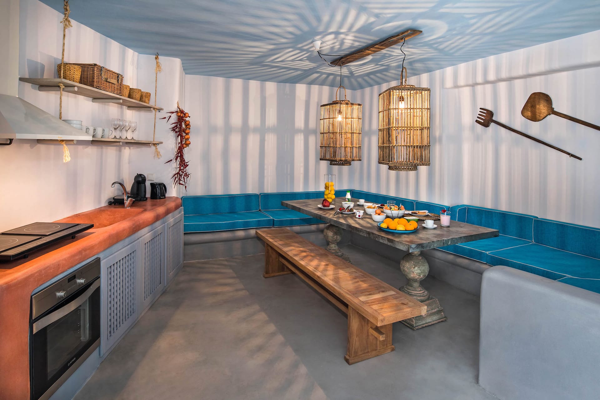 >> Lower Rock Yard: Dive into pure relaxation in the pool (3x2m), surrounded by cosy lounge areas with breathtaking views of the medieval "Kasteli" castle.