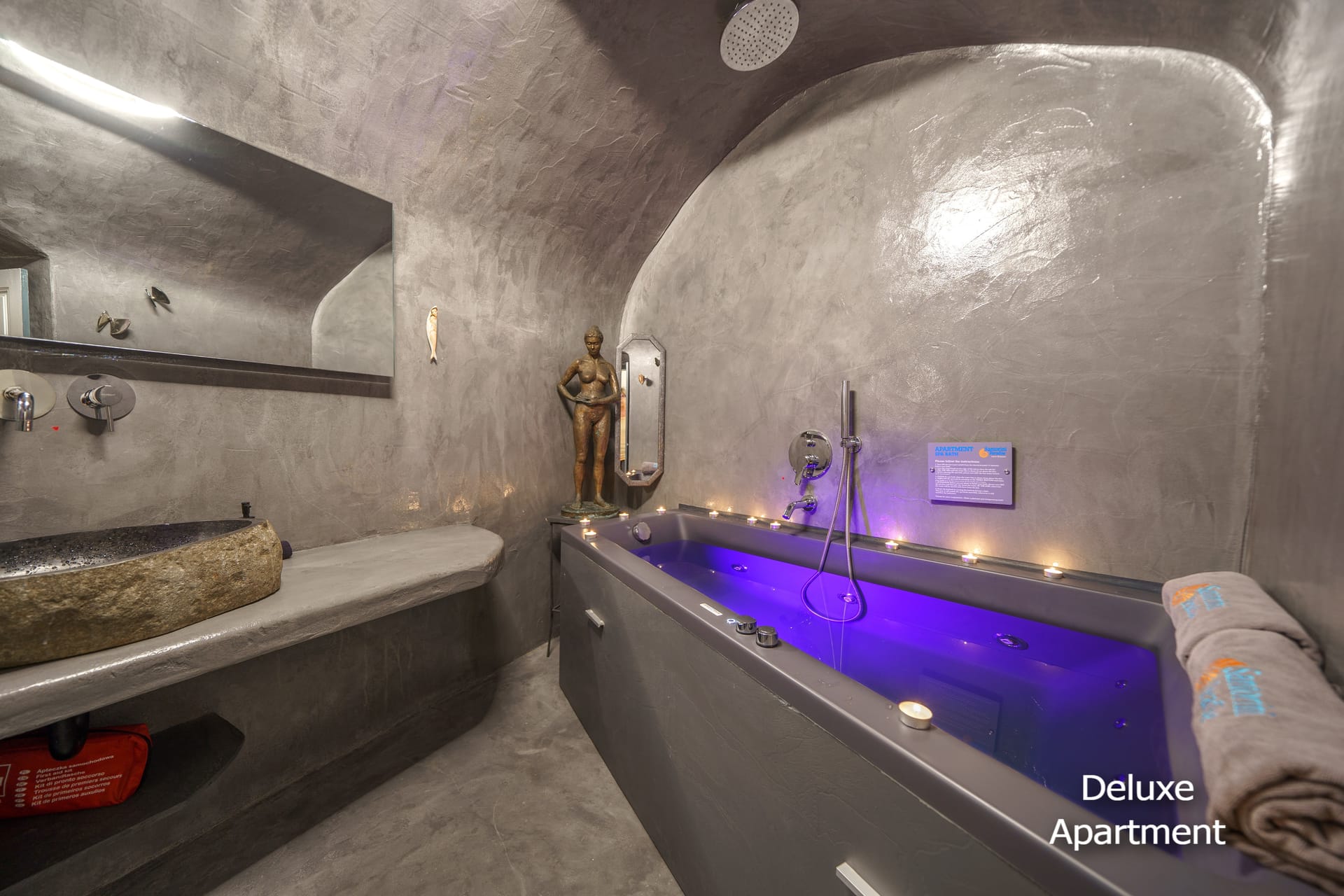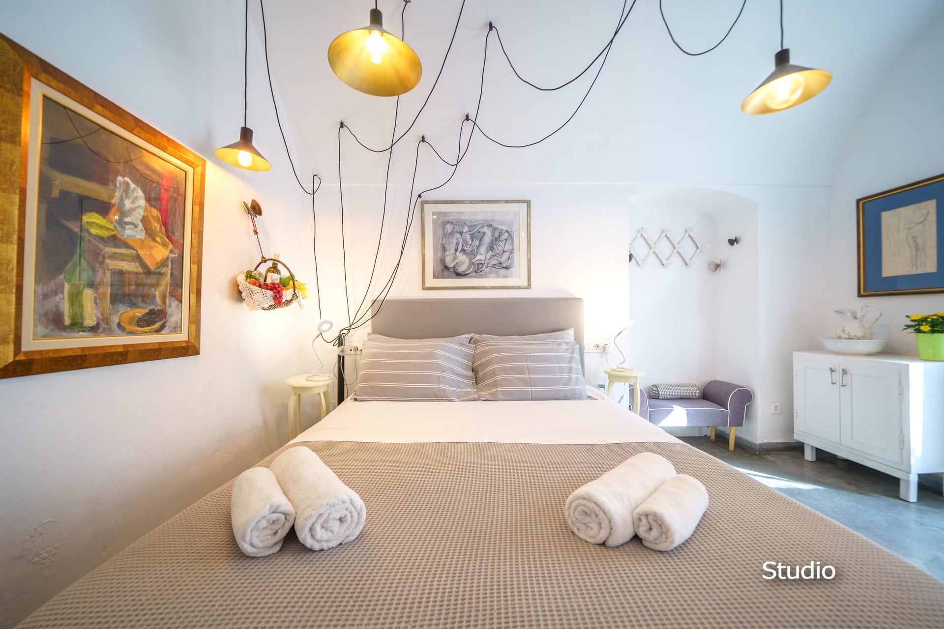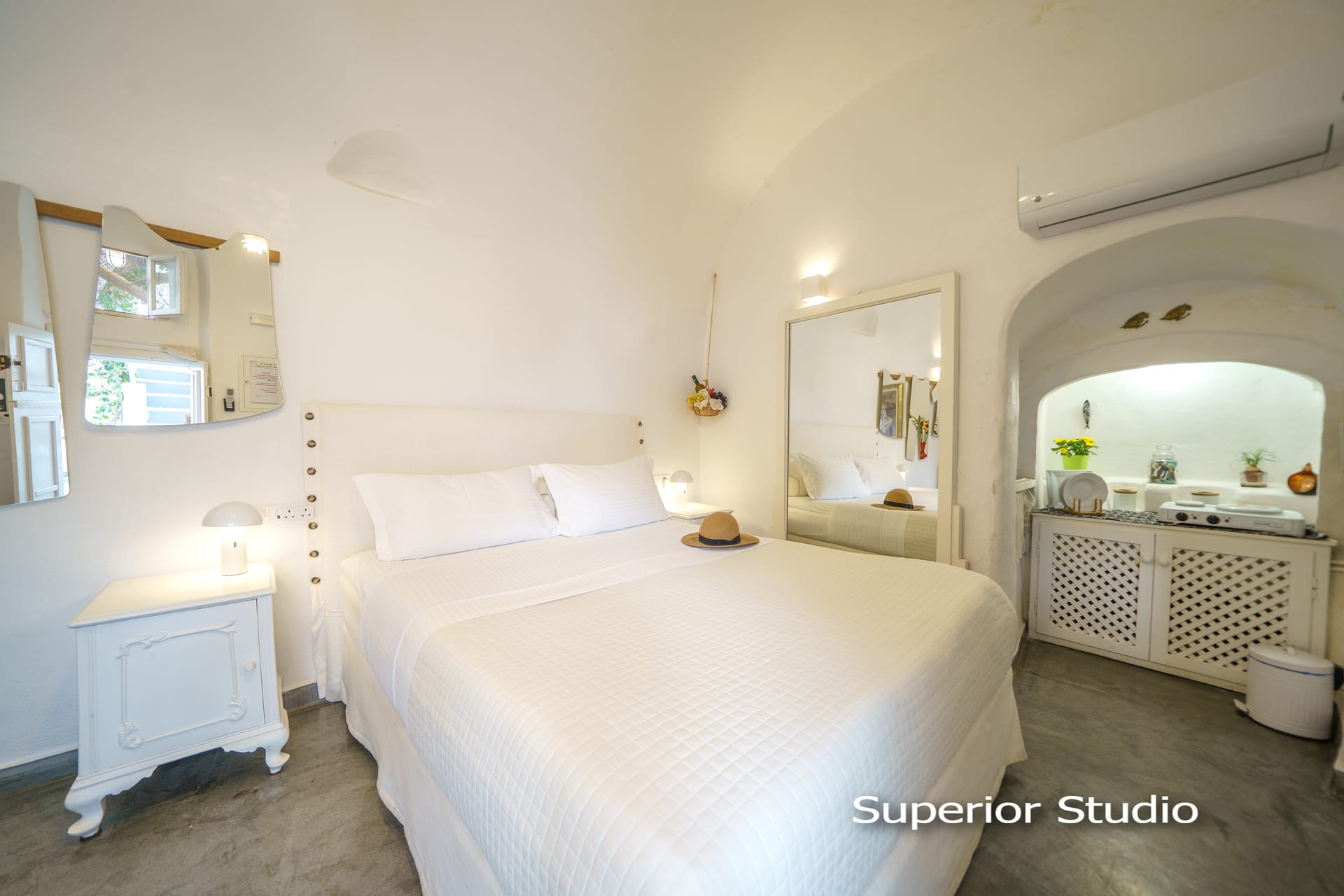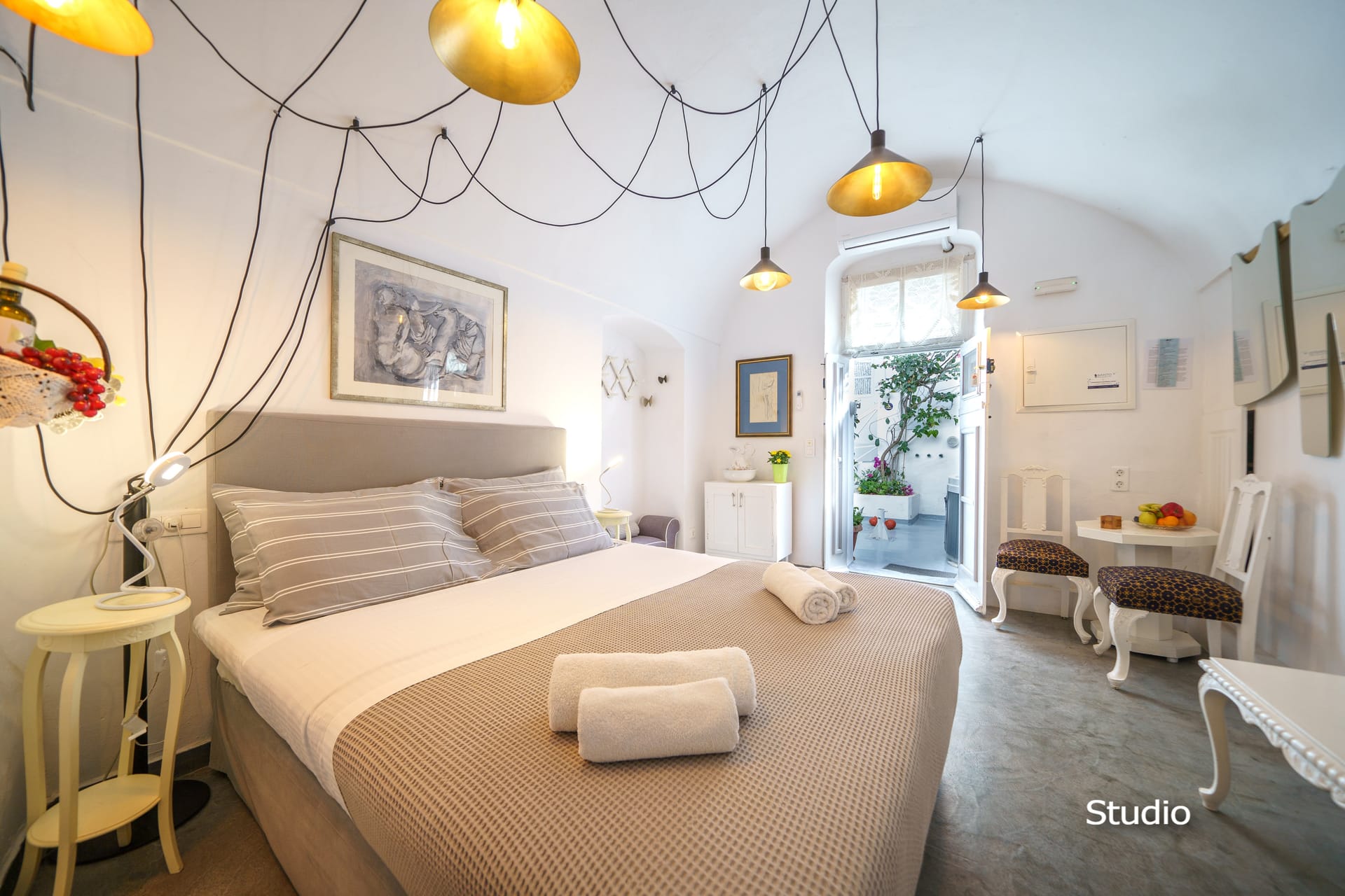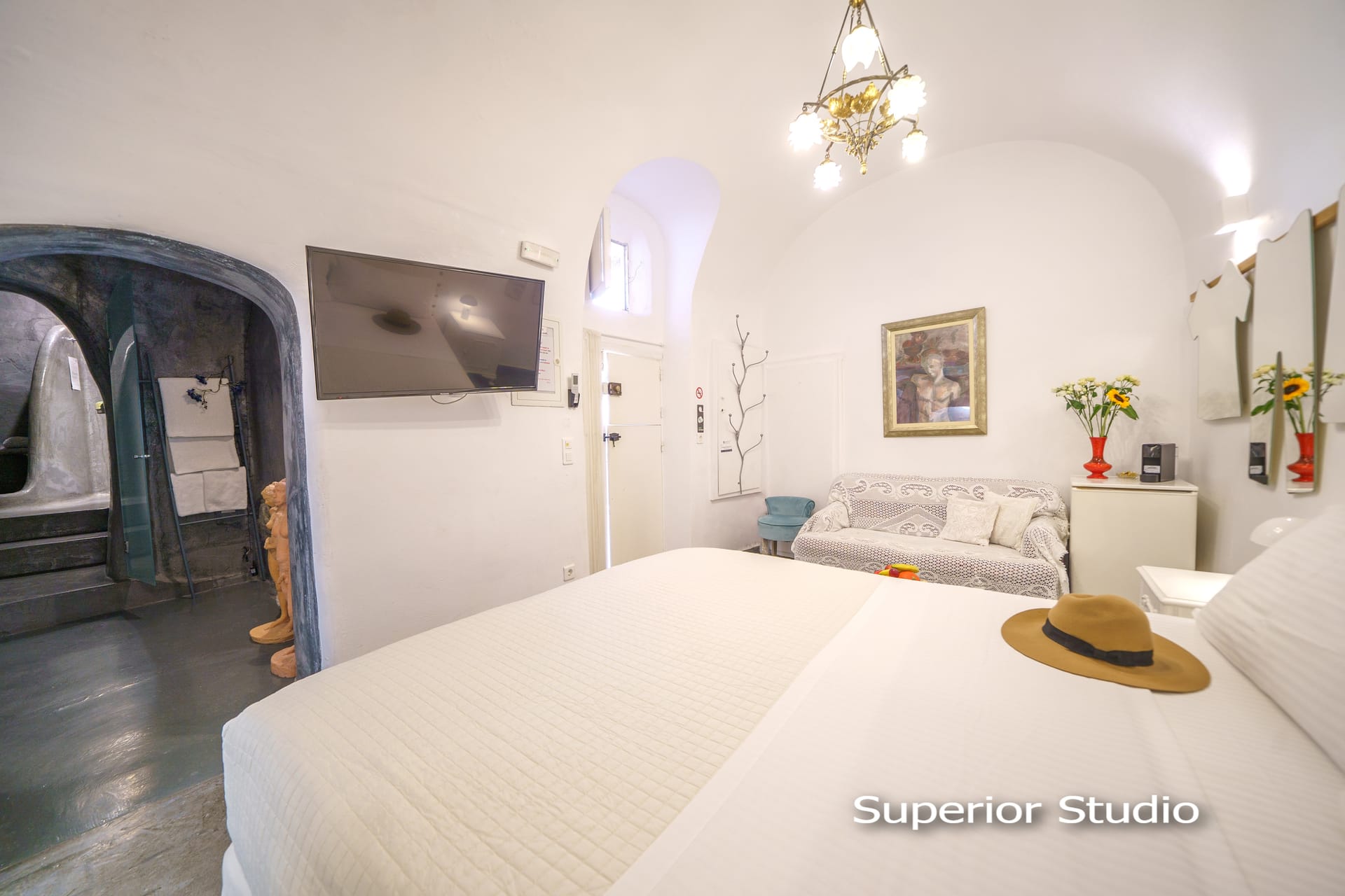 The cave houses is 20 meters from shops, restaurants and 2 minutes walking distance from market, galleries, bus and taxi terminal. It is located in the old city of Oia near the Castle which is the famous ‘Sunset Point’ of Greece! It is also 2 minutes’ walking distance from the Lounge Cafe Pool Bar “Lyogerma” and 10 minutes’ drive from the three beaches that are near Oia.