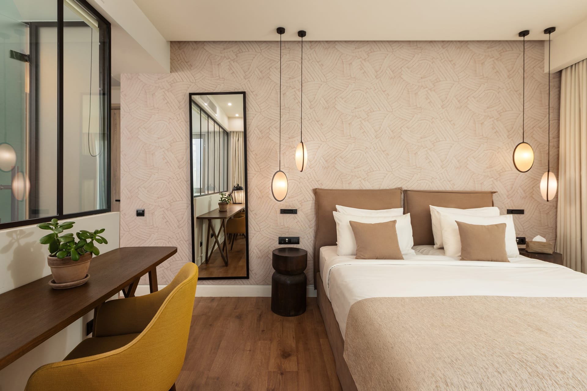 Here, on the second floor, the view of the sea and the mysterious aura of Patmos captivates and enchants you.