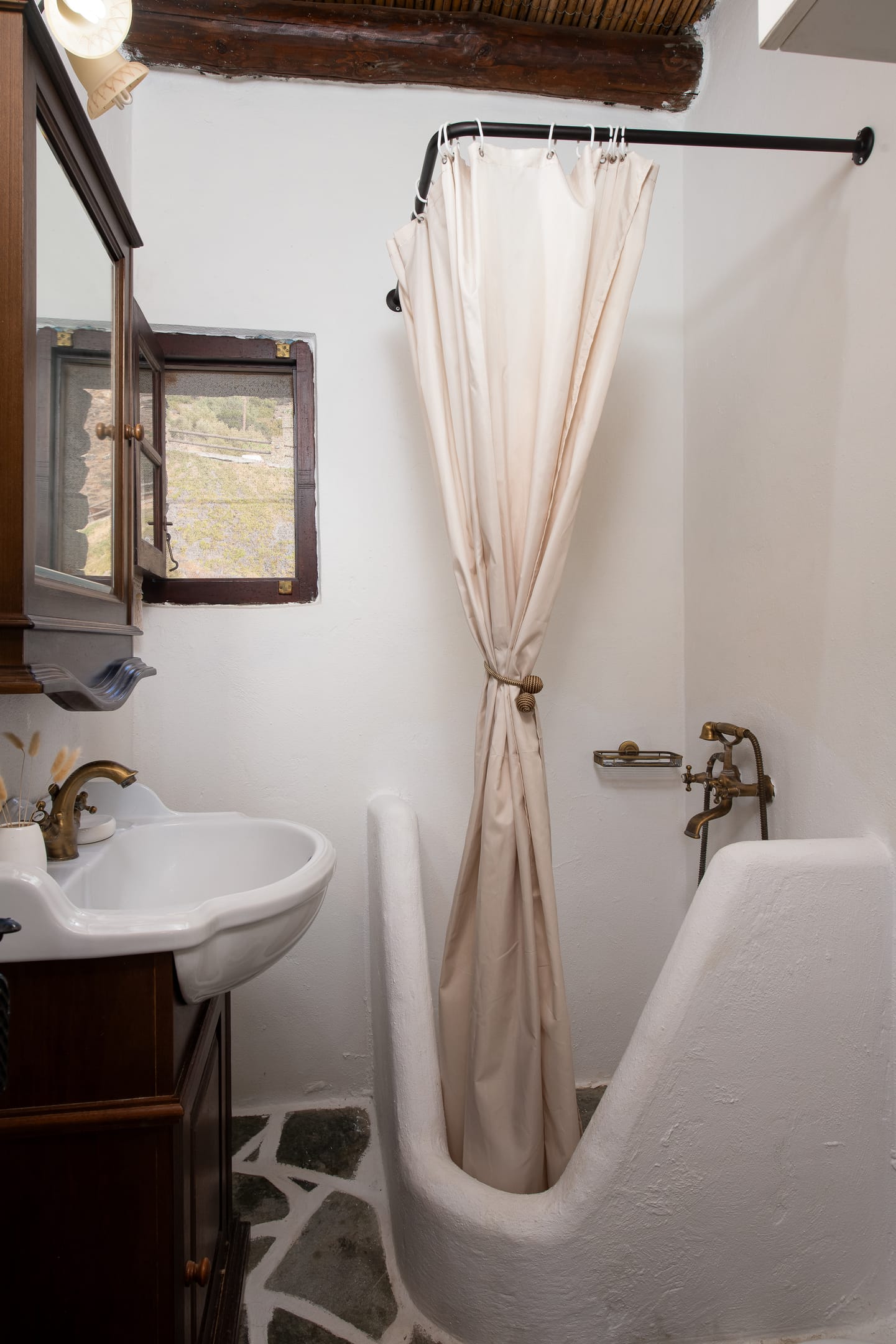 On the ground floor you will find a cozy living room, equipped with flat-screen TV and 2 comfortable stone-built sofa beds. On the same floor there are the bathroom, built with a traditional/functional style with a shower cabin and a fully equipped kitchenif you feel like cooking.