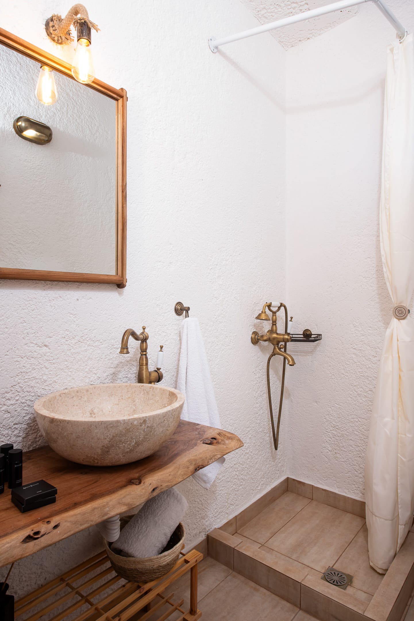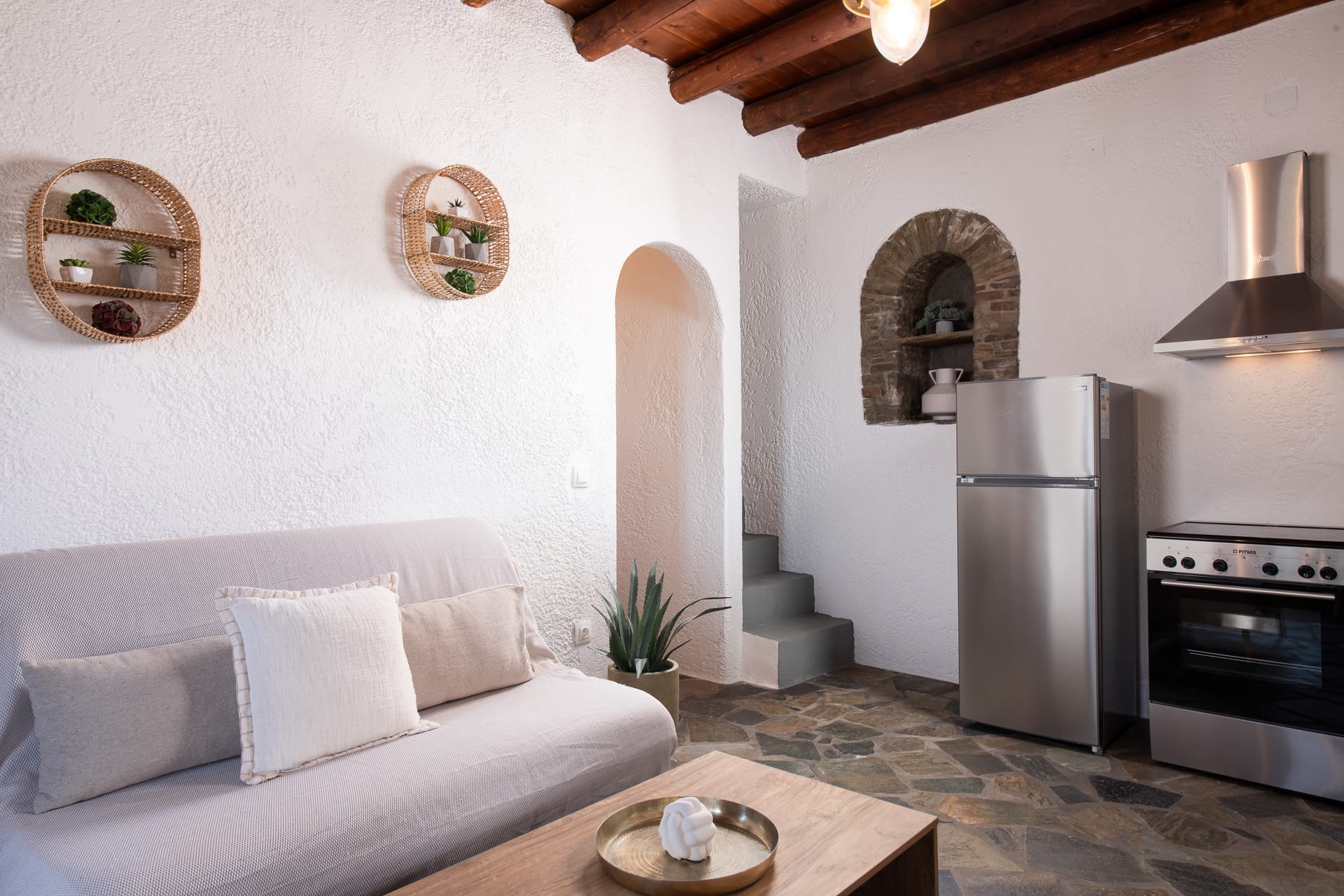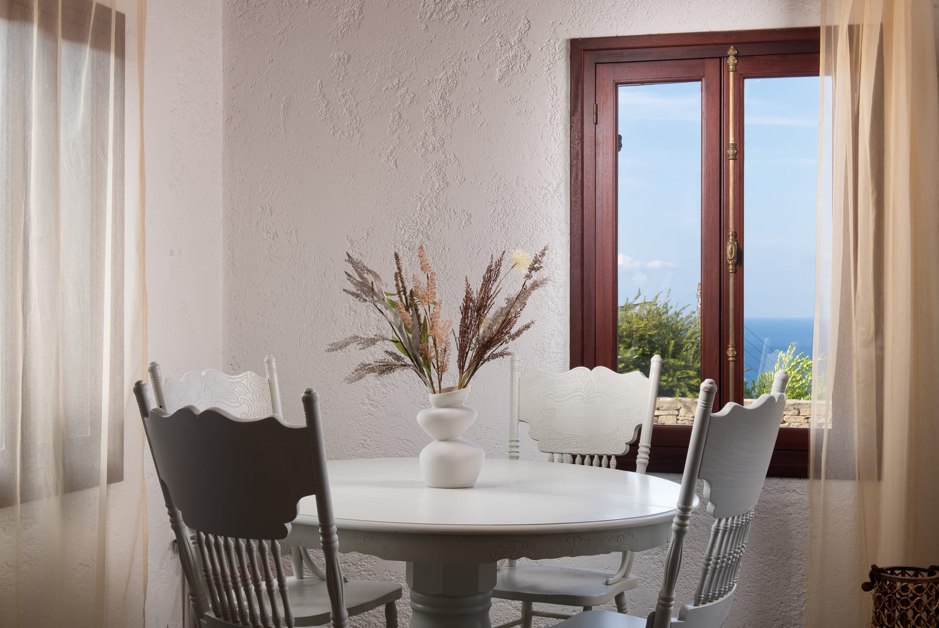 On the ground floor you will find a traditional, sunny, sea-view dining room equipped with a flat-screen TV and also one of the two bedrooms of the residence with a double bed. On the same floor you can find the bathroom - built with a traditional/functional style- with a shower and also a fully equipped kitchen if you feel like cooking.
