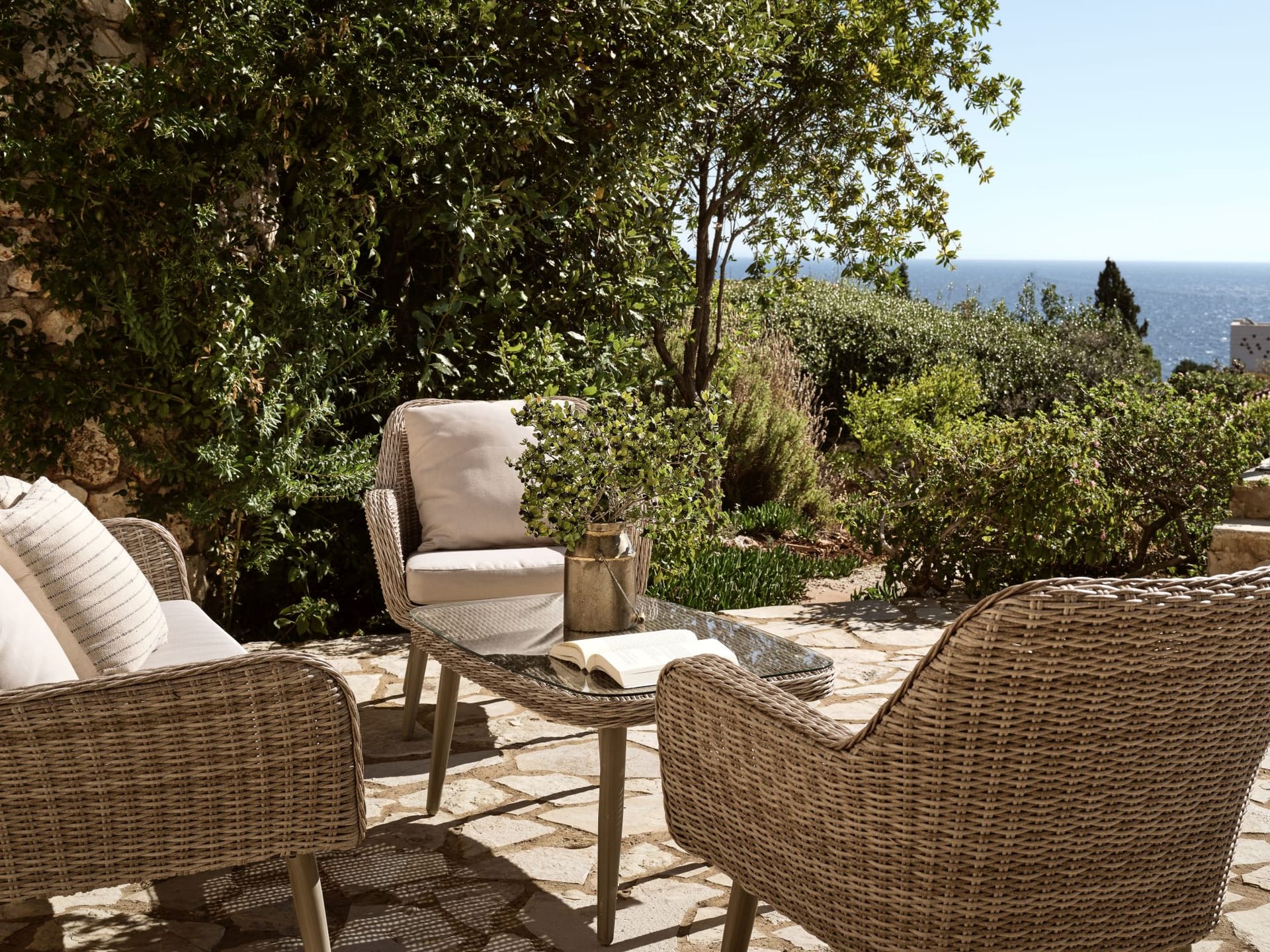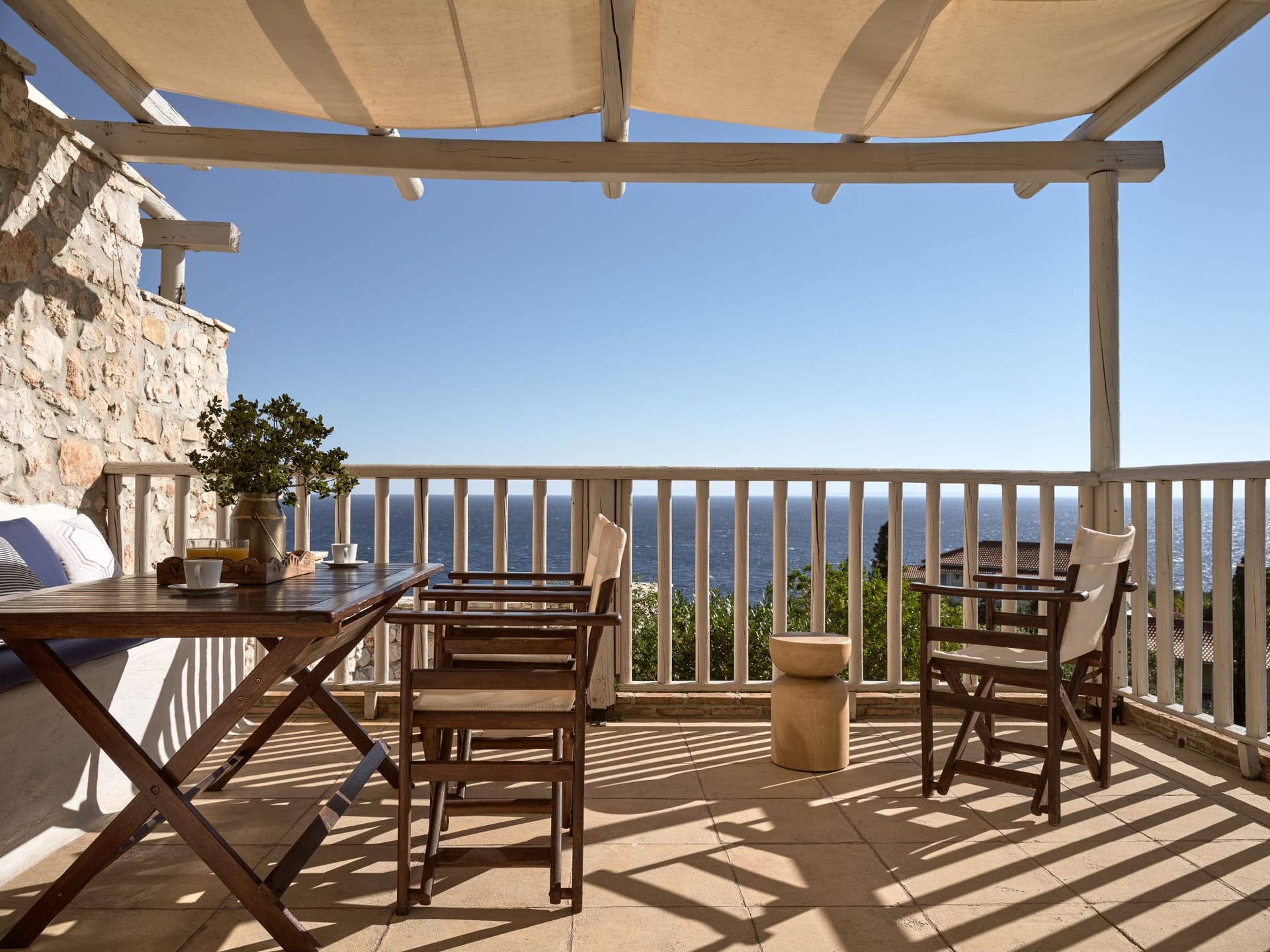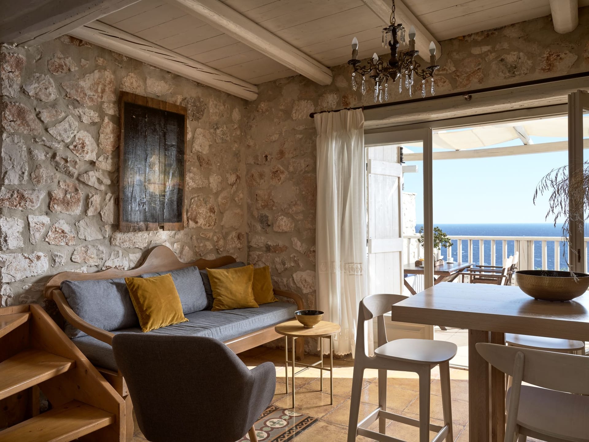 The chilling out and outdoor living areas at Villa Shangri-La Zakynthos are ample. Dining al fresco awaits. You are in Greece after all. And if you happen to enjoy outdoor cooking, here you can indulge in barbecues under the glass vaulted ceiling and dine on the dining table for a real Mediterranean feel.