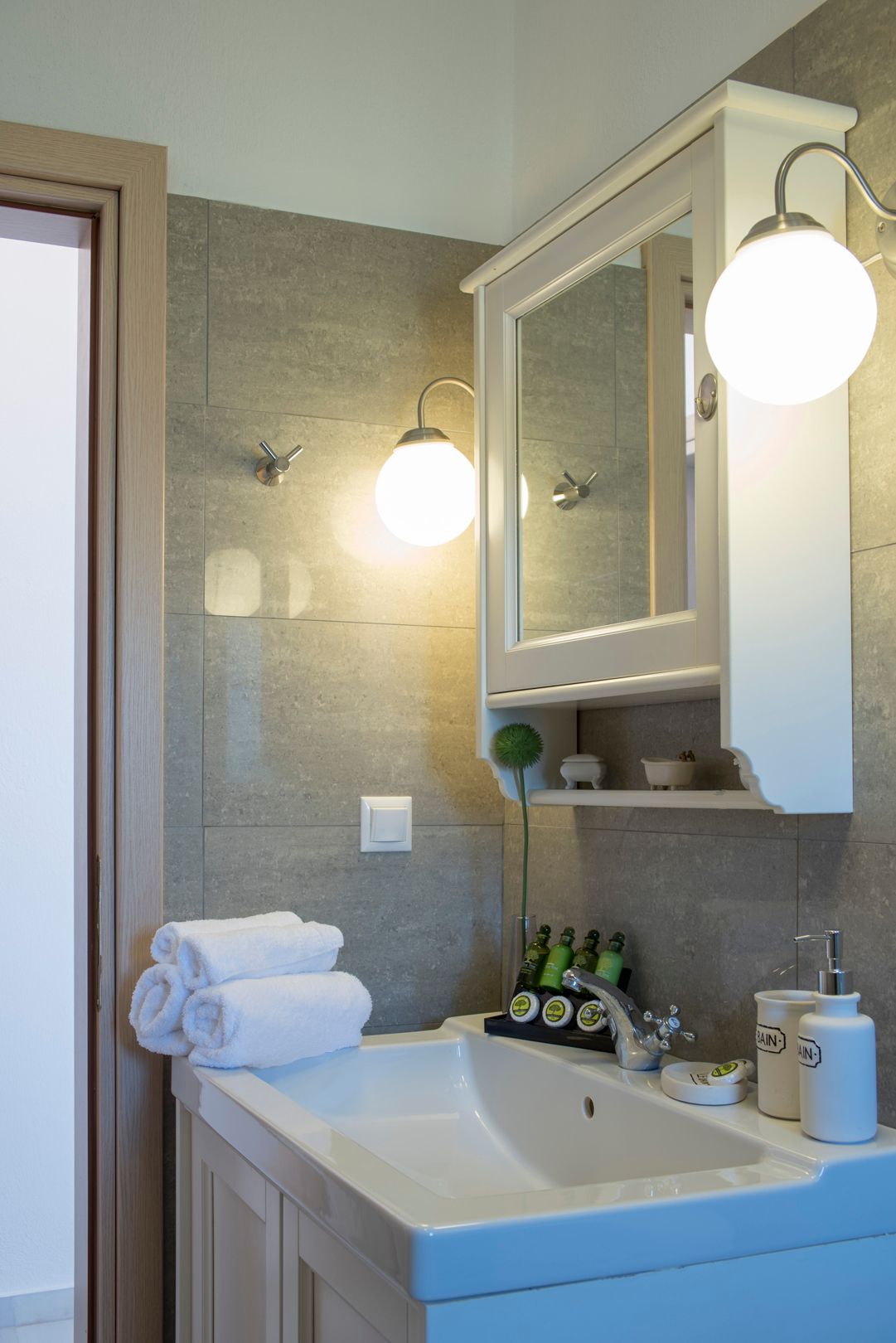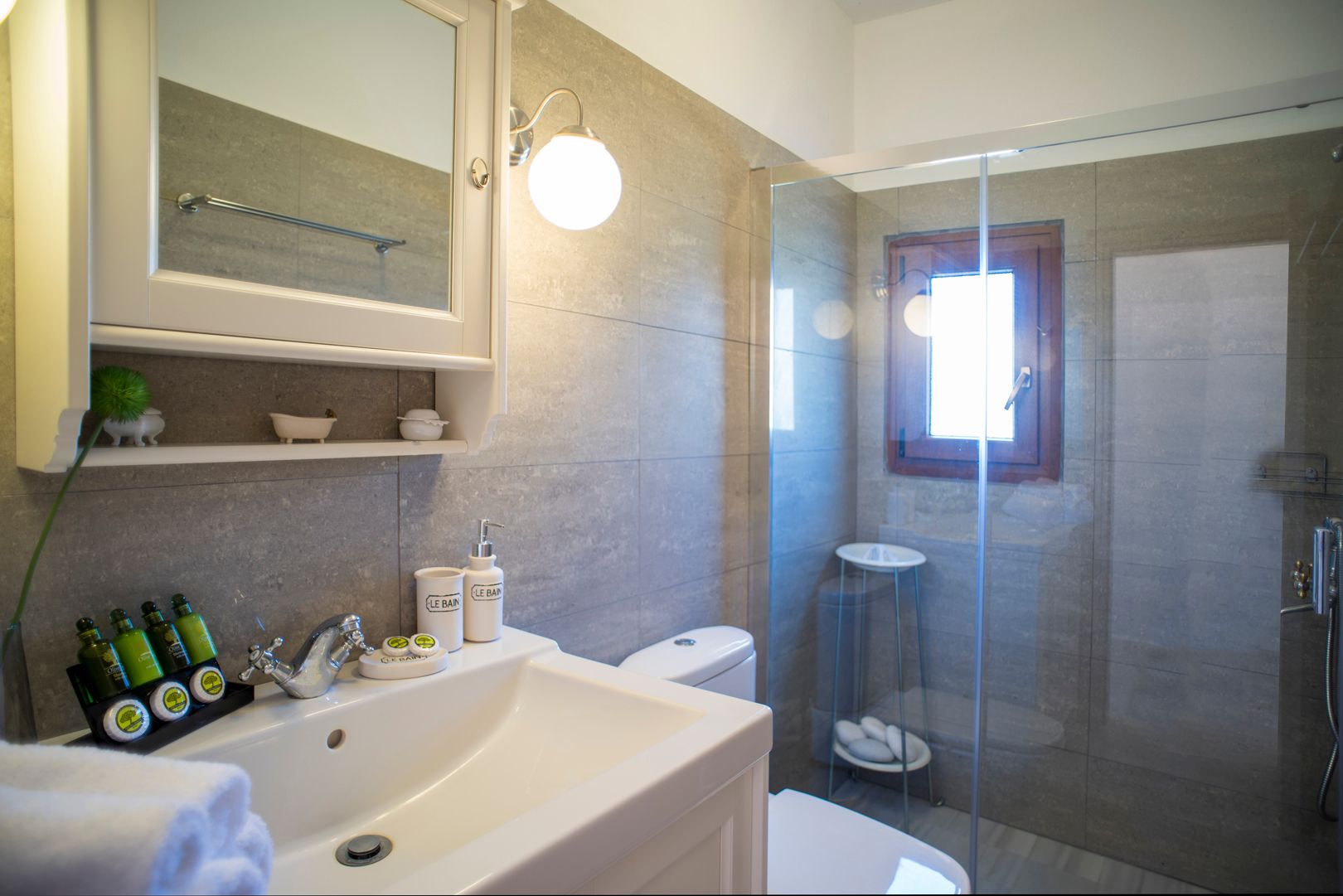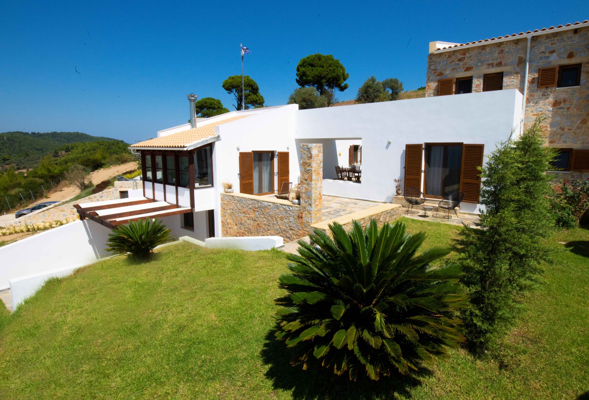 It is 1 km far from the sea and 0,5 km far from the central road of Skiathos (easy track road). Each villa within the complex is carefully designed to offer a luxurious, yet relaxed feeling to their guests.