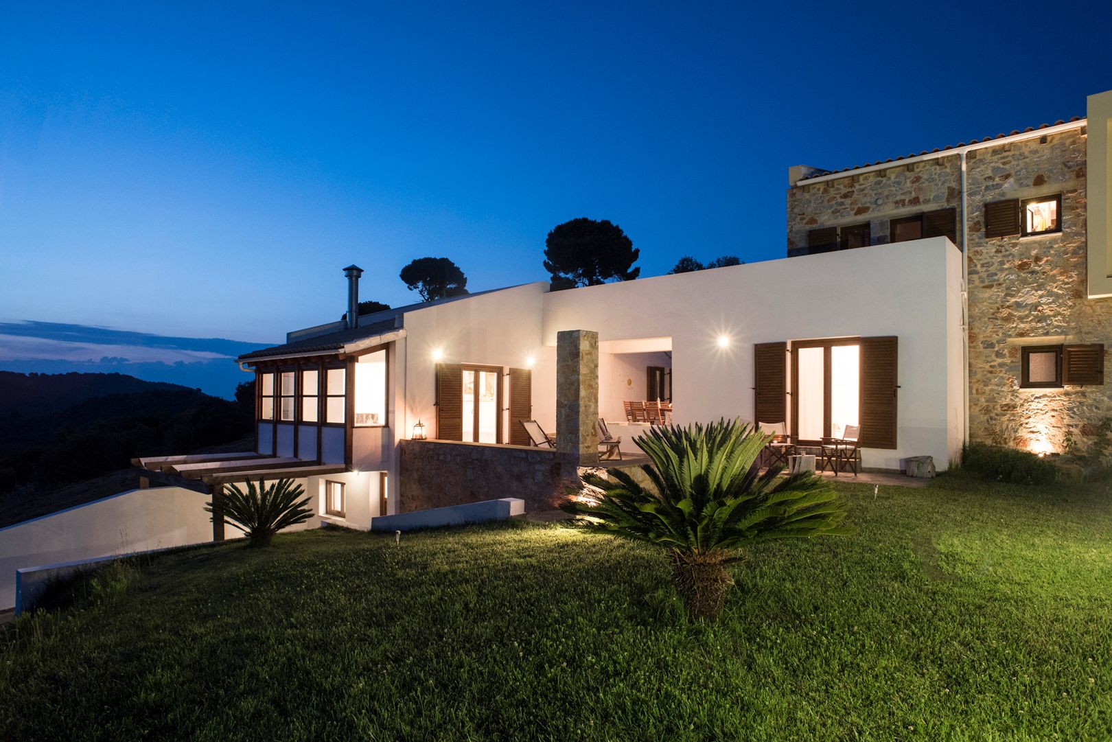 Villa A have a lovely relaxed, warm ambience. The outside space is wonderful with lush planted gardens and corners of aromatic Mediterranean herbs, vivid coloured bougainvilleas, olive oil and fig and trees. You will really appreciate the hill-side location with incredible sea and mountain views. Surrounded by lovely pines and beautiful lawns and countryside, you will feel on top of the world at our glorious panoramic setting!