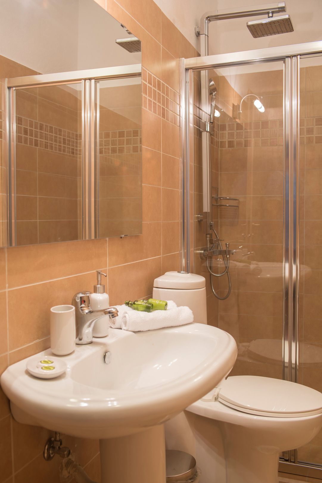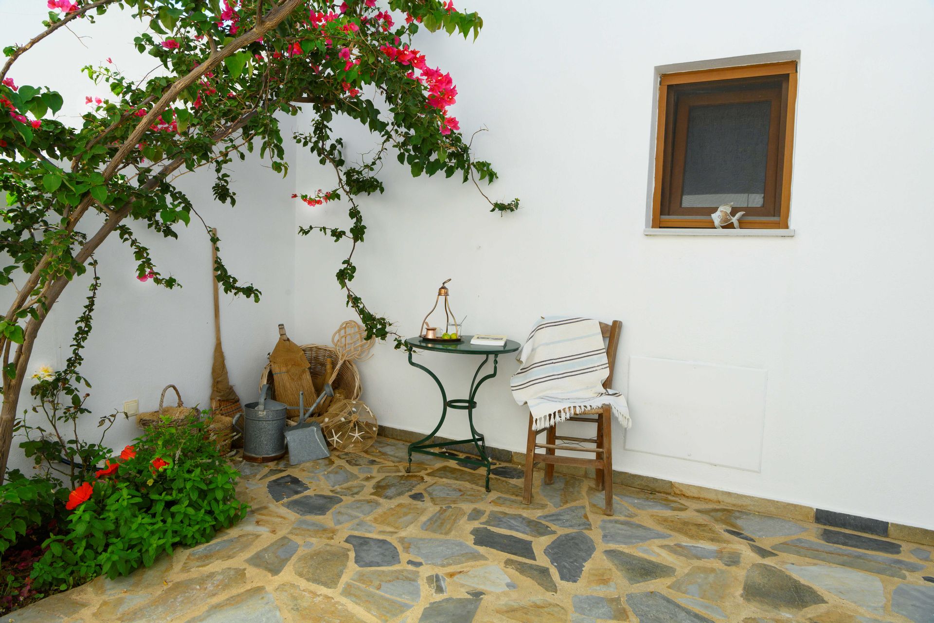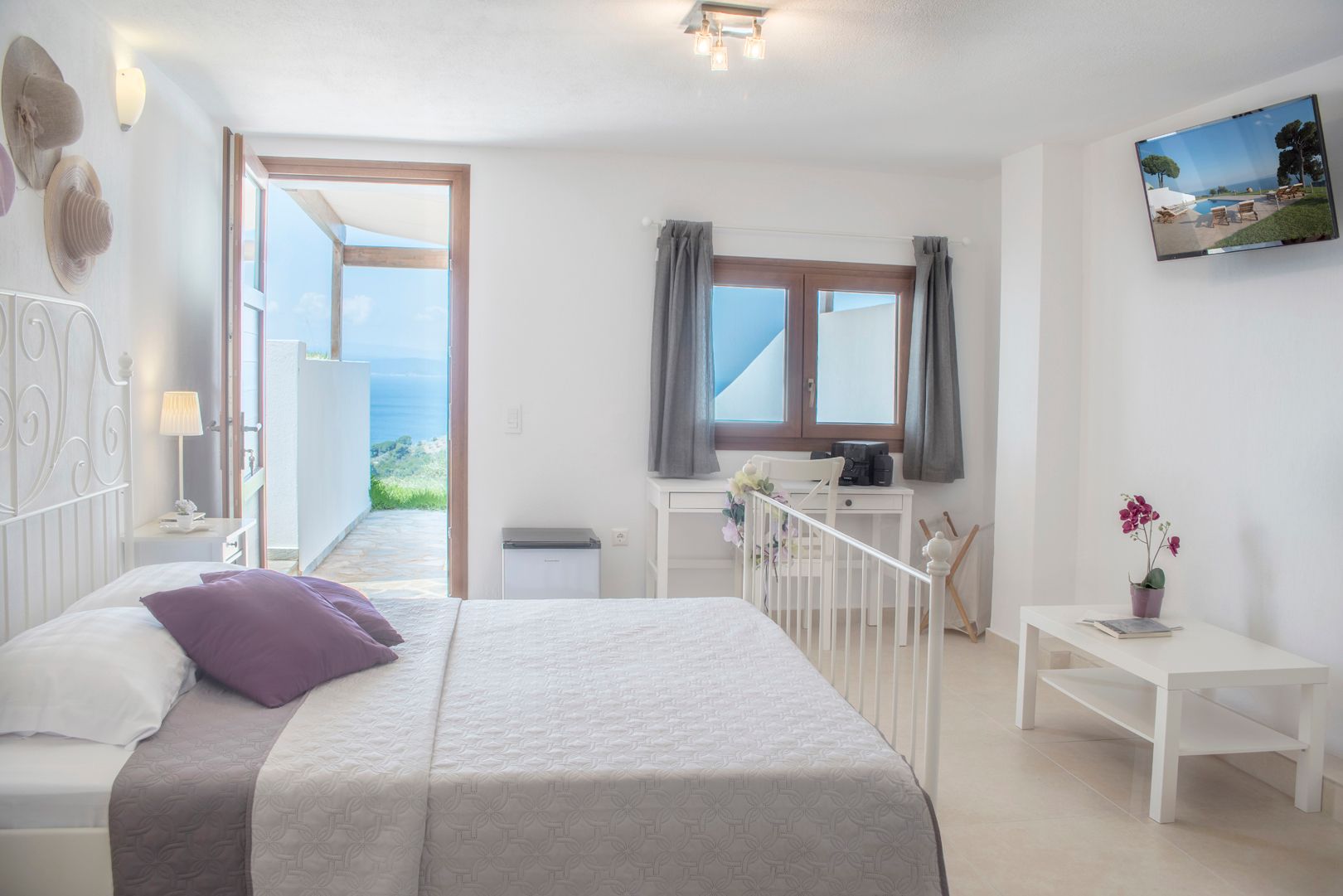 The third 35 sqm apartment is again studio style with a mini fridge, double bed, bathroom with shower, safe deposit box, flat smart TV and HI-FI stereo. This apartment also has an outdoor shaded lounge area.