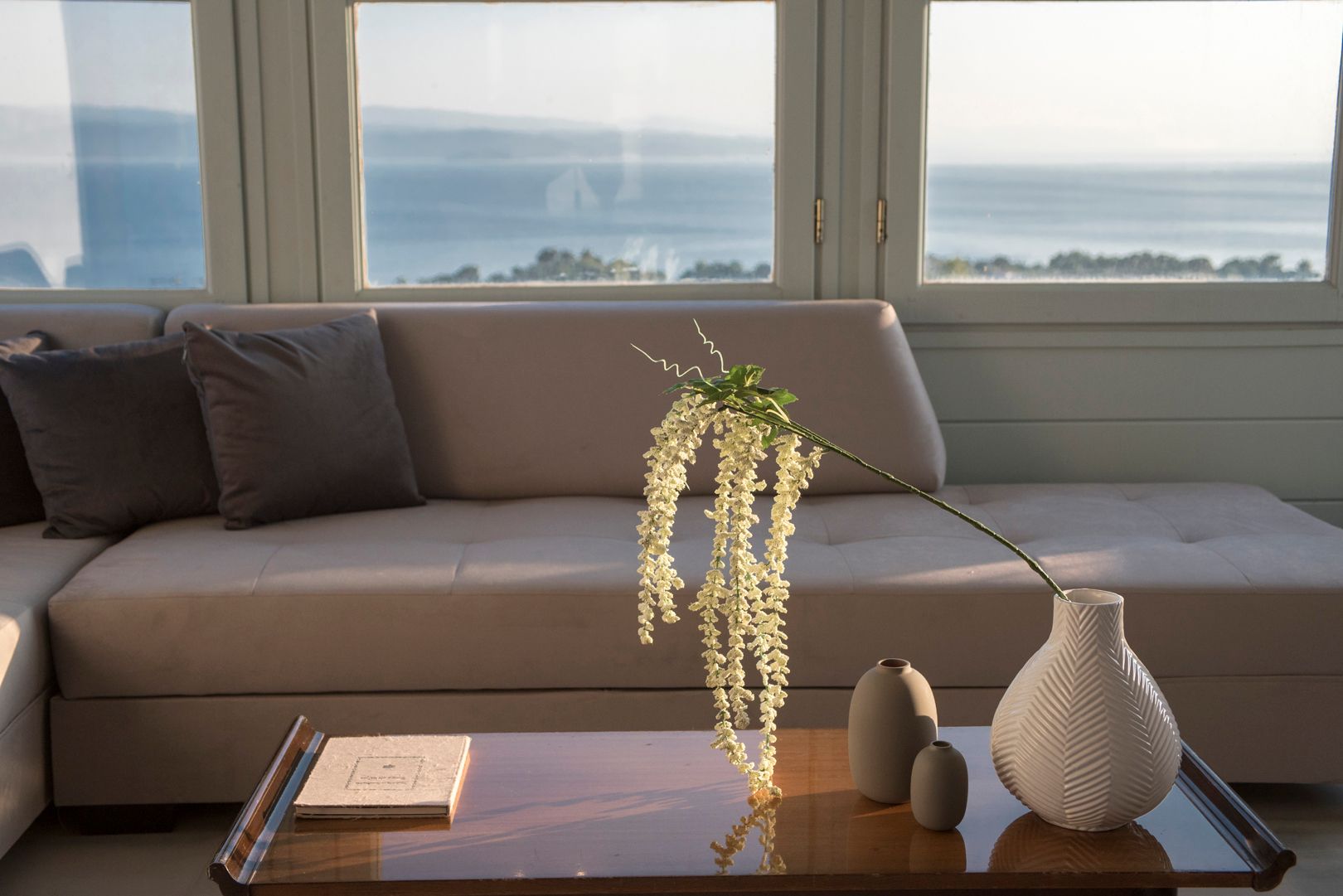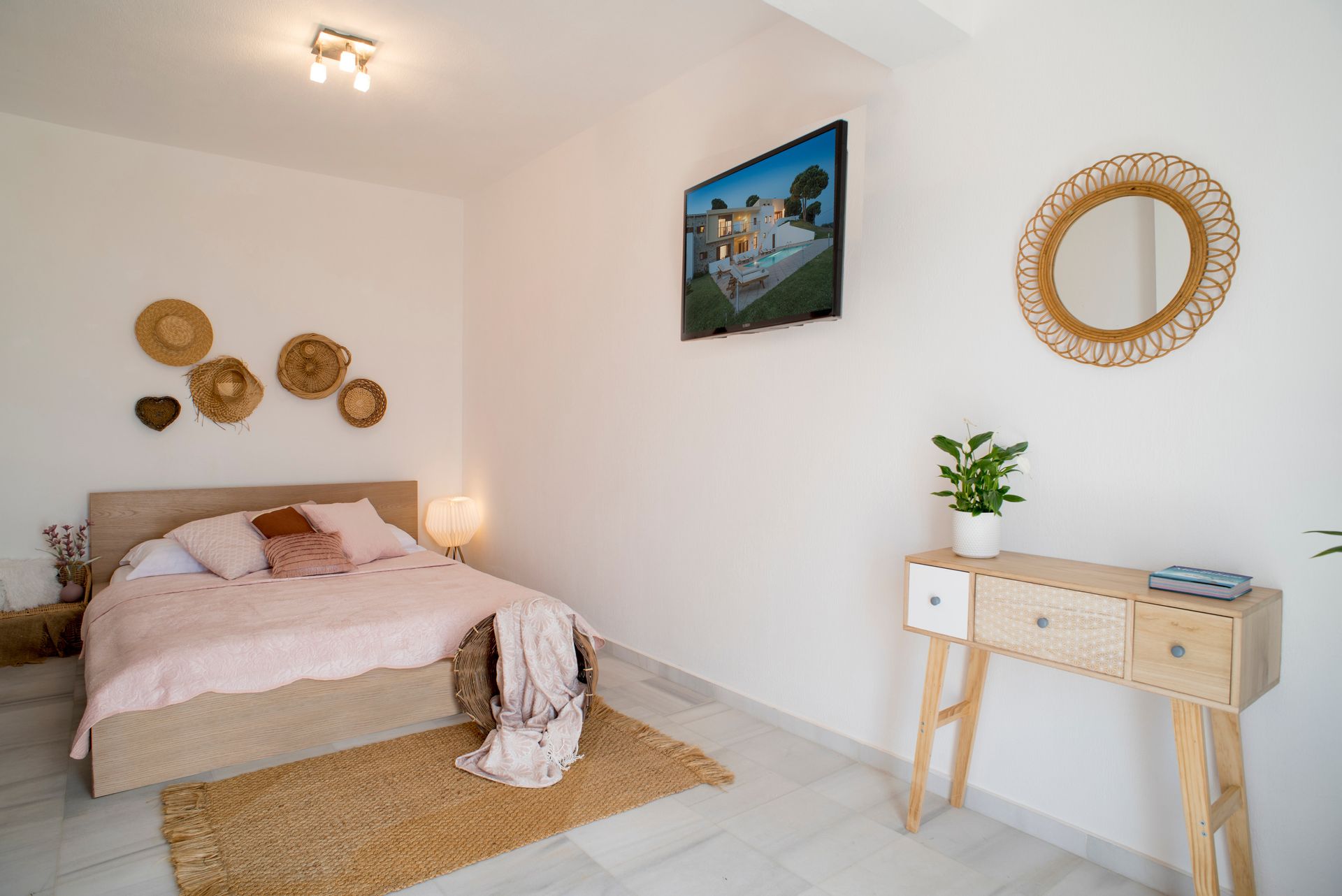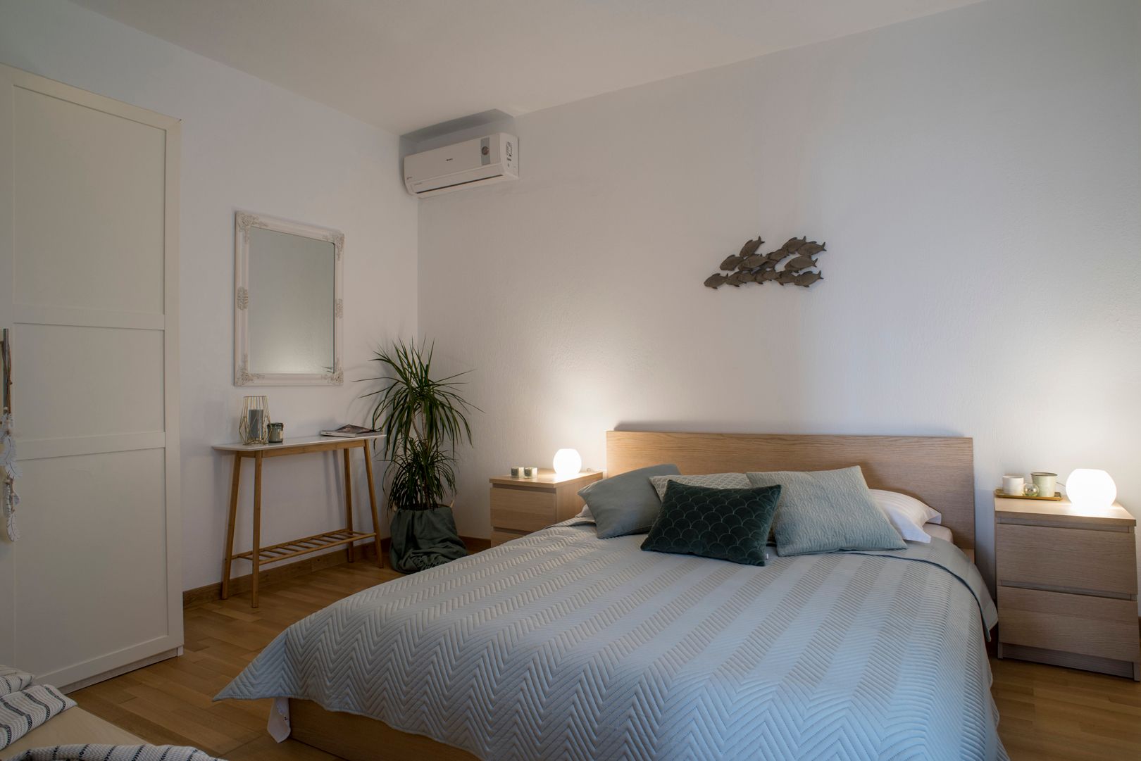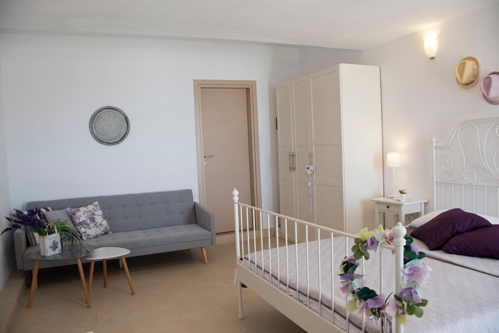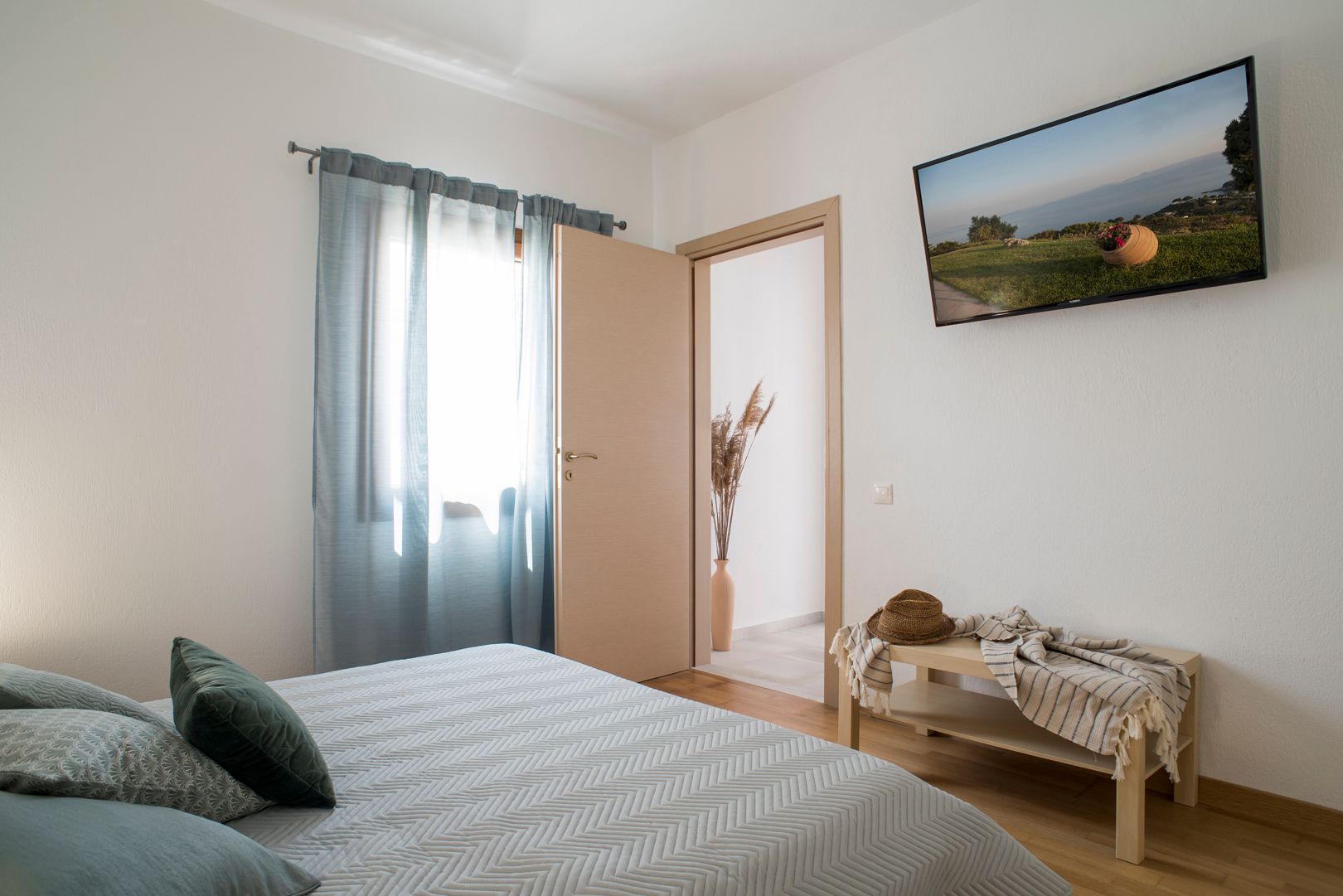 The first apartment within the villa offers a comfortable, serene living room with a sofa bed, a modern kitchen (electric hob, microwave, fridge and a Nespresso coffee machine included), wooden floor bedroom with a double bed, air conditioning, safe deposit box, a smart TV and a lovely bathroom with shower. The apartment area is 65 sqm.