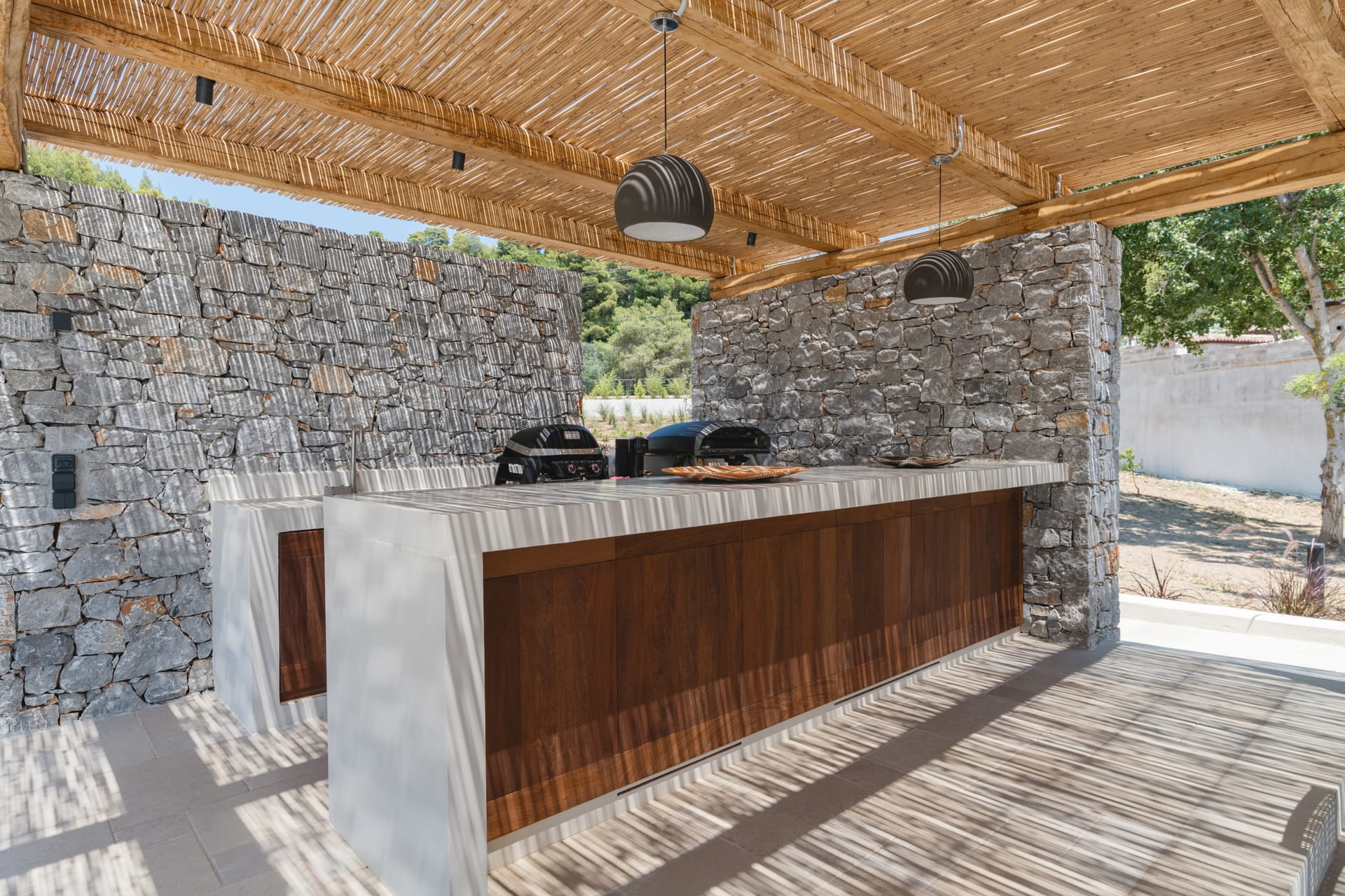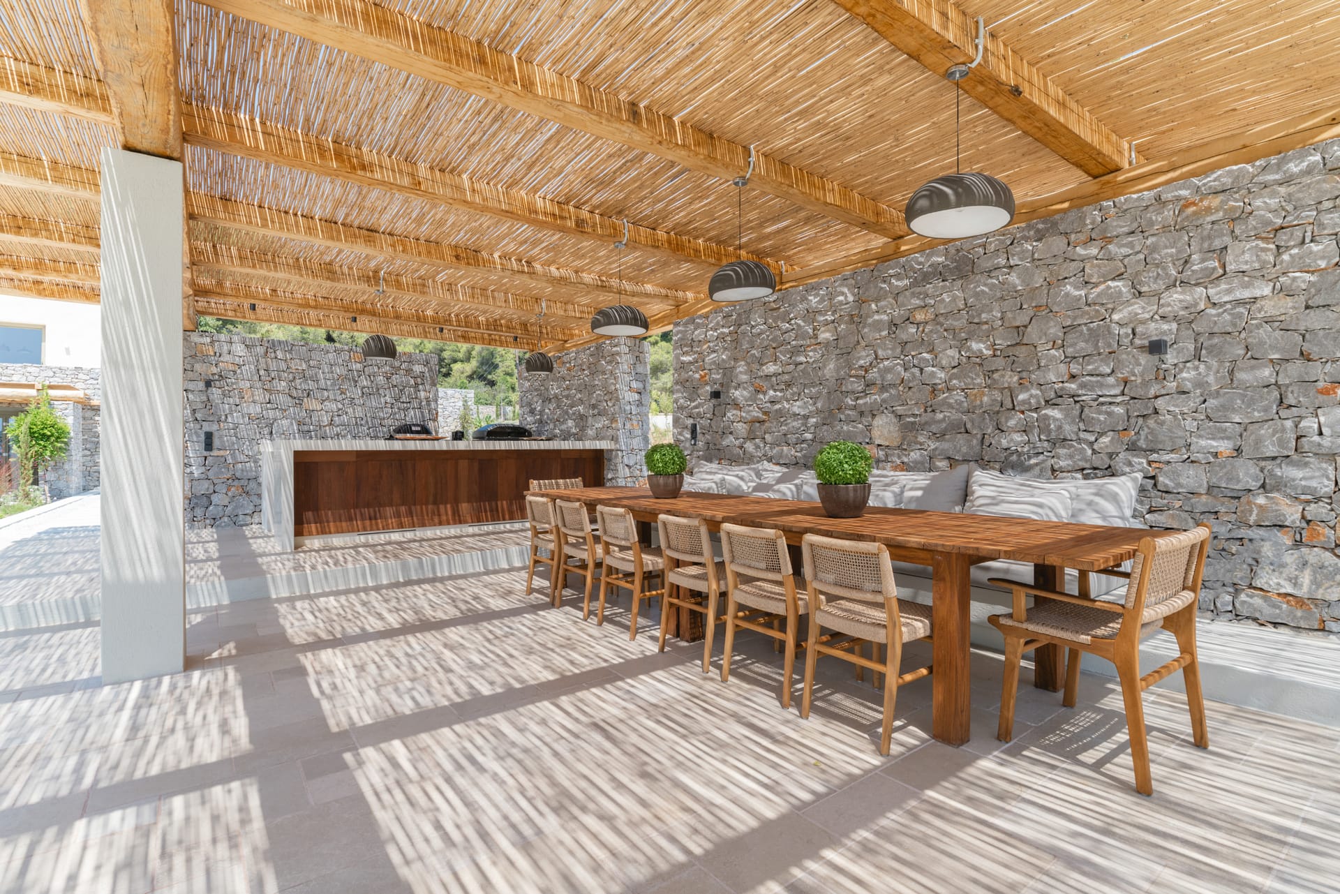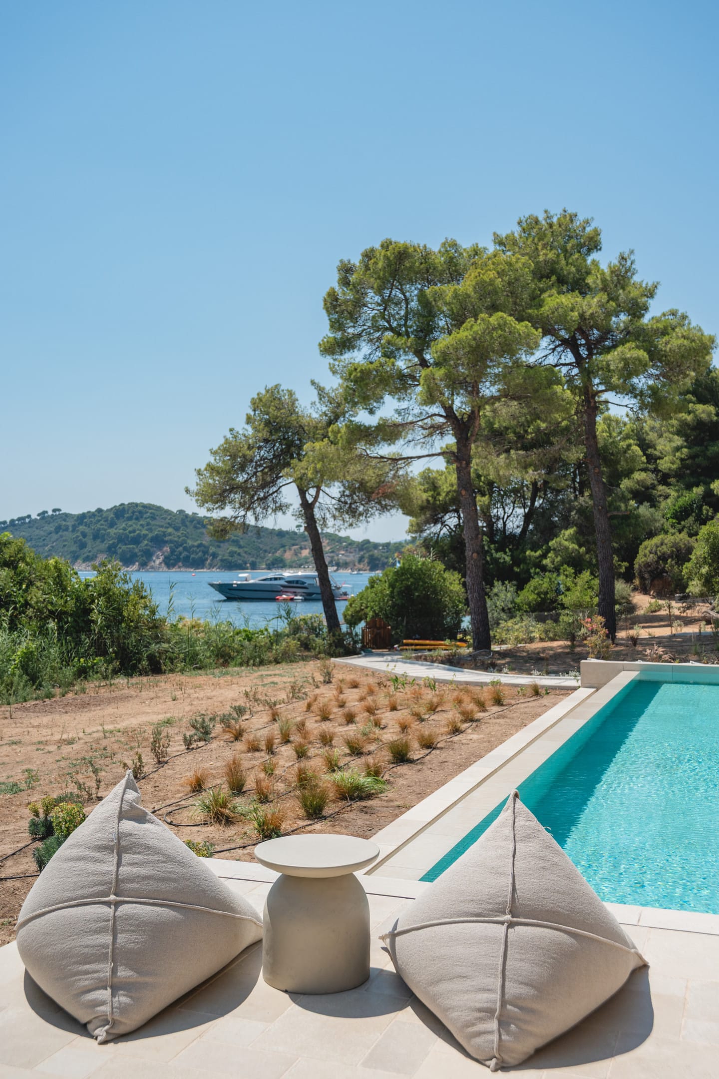 The villa’s outdoor spaces are designed for leisure and unforgettable gatherings: a large private swimming pool overlooks the sea, while a spacious patio and manicured garden offer multiple areas to relax in the sun or shade. Barbecue facilities make al fresco dining a delight, whether for a family feast or a sunset celebration. Several balconies provide elevated vantage points to soak in the sweeping sea and mountain views, making every sunrise and sunset a memorable experience.