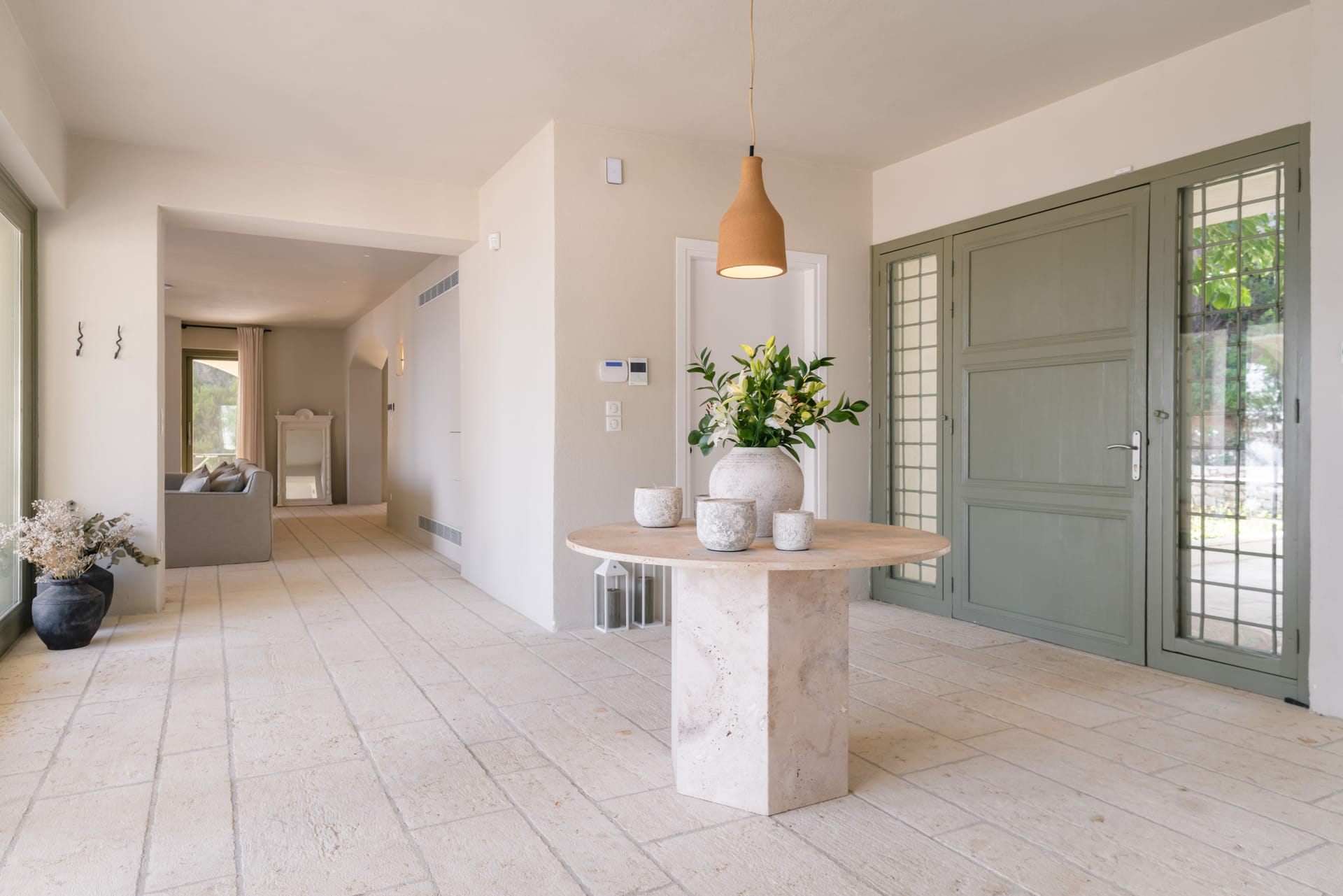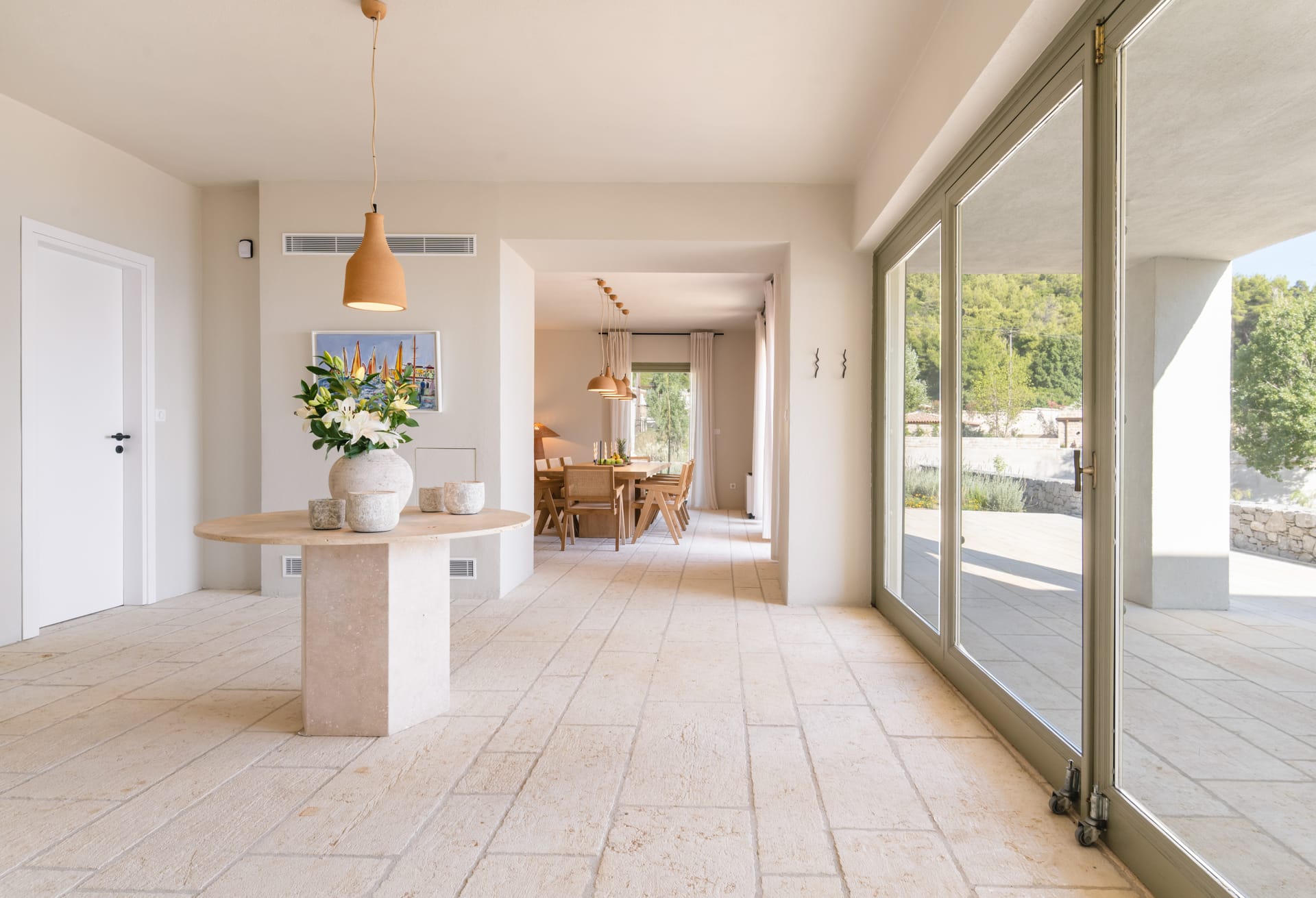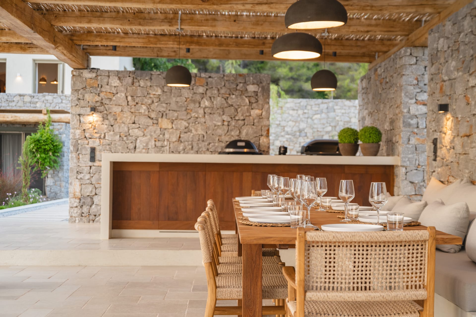 The villa’s outdoor spaces are designed for leisure and unforgettable gatherings: a large private swimming pool overlooks the sea, while a spacious patio and manicured garden offer multiple areas to relax in the sun or shade. Barbecue facilities make al fresco dining a delight, whether for a family feast or a sunset celebration. Several balconies provide elevated vantage points to soak in the sweeping sea and mountain views, making every sunrise and sunset a memorable experience.
